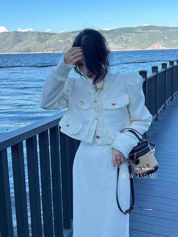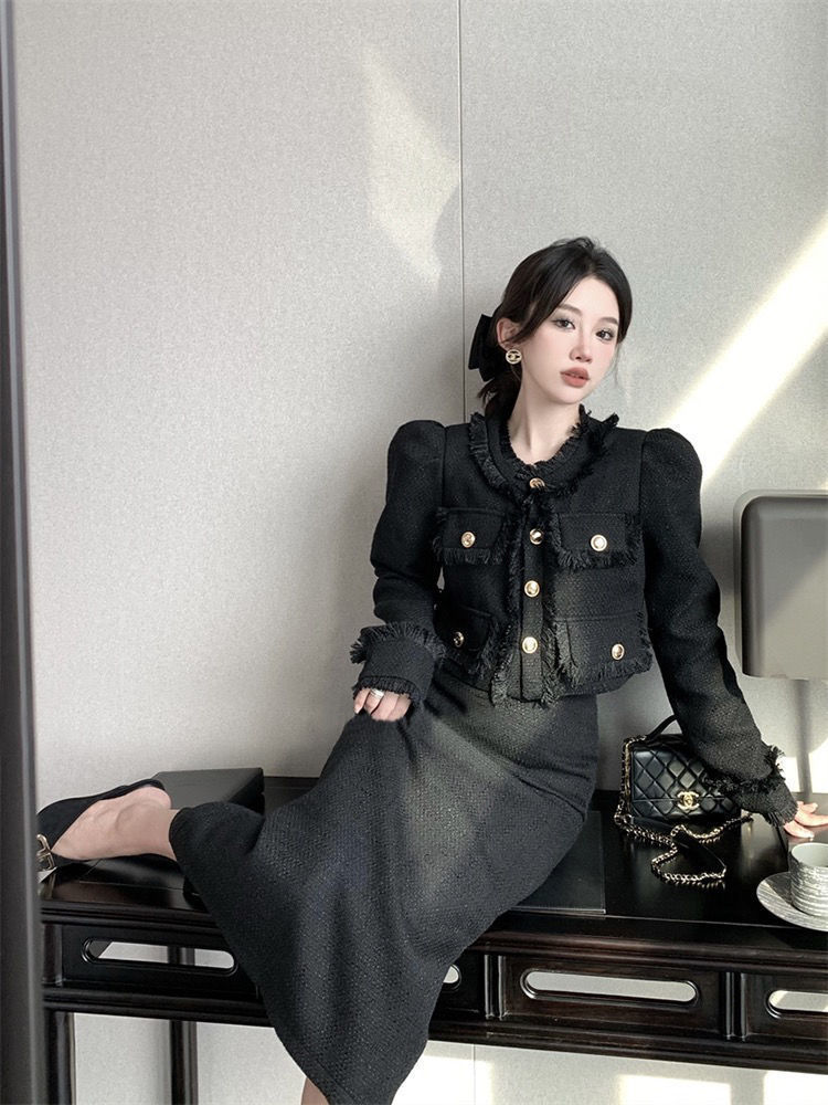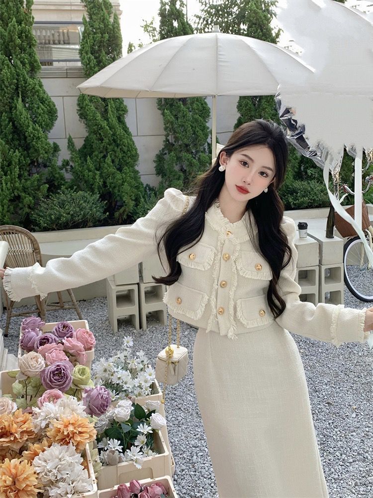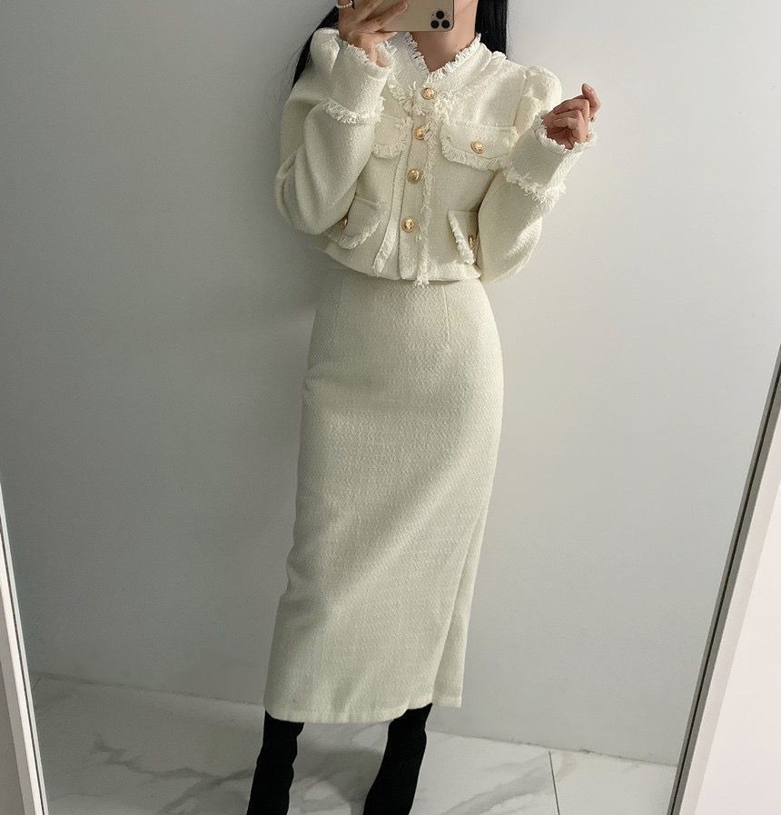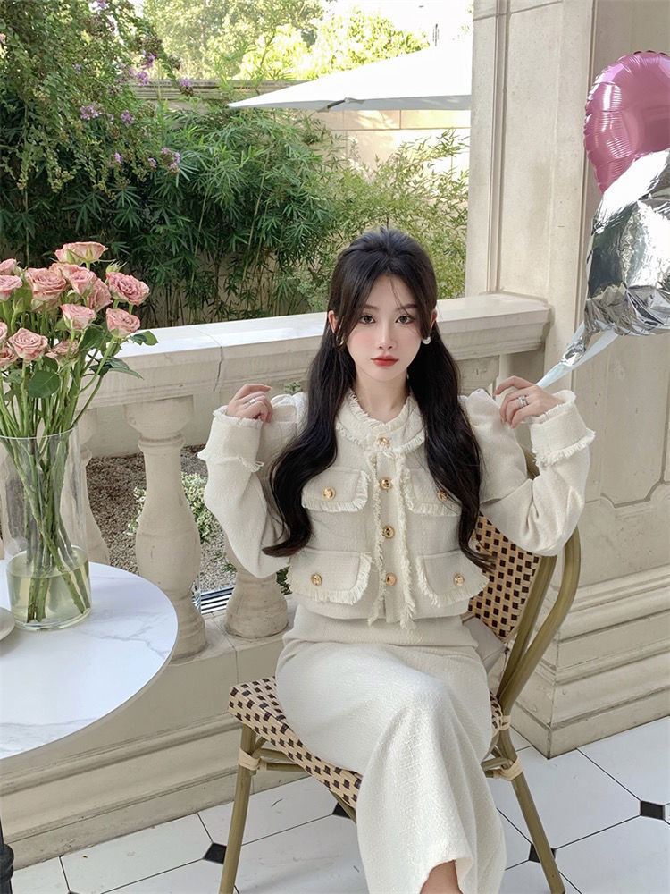 한국식 프렌치 스타일 패셔너블 슬리밍 슈트 여성용 하이엔드 긴팔 탑과 하이웨이스트 하프 스커트