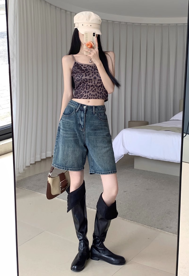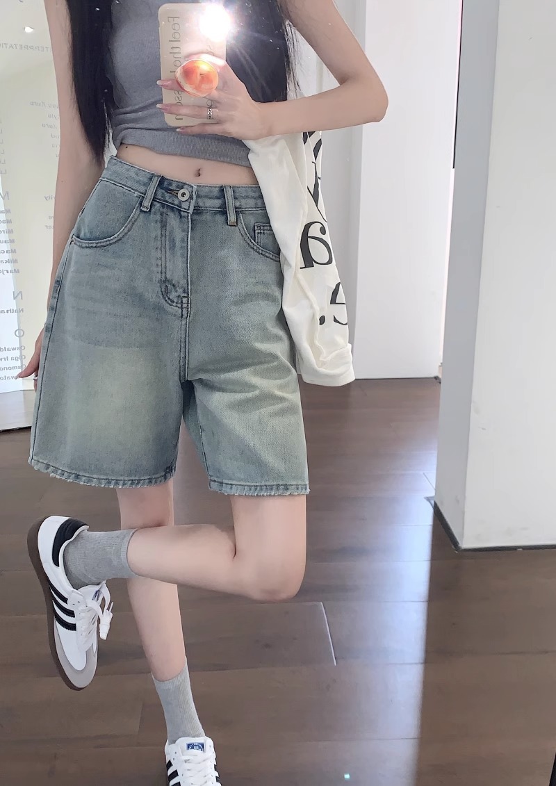 [10000 명] 레트로 씻은 스트레이트 데님 반바지 여성의 높은 허리 슬림 느슨한 오래 된 바지 여름스토어 가기