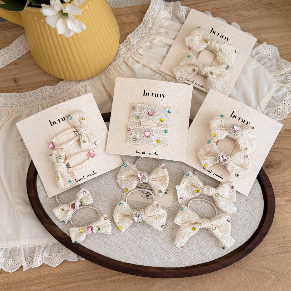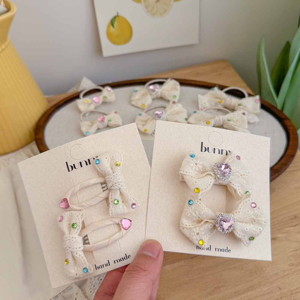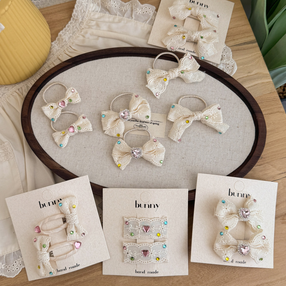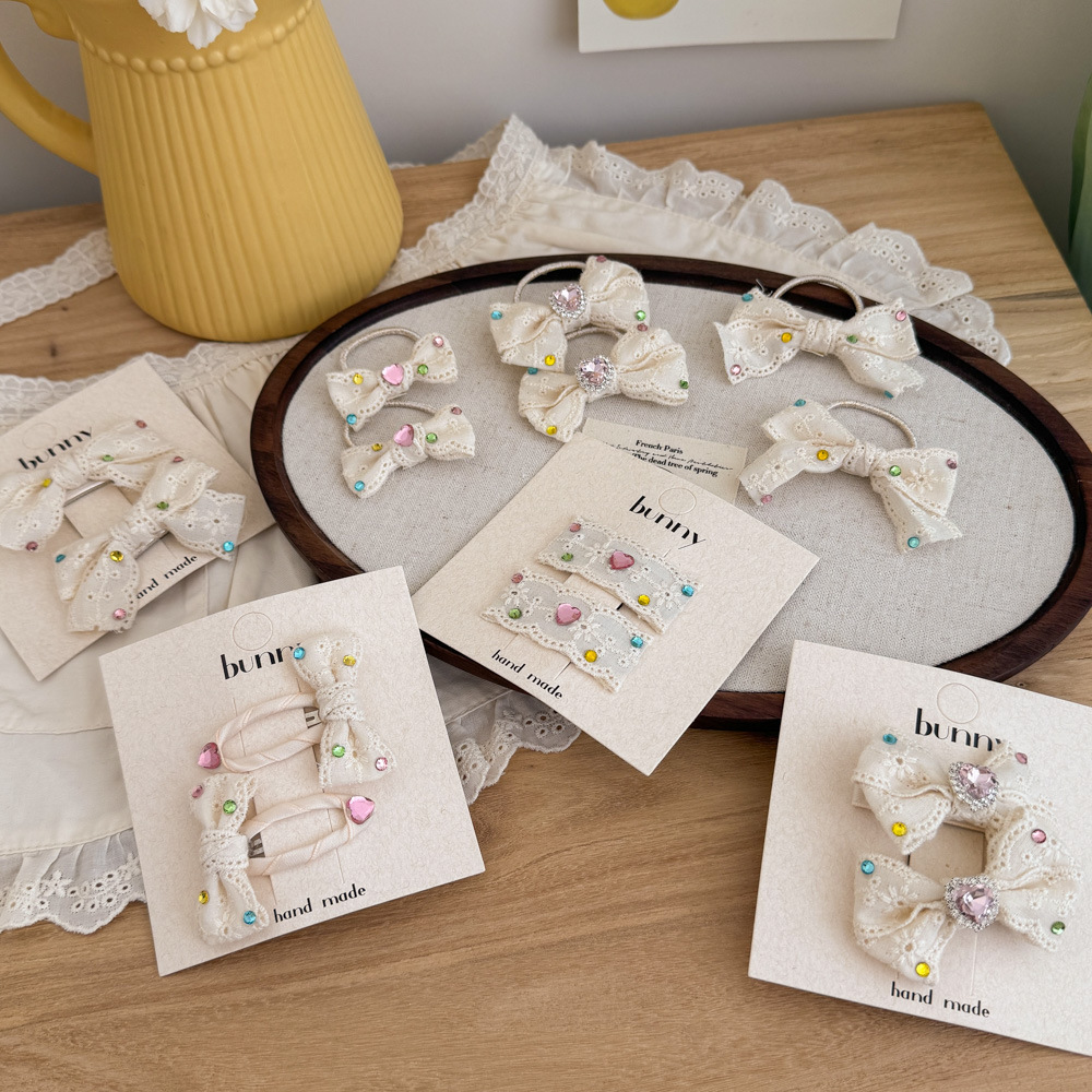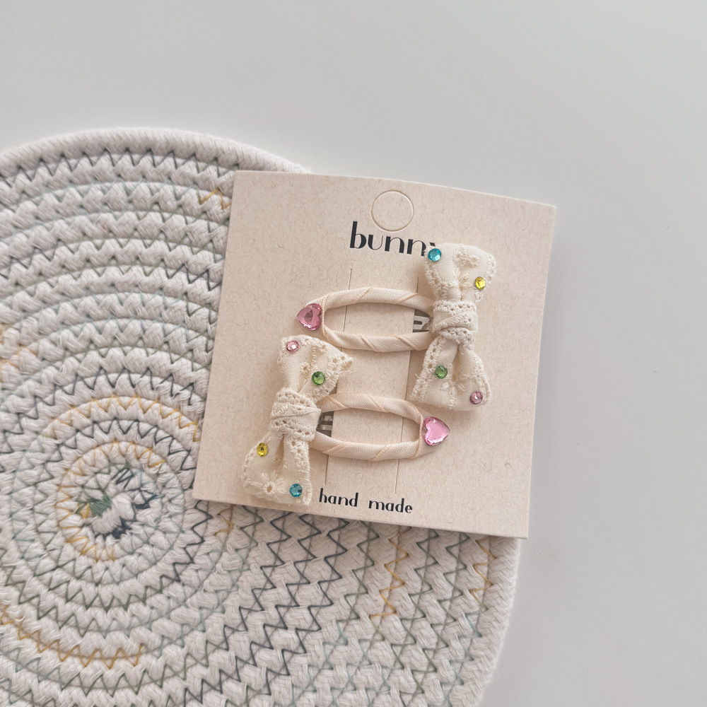 어린이 라인스톤 레이스 활 헤어핀 달콤한 소녀 베이지 아기 헤어핀 헤어 액세서리 고무 텐돈 헤드웨어 BB 클립
