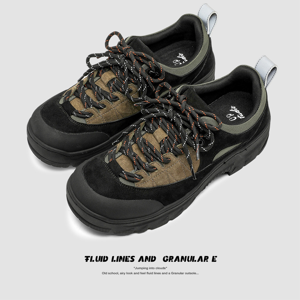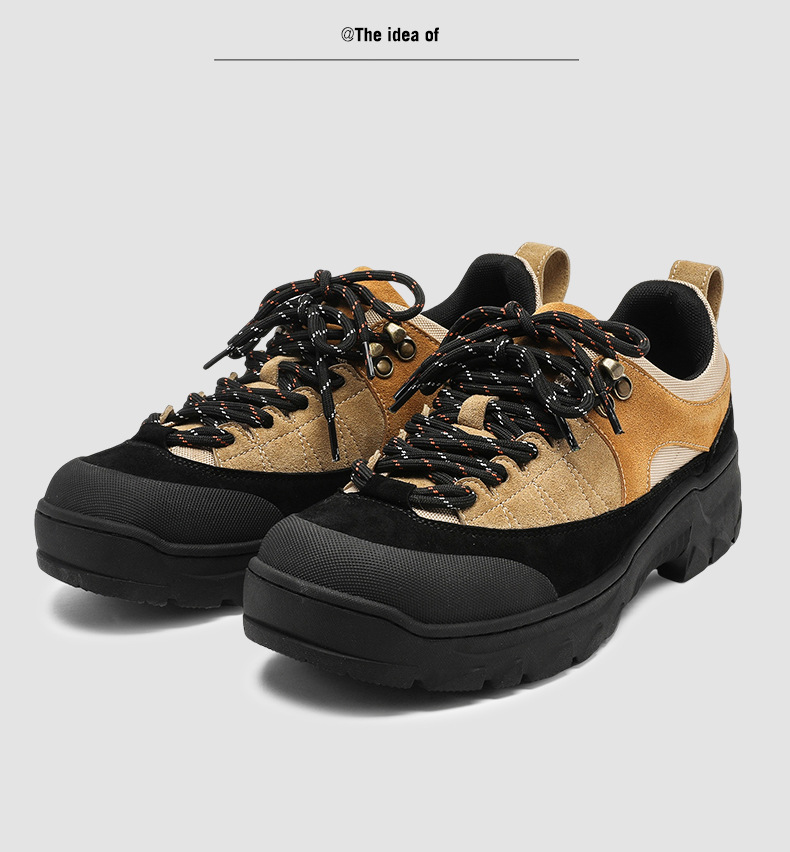 2025 새로운 두꺼운 밑창 야외 남성 하이킹 신발 증가 레이스 업 짧은 얼굴 캐주얼 신발 바느질 남성 및 여성 보드 신발 조수
