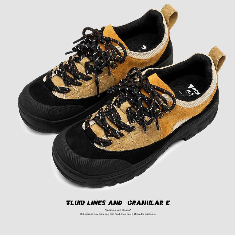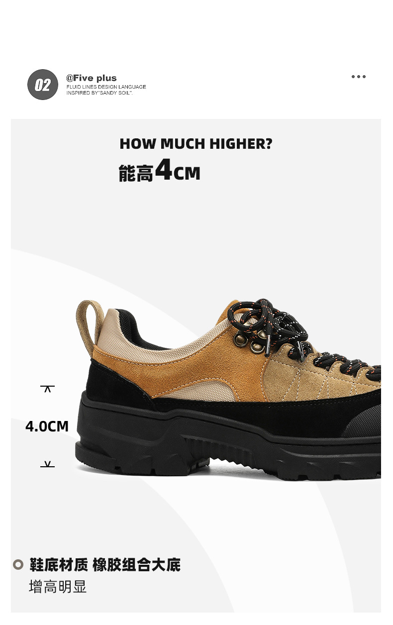2025 새로운 두꺼운 밑창 야외 남성 하이킹 신발 증가 레이스 업 짧은 얼굴 캐주얼 신발 바느질 남성 및 여성 보드 신발 조수스토어 가기