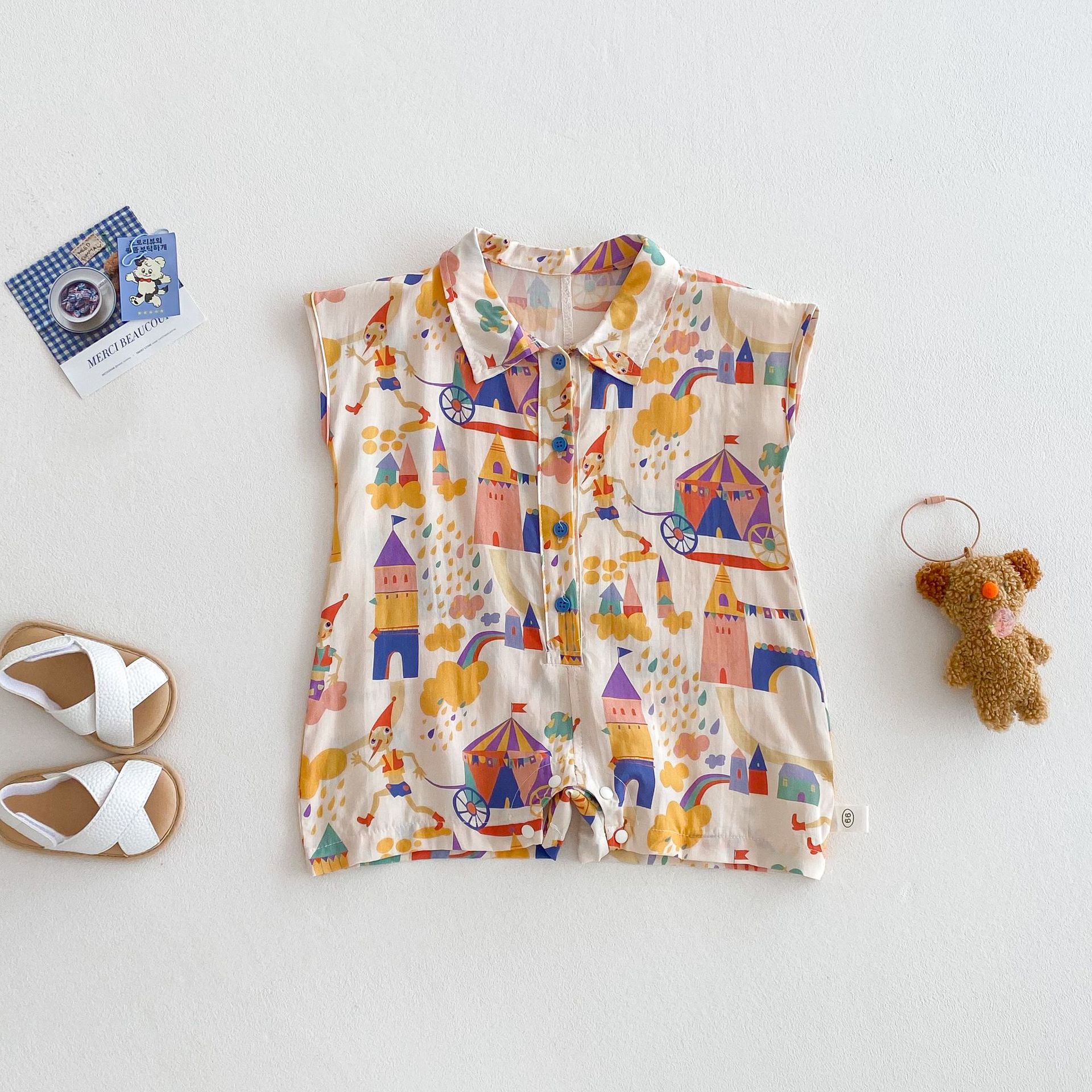 아기 만화 점프 수트 2025 새로운 여름 신생아 옷 아기 풀 버전 작은 집 등반 옷 조수스토어 가기