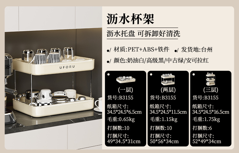 데스크탑 스토리지 랙 홈 높은 수준의 사무실 대형 용량 컵 홀더 배수 트레이 라이트 럭셔리 컵 스토리지 랙