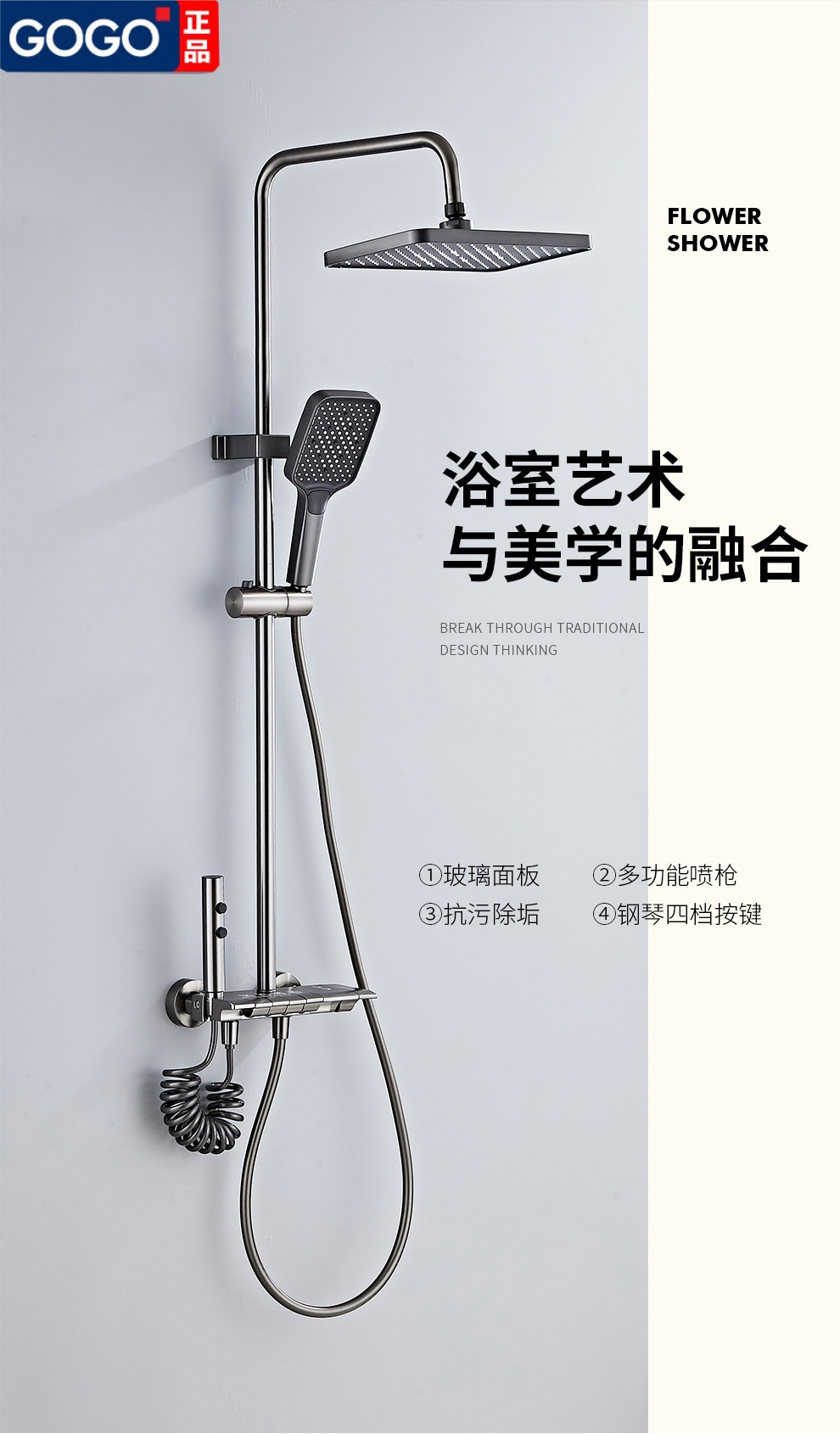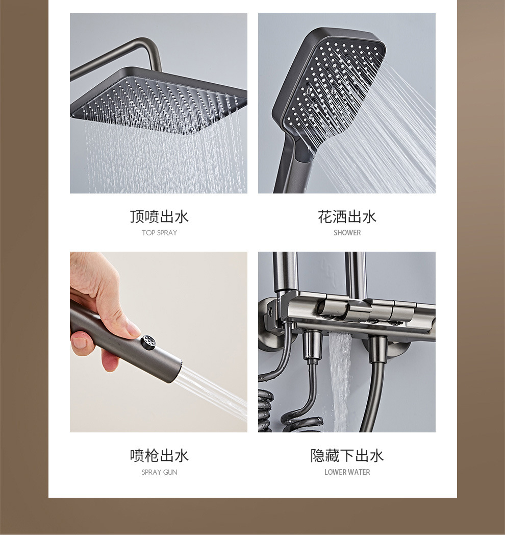 총 회색 디지털 디스플레이 일정한 온도 4 기어 샤워 세트 분위기 빛 가정용 욕실 압축 비 샤워 샤워스토어 가기