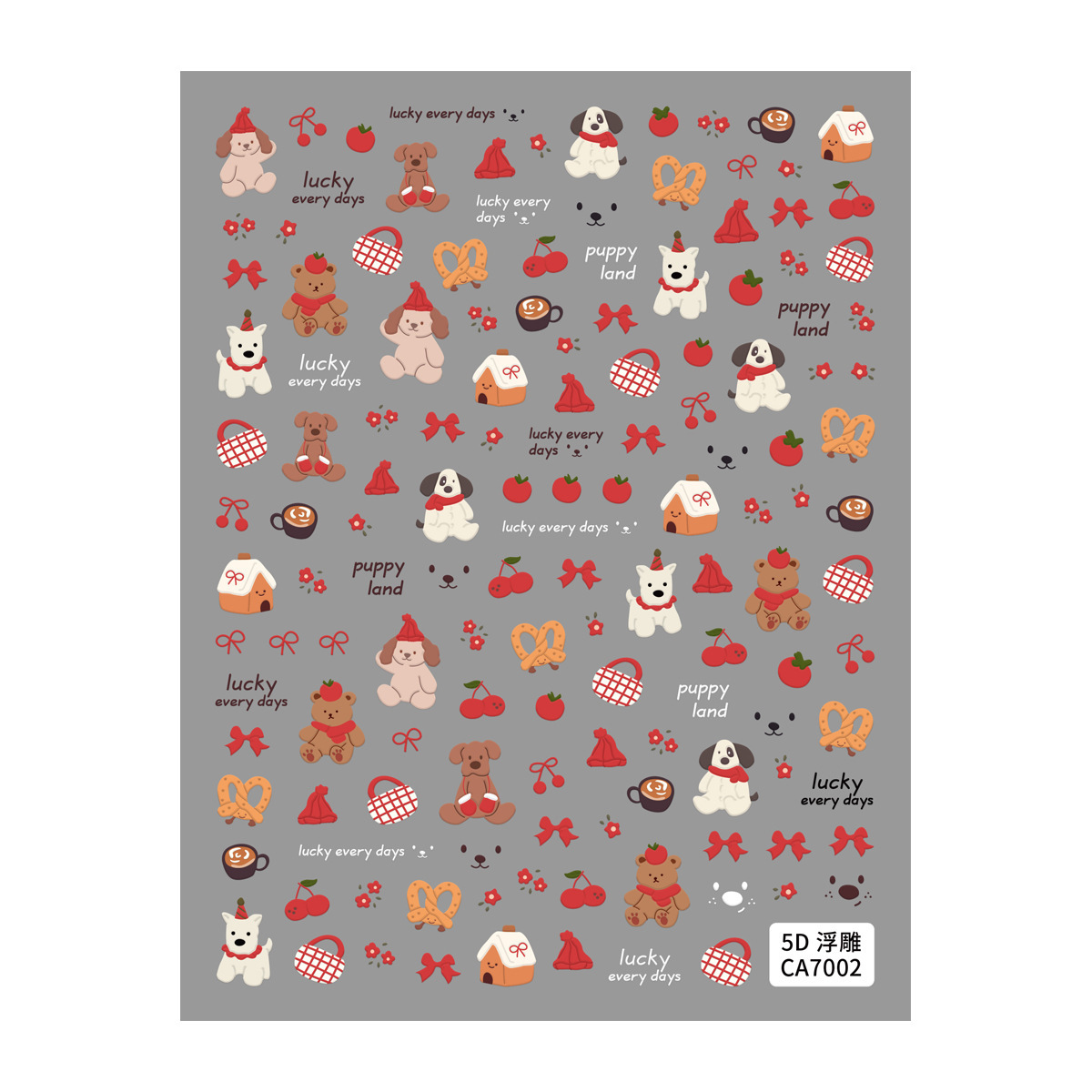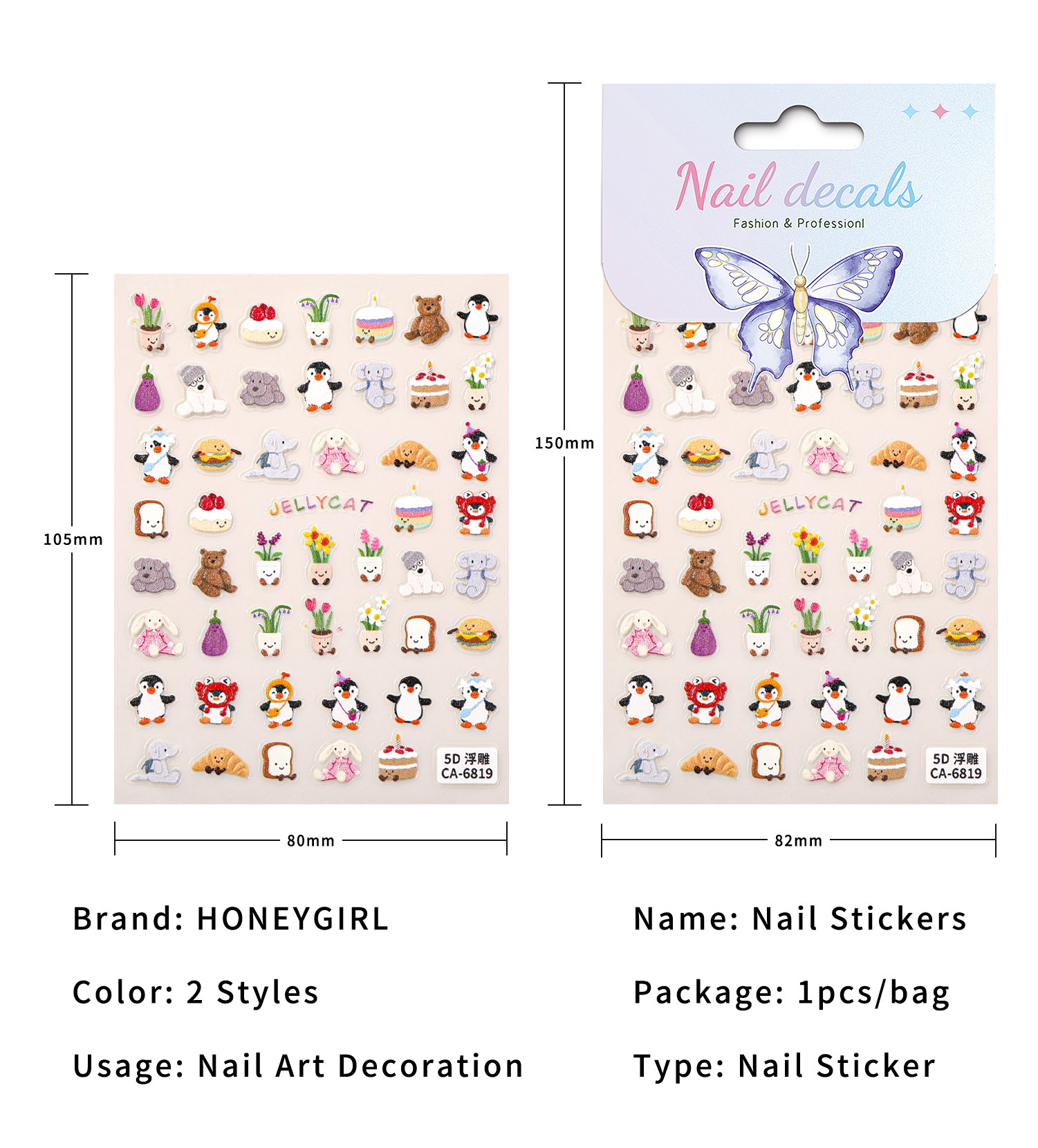 귀여운 봉제 인형 네일 스티커 5D 양각 입체 펭귄 곰 강아지 네일 아트 스티커 쥬얼리 CA 스타일