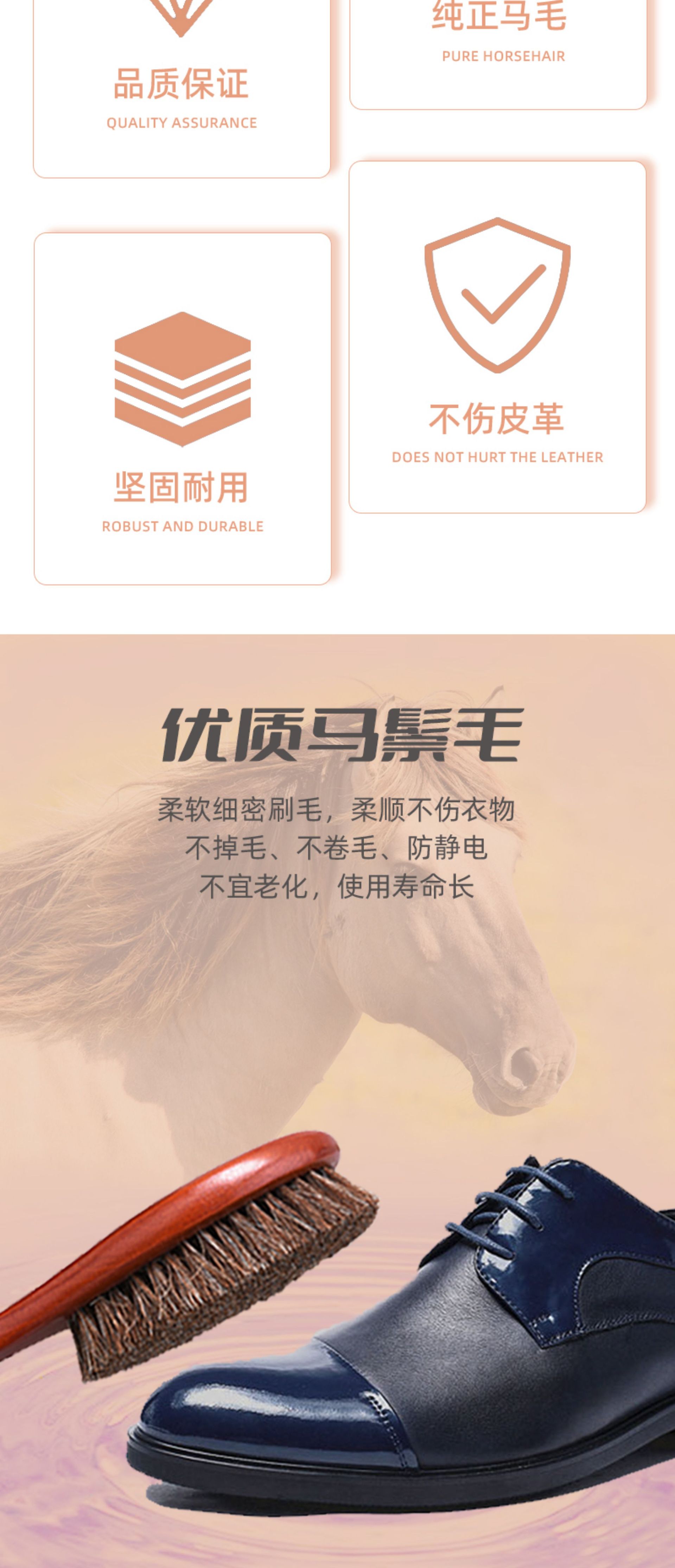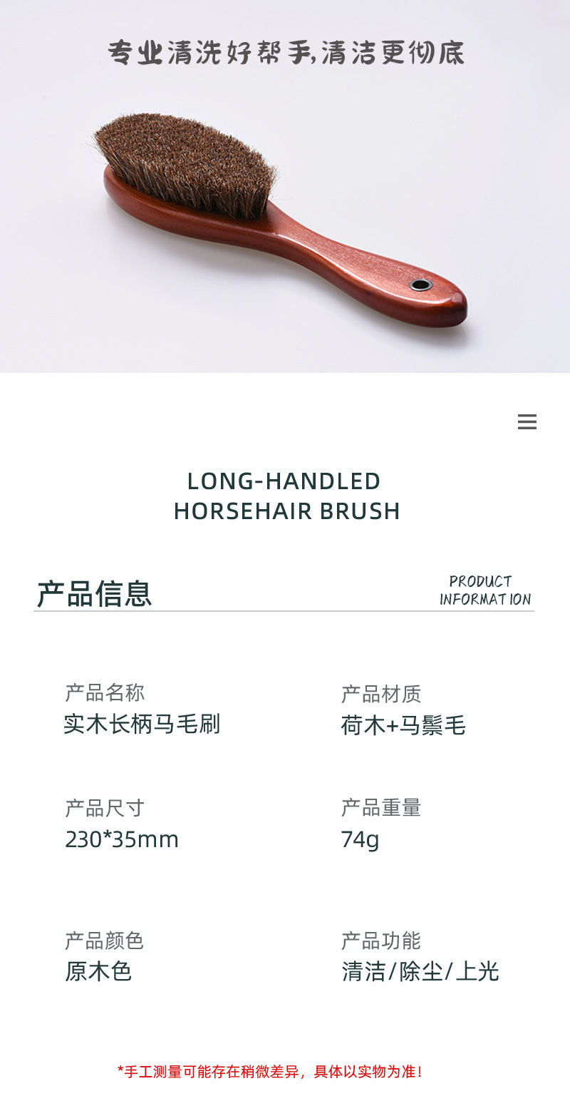 말털 원목 가죽 구두솔 나무 손잡이 원목 말털 브러시 긴 손잡이 부드러운 강모 연마 청소 먼지 제거 브러시스토어 가기