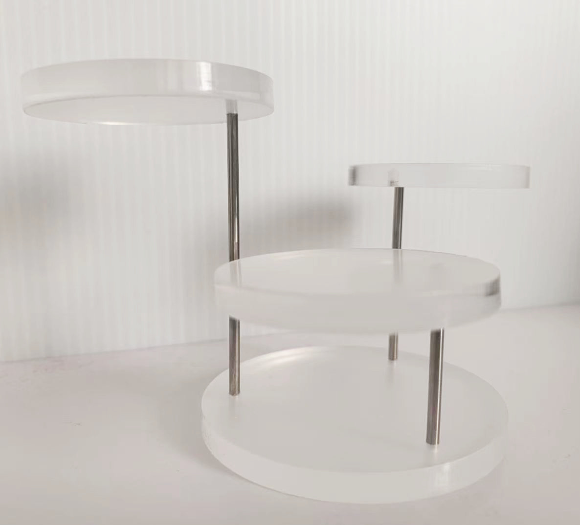 뜨거운 판매 아크릴 보석 반지 보석 보석 케이크 디스플레이 스탠드 3 층 둥근 보석 회전 디스플레이 스탠드