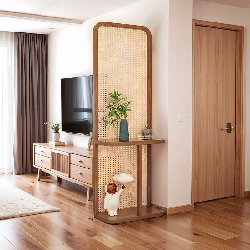 레트로 등나무 스크린 파티션 거실 입구 복도 대피소 이동식 단단한 나무 좌석 화면 침묵 바람 저장 꽃 랙