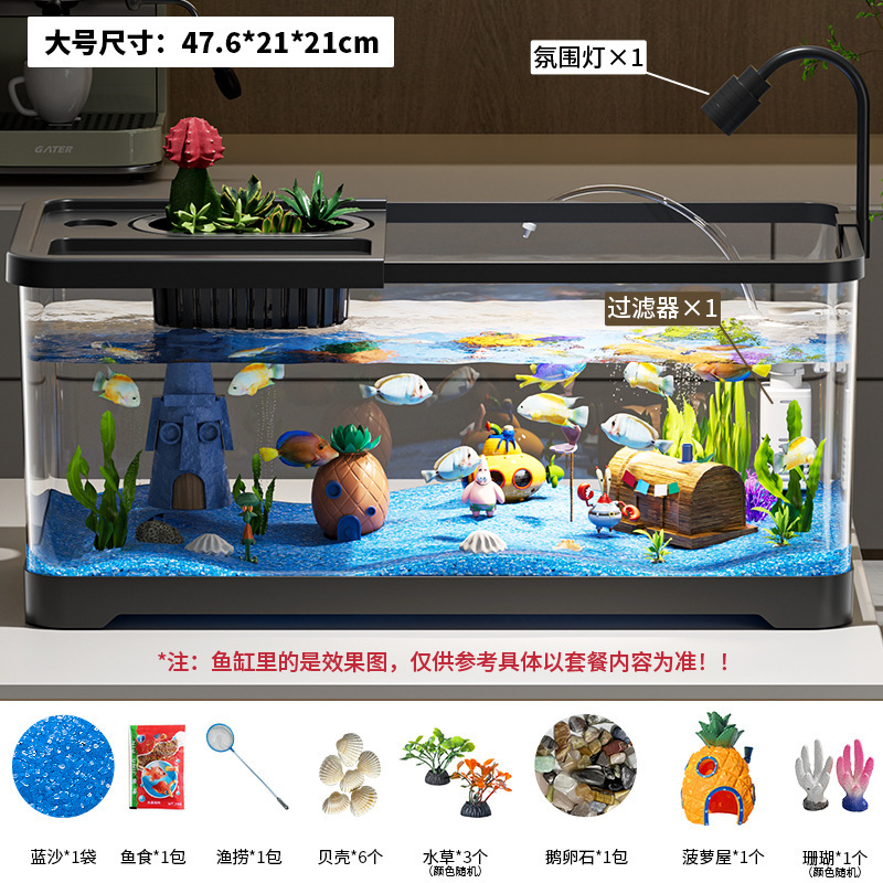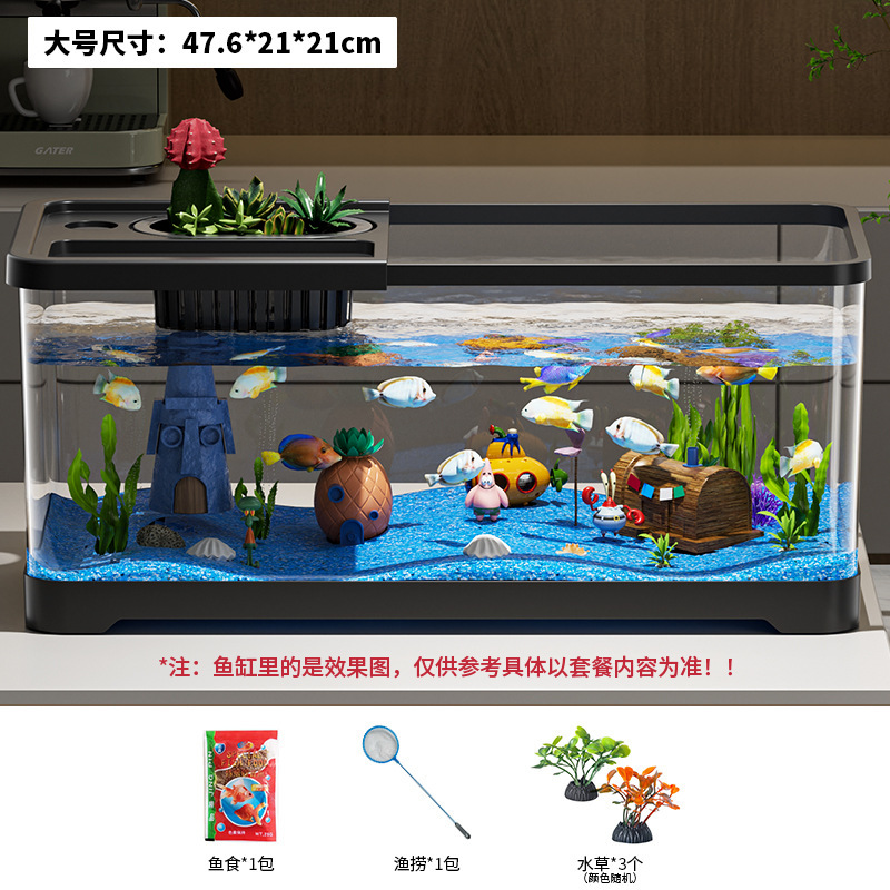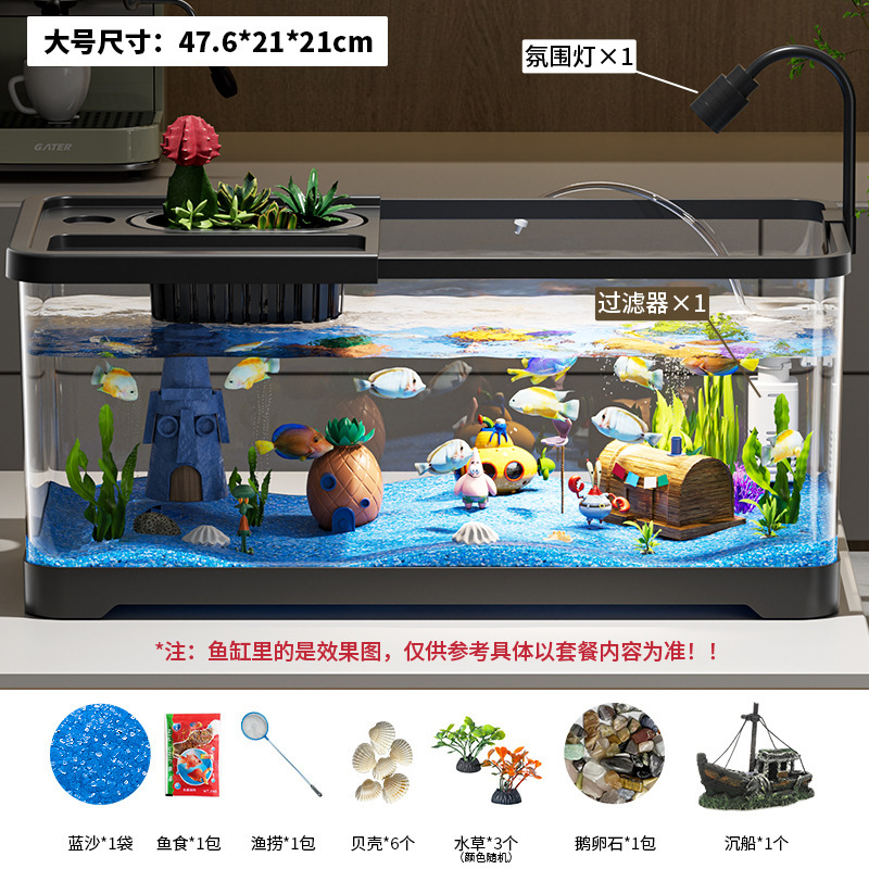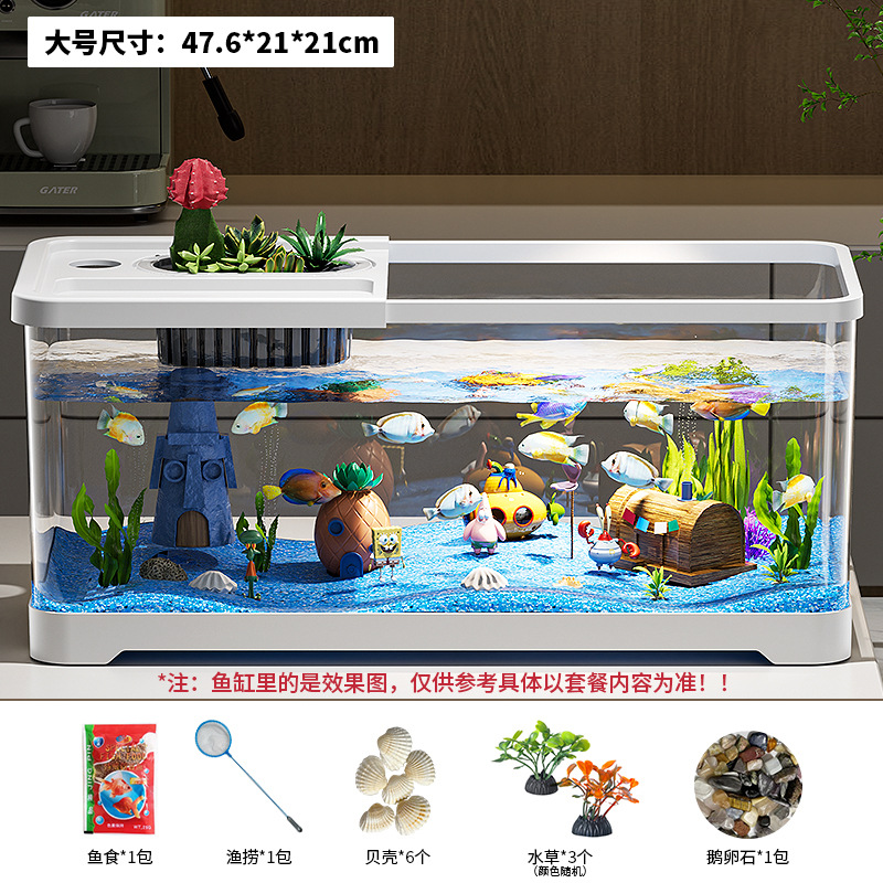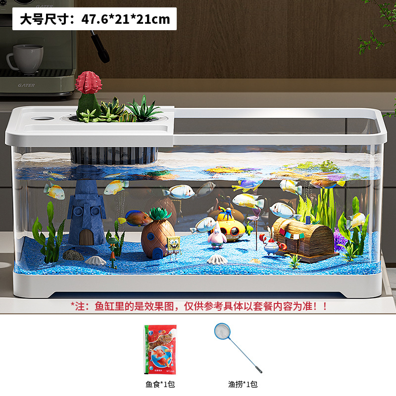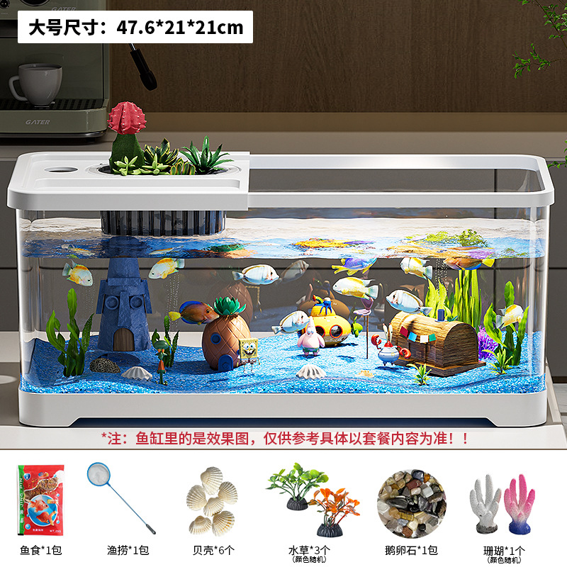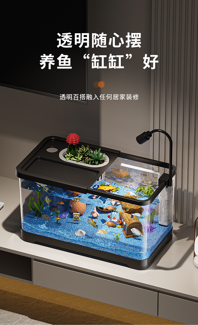 가정용 생태 투명 어항, 데스크탑 사각형 붕어 어항, 사무실 거실 조경용 계류 어항, 거북이 사육 어항
