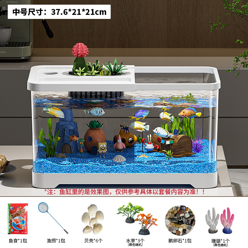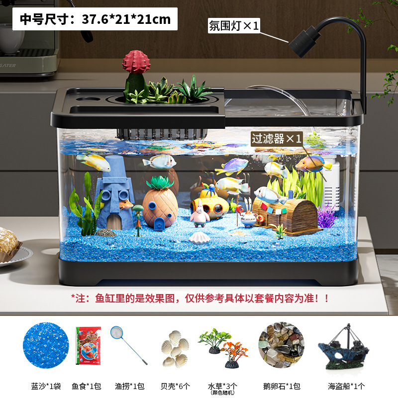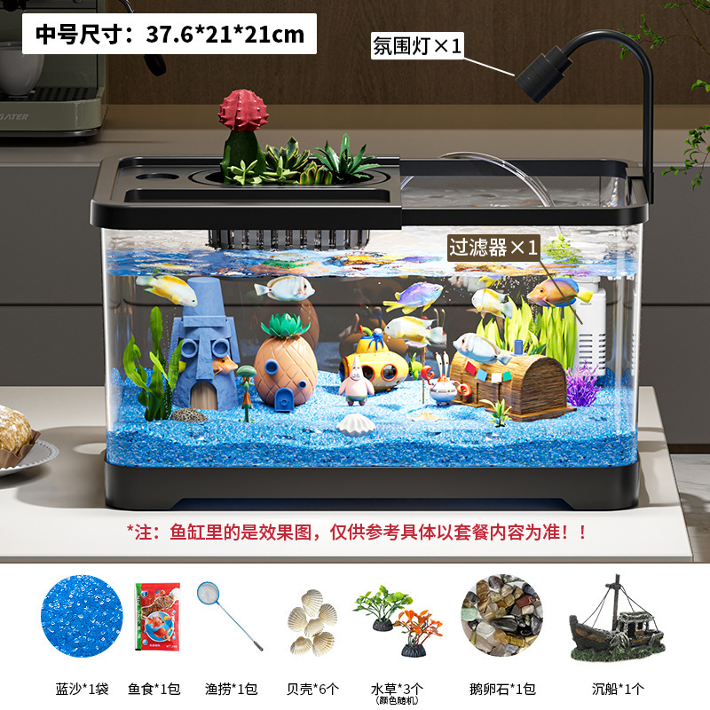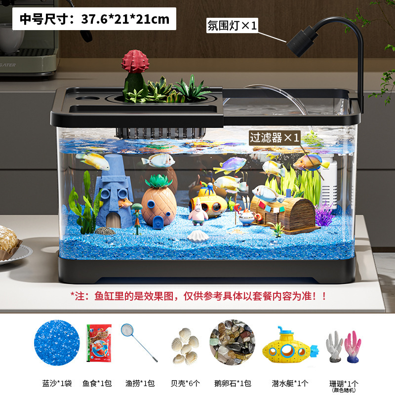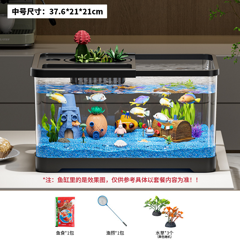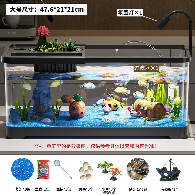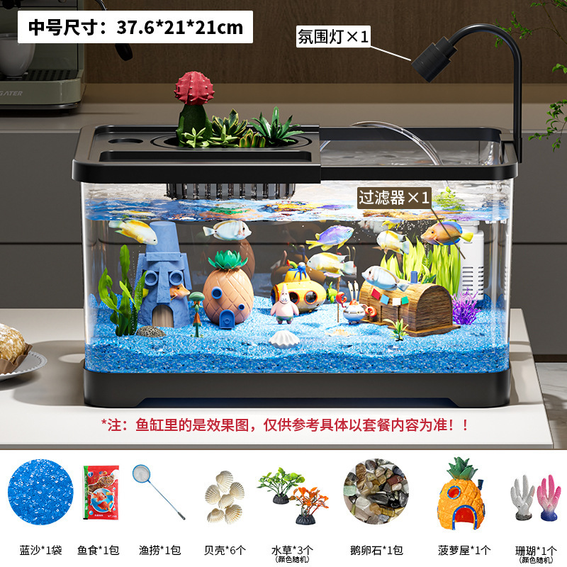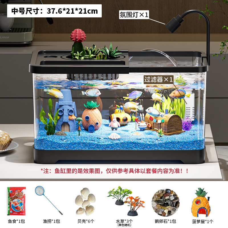 가정용 생태 투명 어항, 데스크탑 사각형 붕어 어항, 사무실 거실 조경용 계류 어항, 거북이 사육 어항