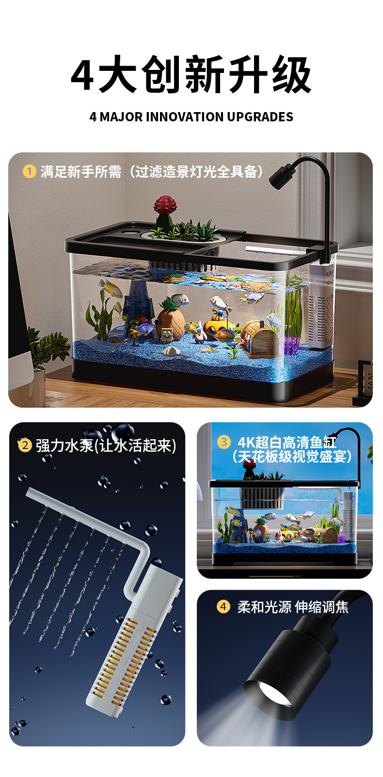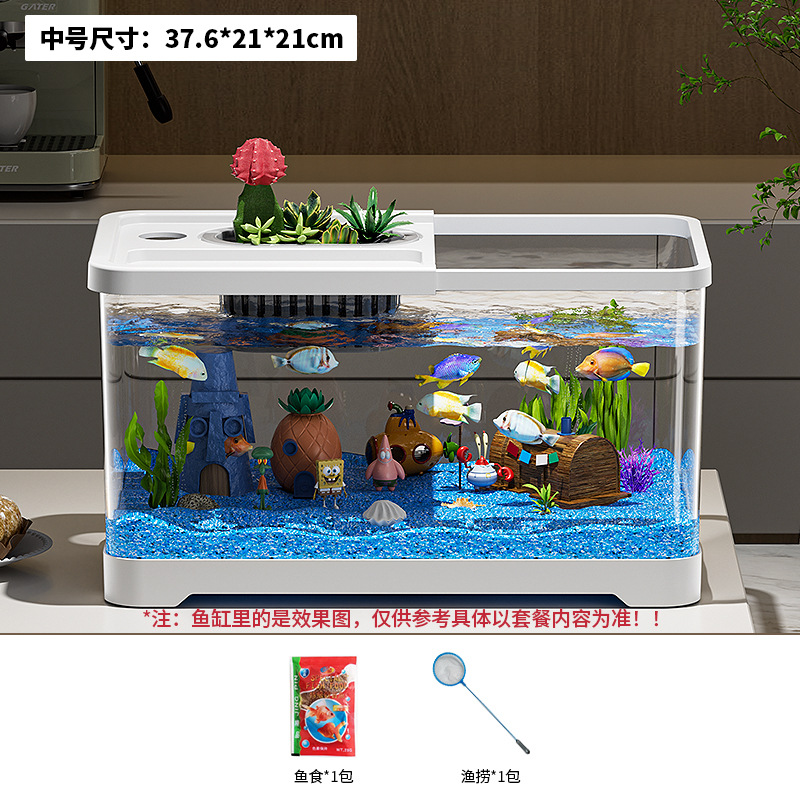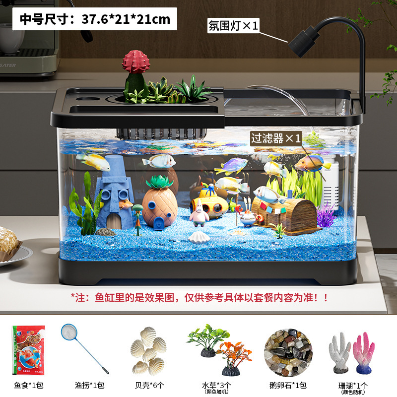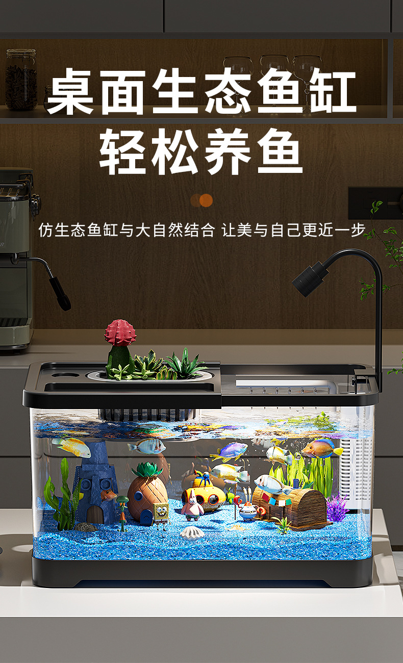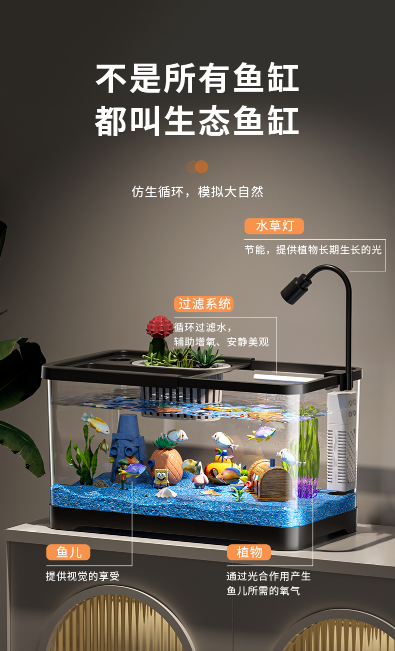가정용 생태 투명 어항, 데스크탑 사각형 붕어 어항, 사무실 거실 조경용 계류 어항, 거북이 사육 어항