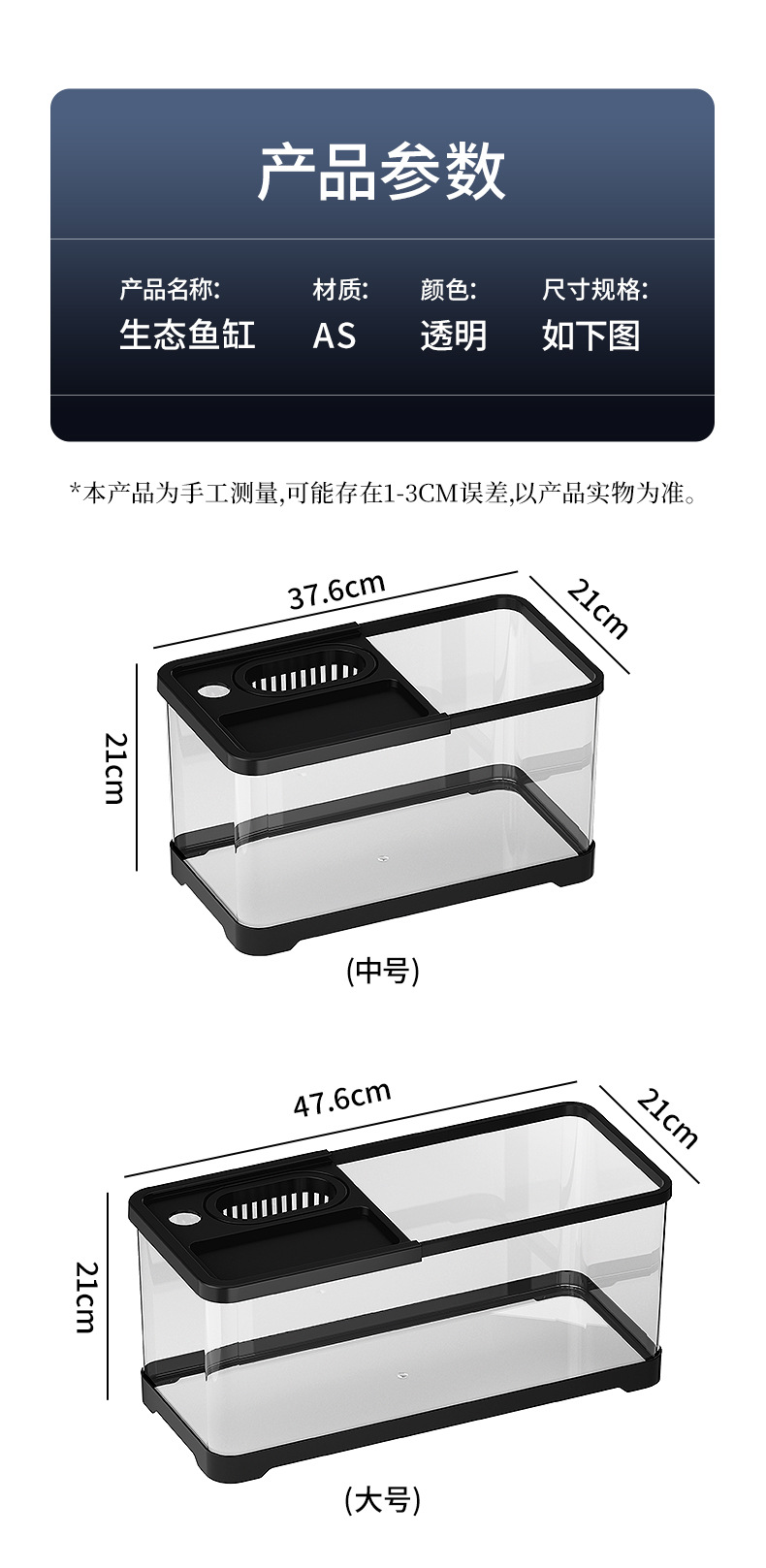 • 커버가 있는 대형 흰색 [투명도가 높고 오랫동안 사용해도 흐려지지 않는 생태수조]