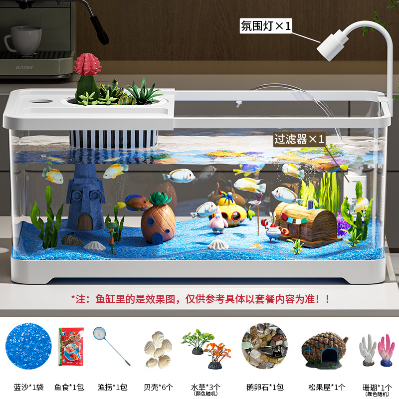 수조, 수족관, 작은 거실, 생태 탱크, 조경, 필터링 및 산소 제조 일체형 탱크, 투명 가정용 데스크탑 거북이 탱크