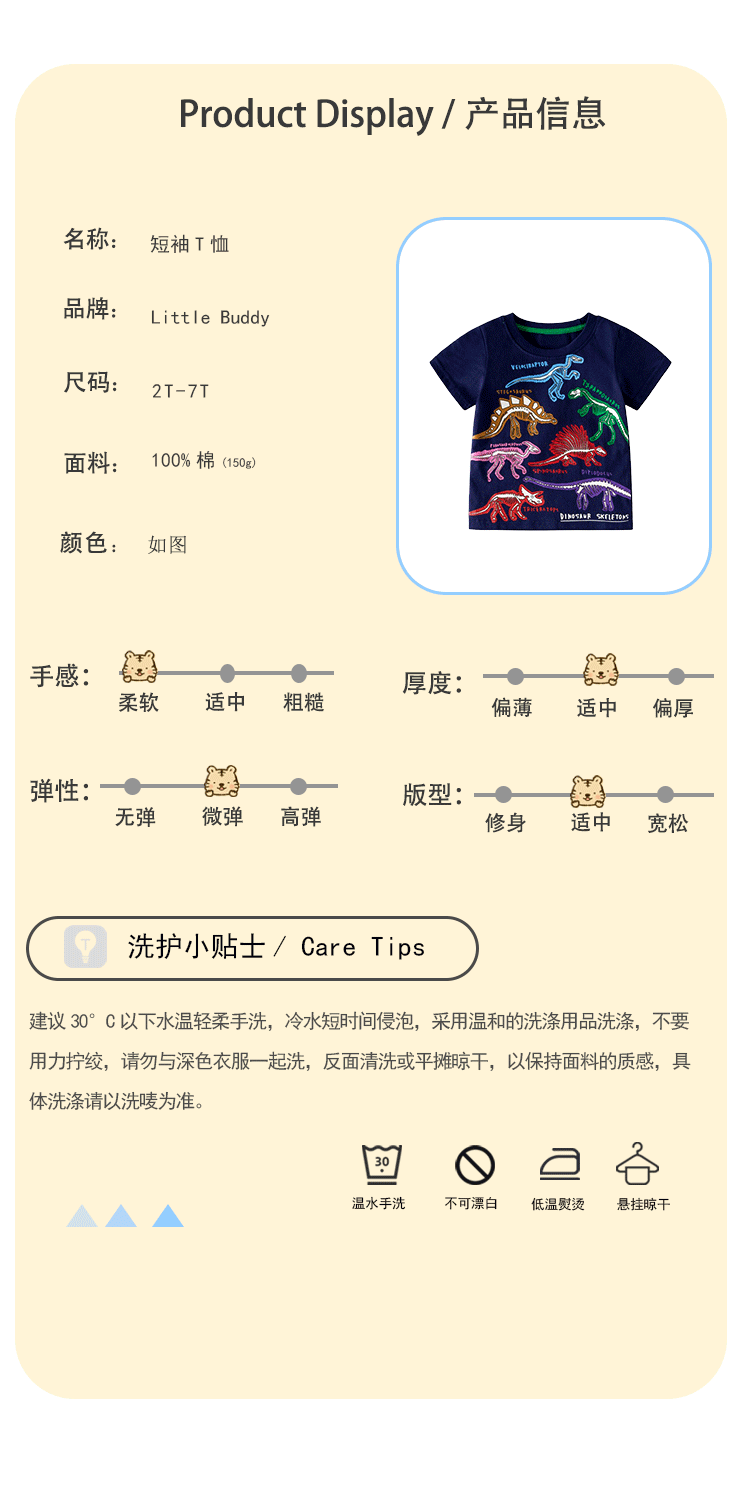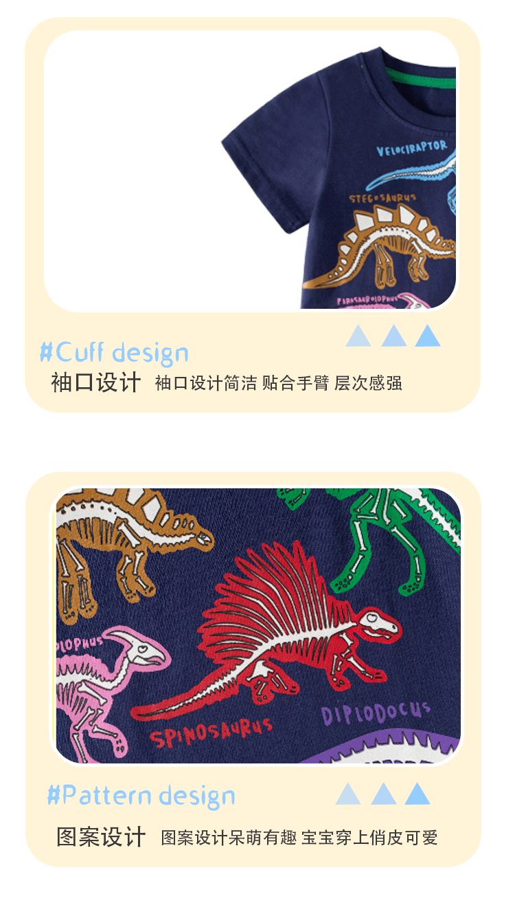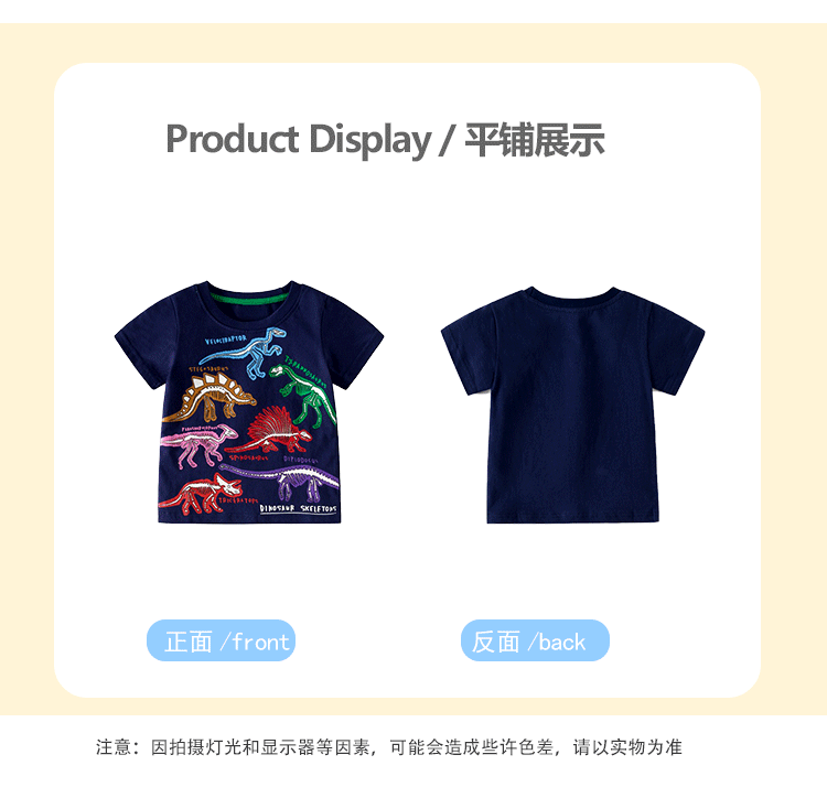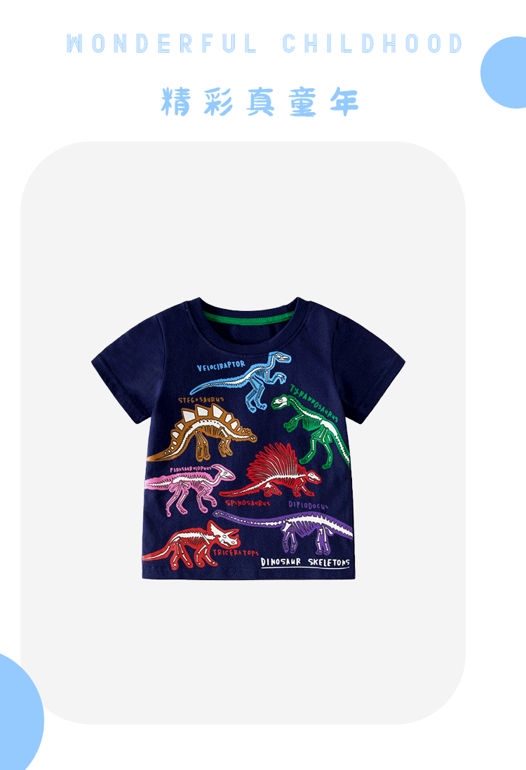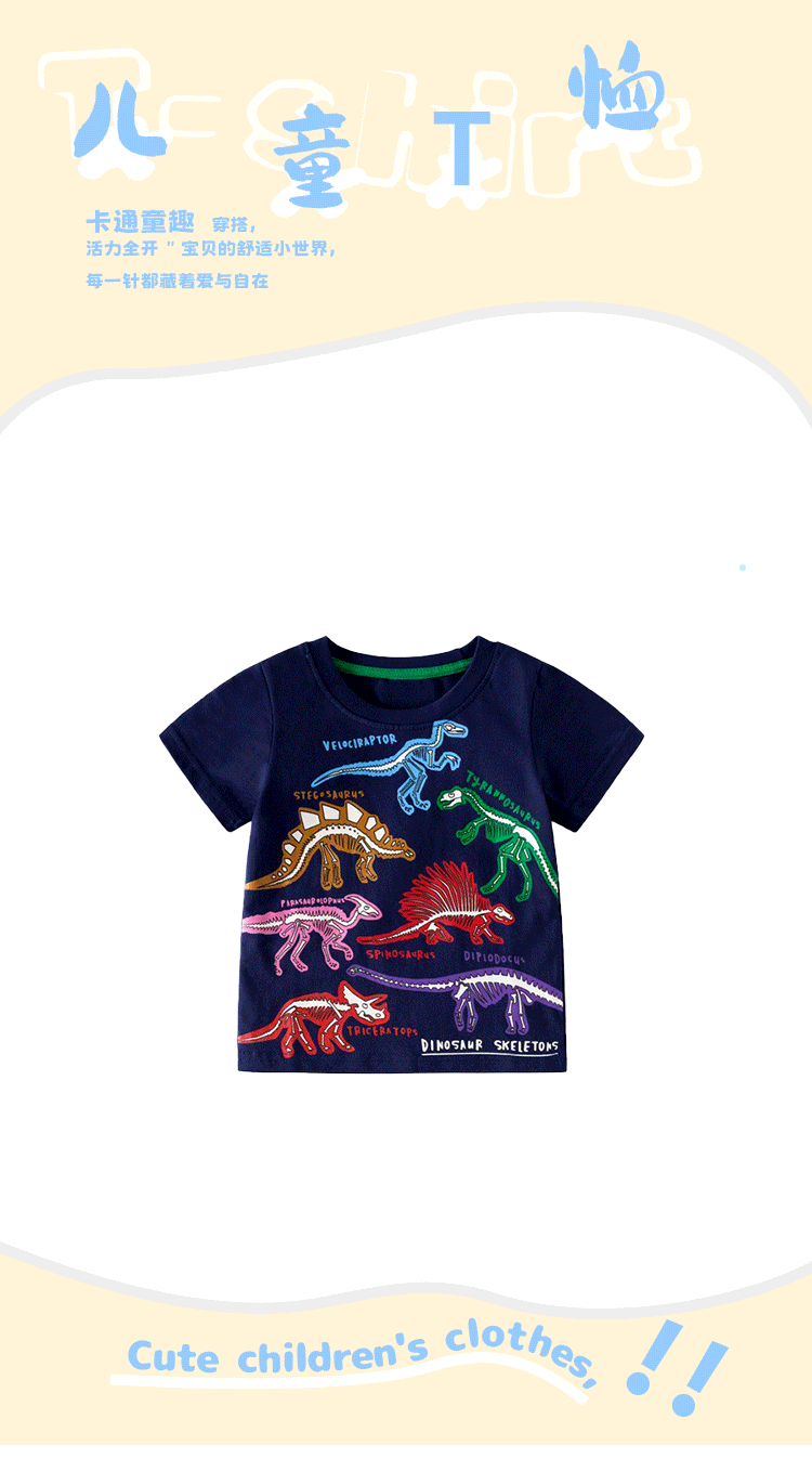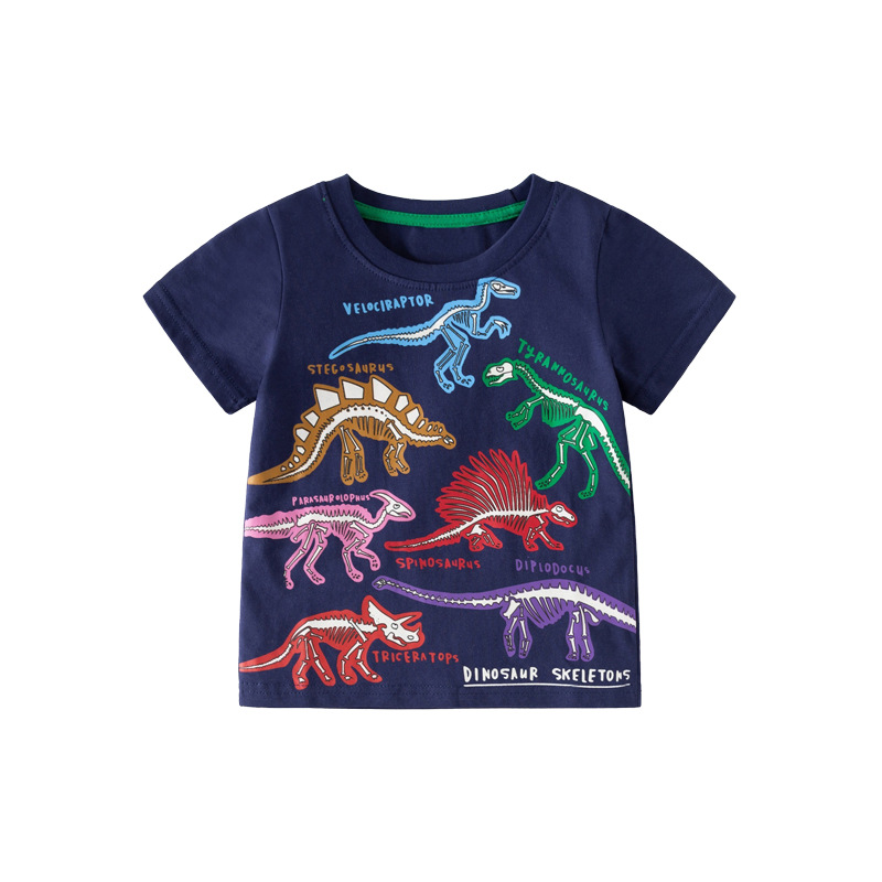 맞춤형 아동복 가공 2025 봄 여름 신작 아동 티셔츠 빛나는 공룡 신작 반팔 탑 아동 티셔츠