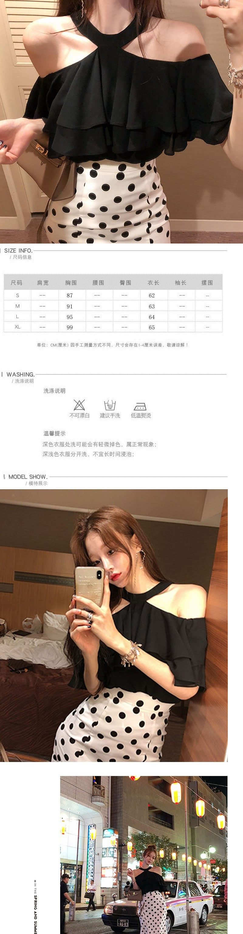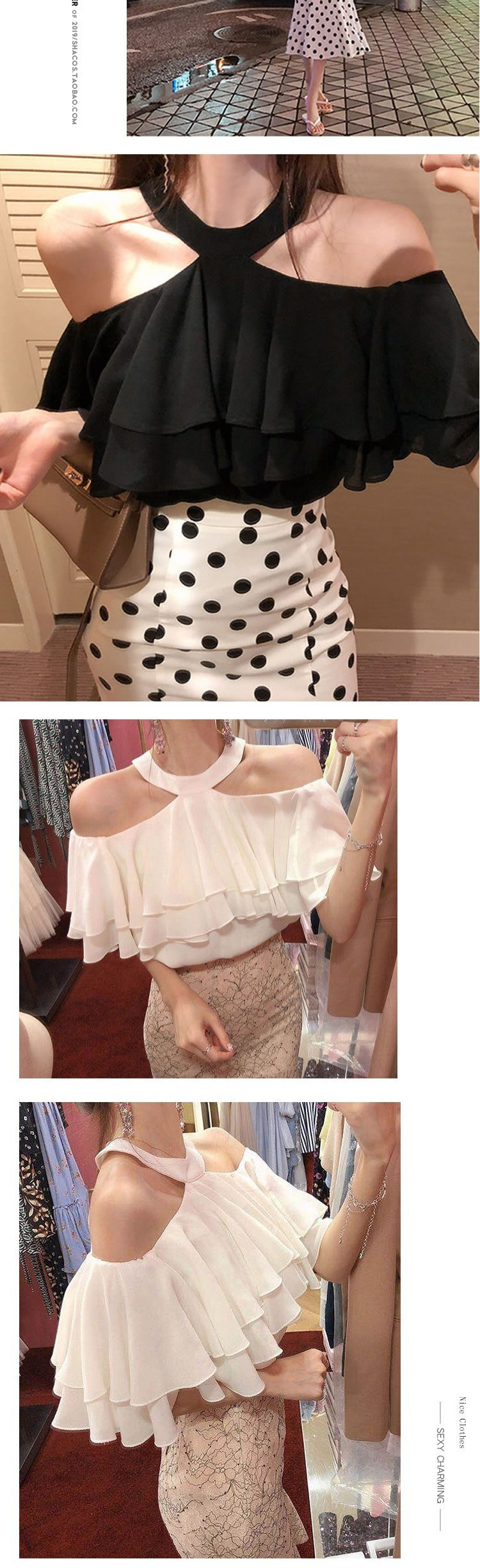 2023년 여름 여성을 위한 쉬폰 셔츠 새로운 한국 스타일 섹시한 홀터넥 노출 쇄골 러플 스타일 오프 숄더 탑스토어 가기