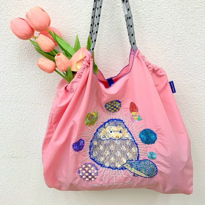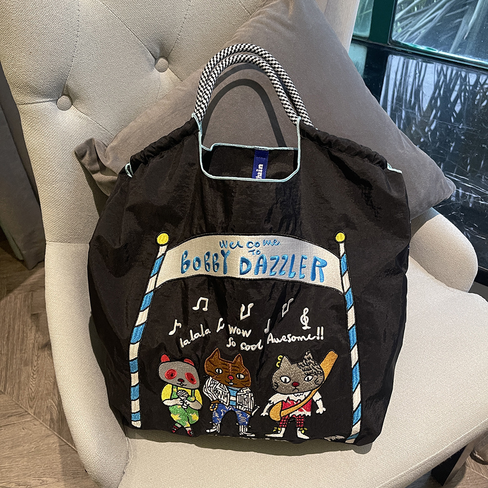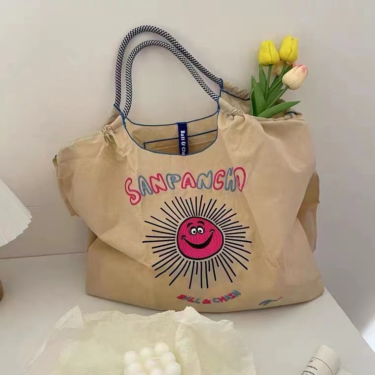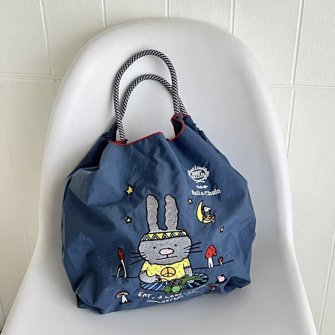 봄 새로운 일본 자수 볼 체인 환경 친화적 인 가방 여성 가방 쇼핑 크로스 바디 가방 어깨 캔버스 가방 토트 백스토어 가기