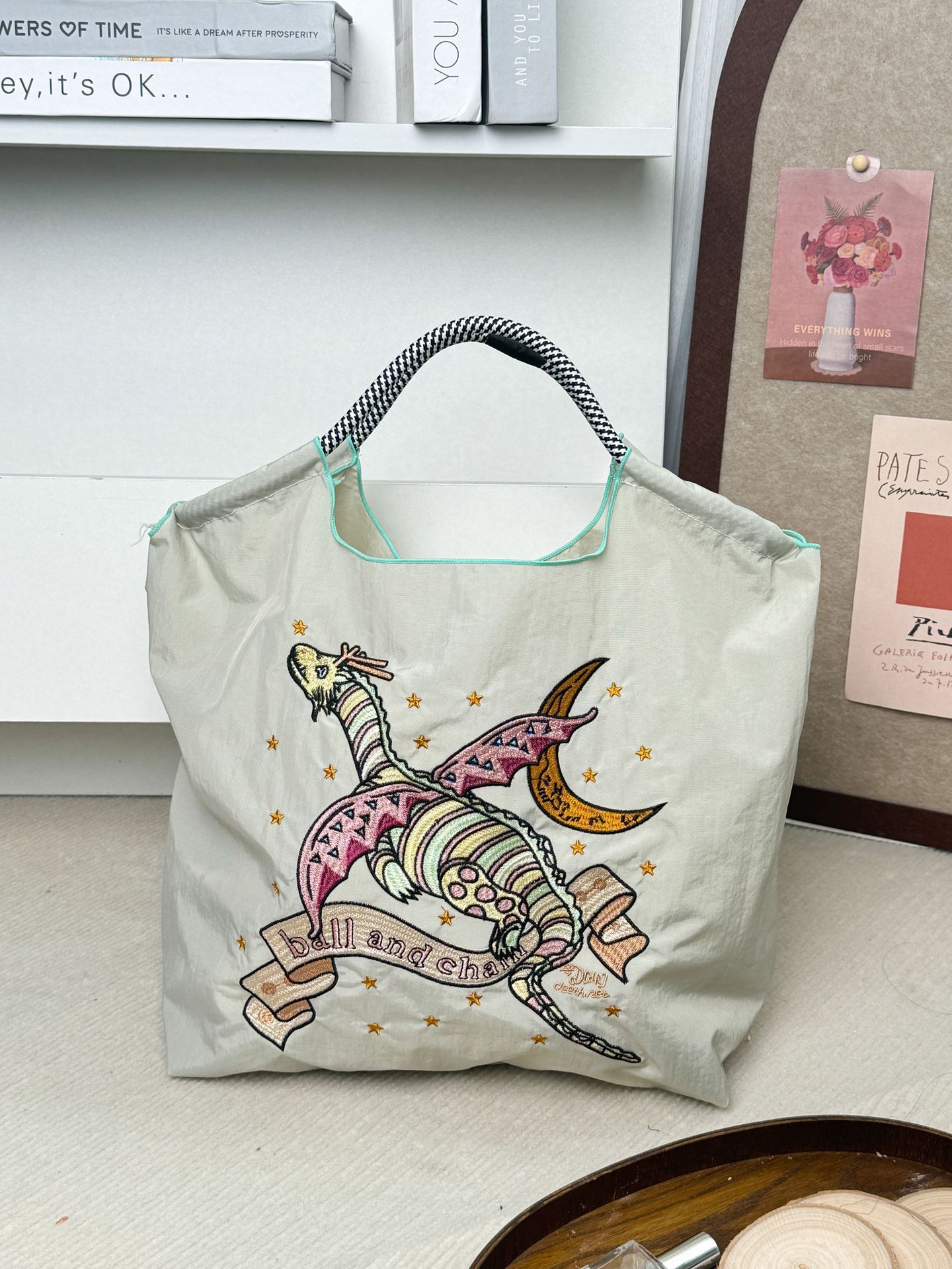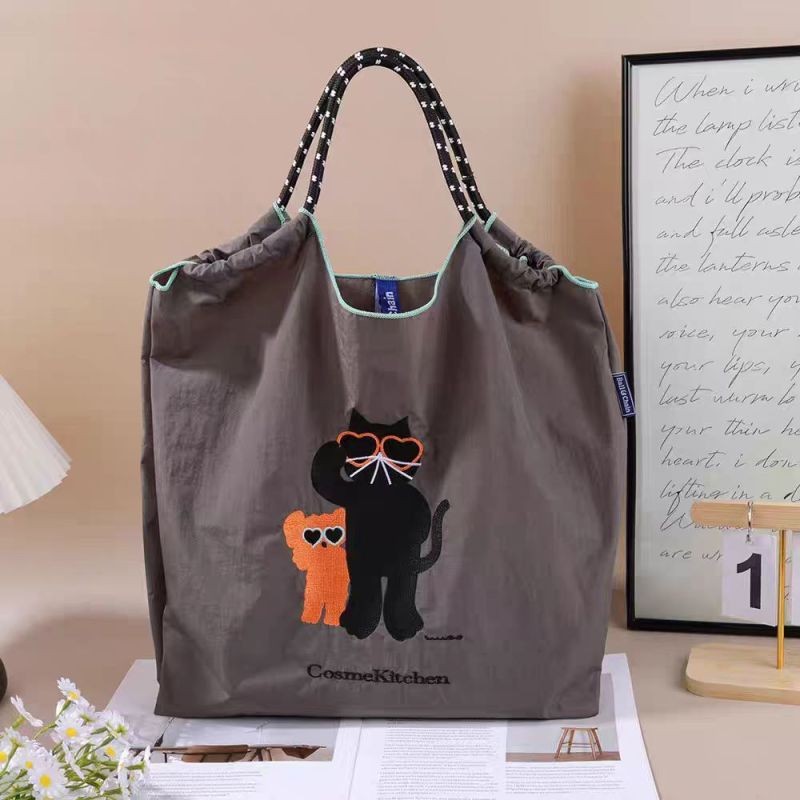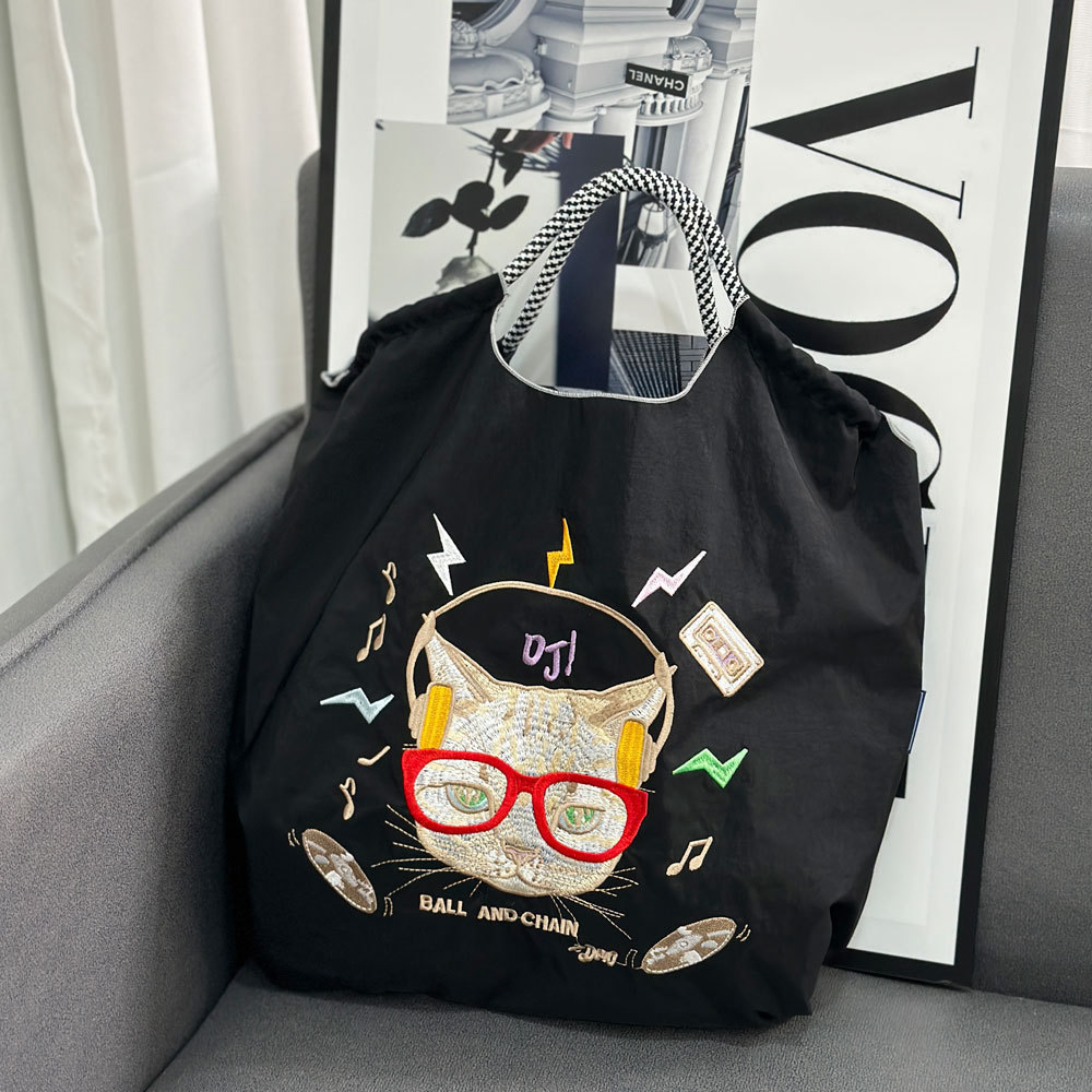 봄 새로운 일본 자수 볼 체인 환경 친화적 인 가방 여성 가방 쇼핑 크로스 바디 가방 어깨 캔버스 가방 토트 백스토어 가기