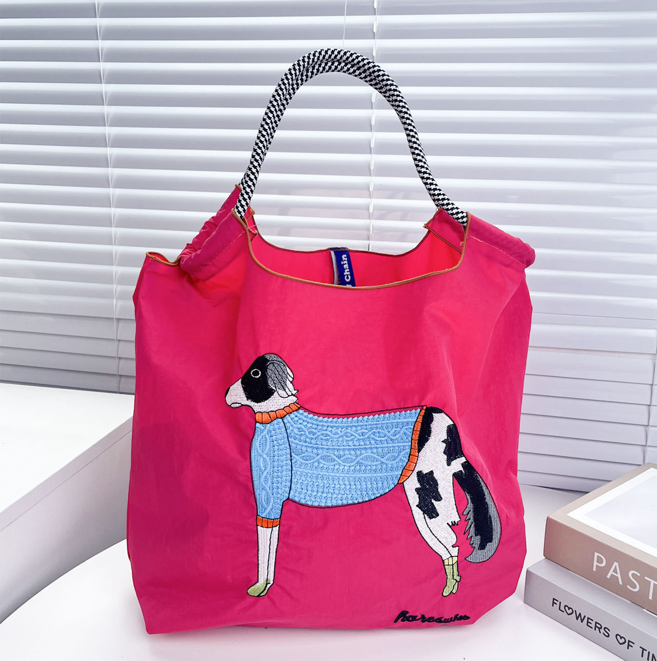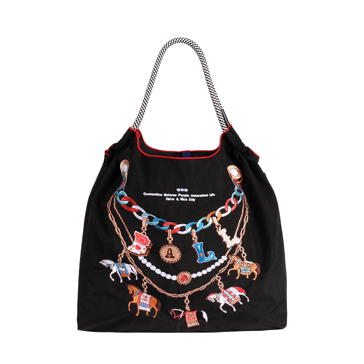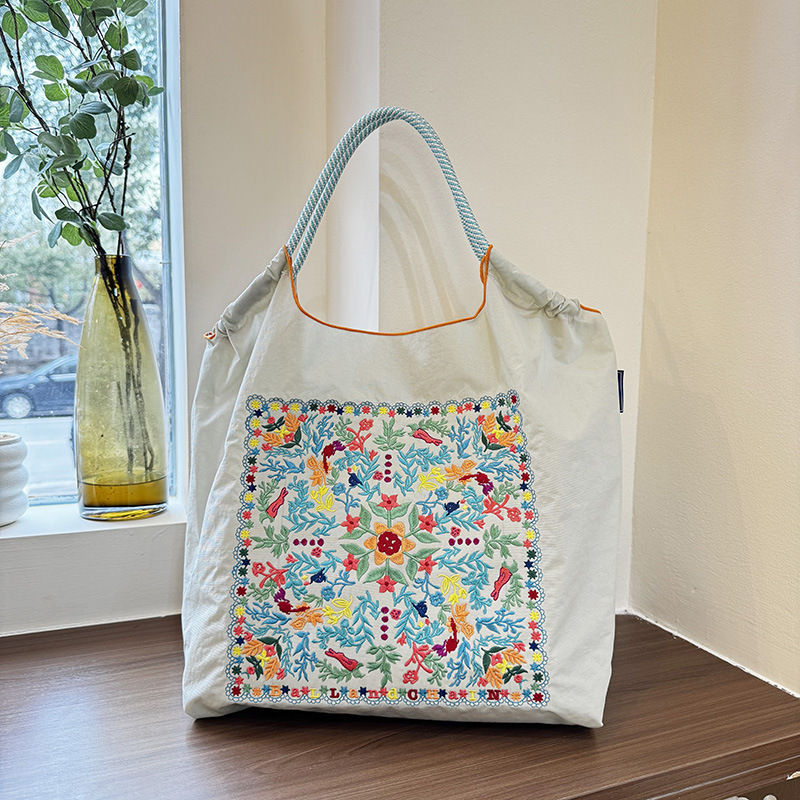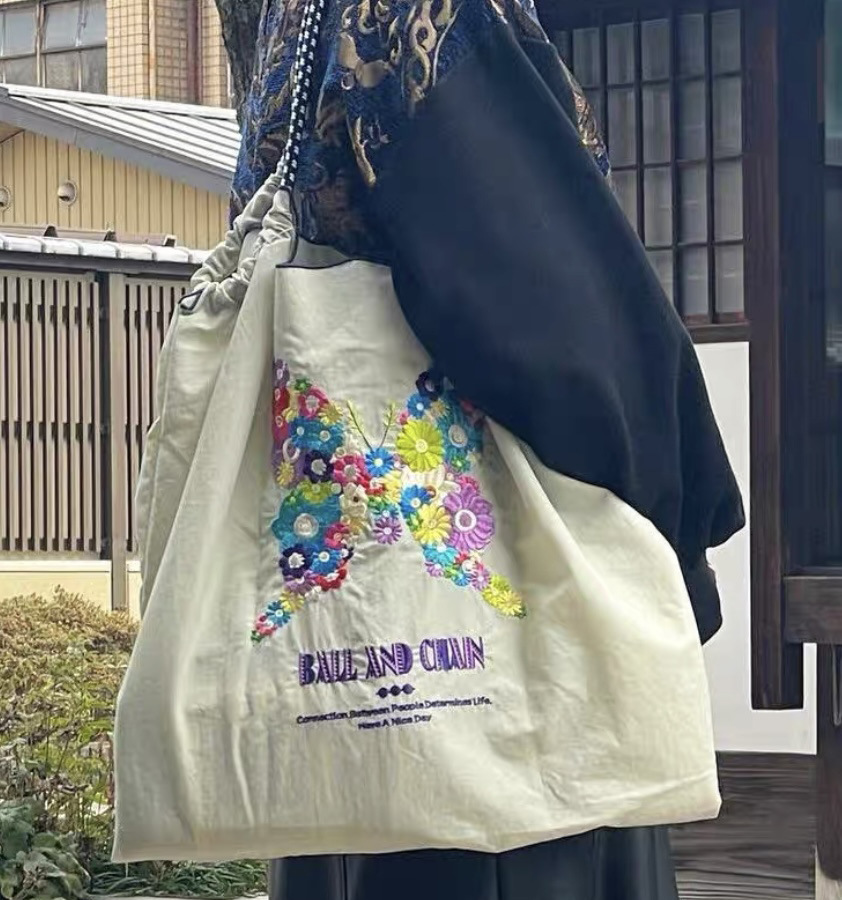 봄 새로운 일본 자수 볼 체인 환경 친화적 인 가방 여성 가방 쇼핑 크로스 바디 가방 어깨 캔버스 가방 토트 백
