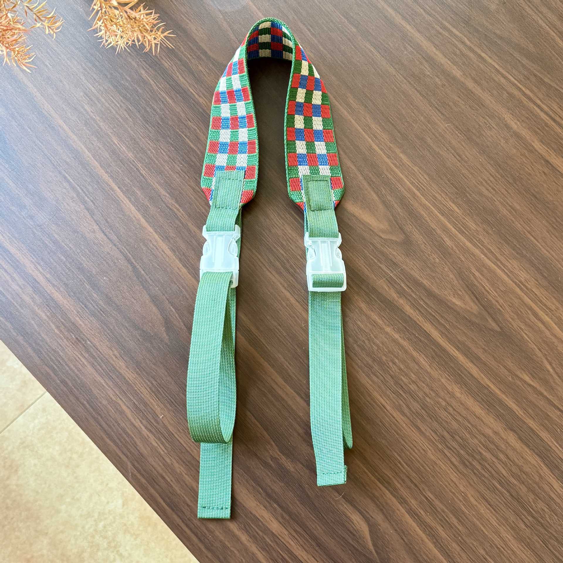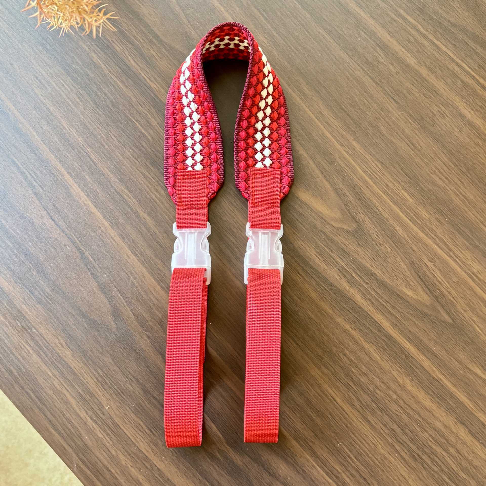 • 빨간색과 흰색의 사각형 넓은 어깨끈