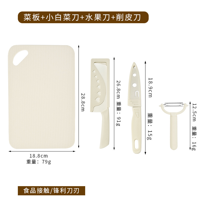 • 일본식 작은 도마 + 작은 흰색 칼 + 일본식 흰색 과일 칼 + 일본식 흰색 껍질 벗기기 칼