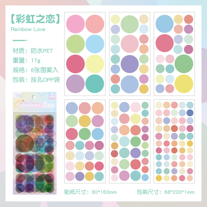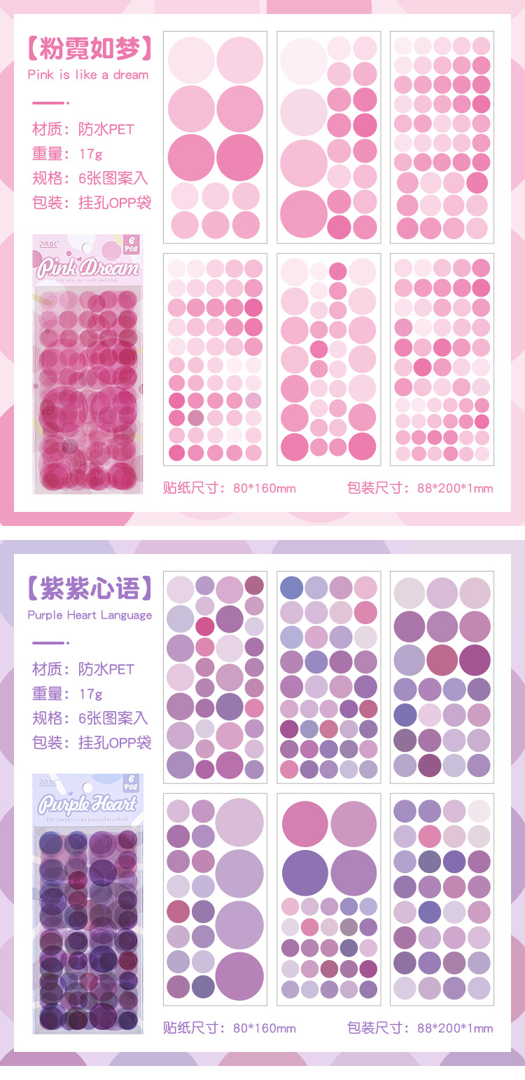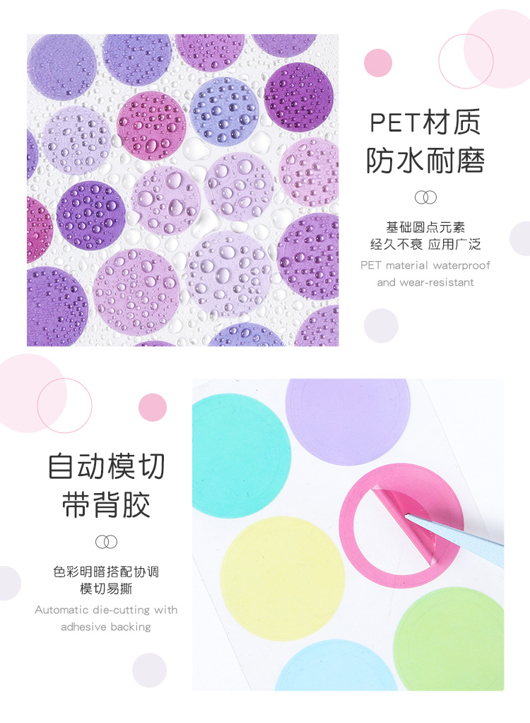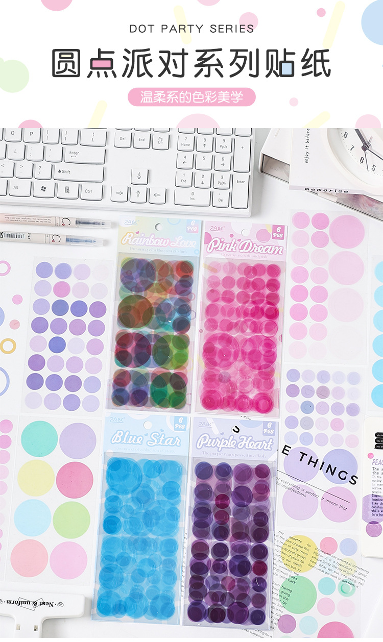 도트 파티 투명 방수 애완 동물 스티커 DIY 손 계정 일기 장식 스티커 그라디언트 작은 원형 씰 스티커