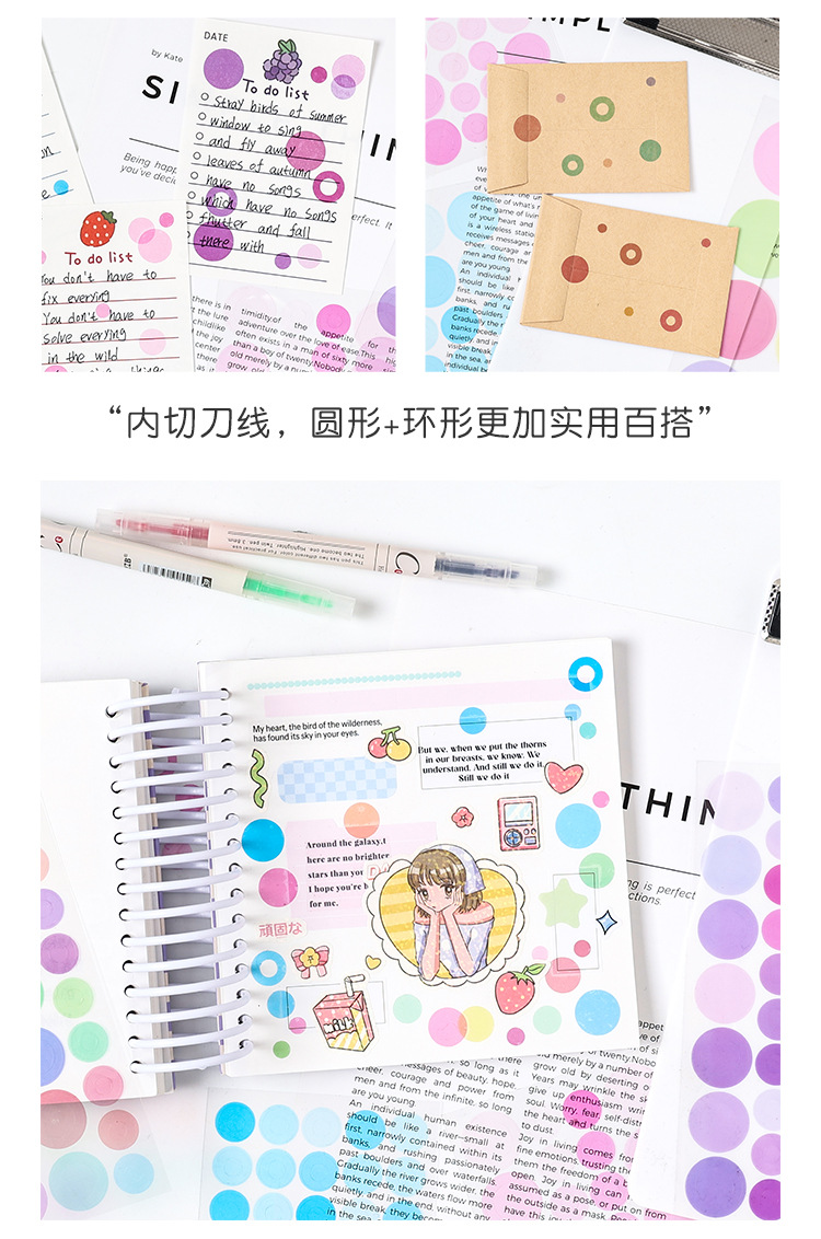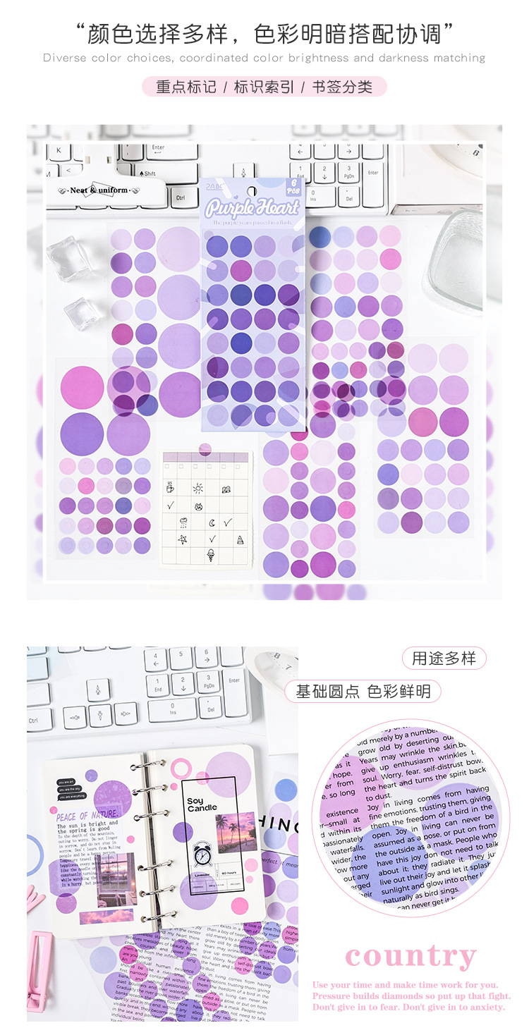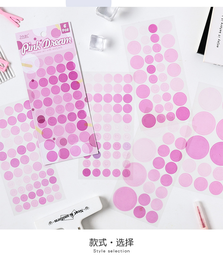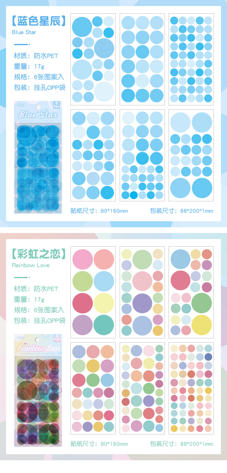 도트 파티 투명 방수 애완 동물 스티커 DIY 손 계정 일기 장식 스티커 그라디언트 작은 원형 씰 스티커