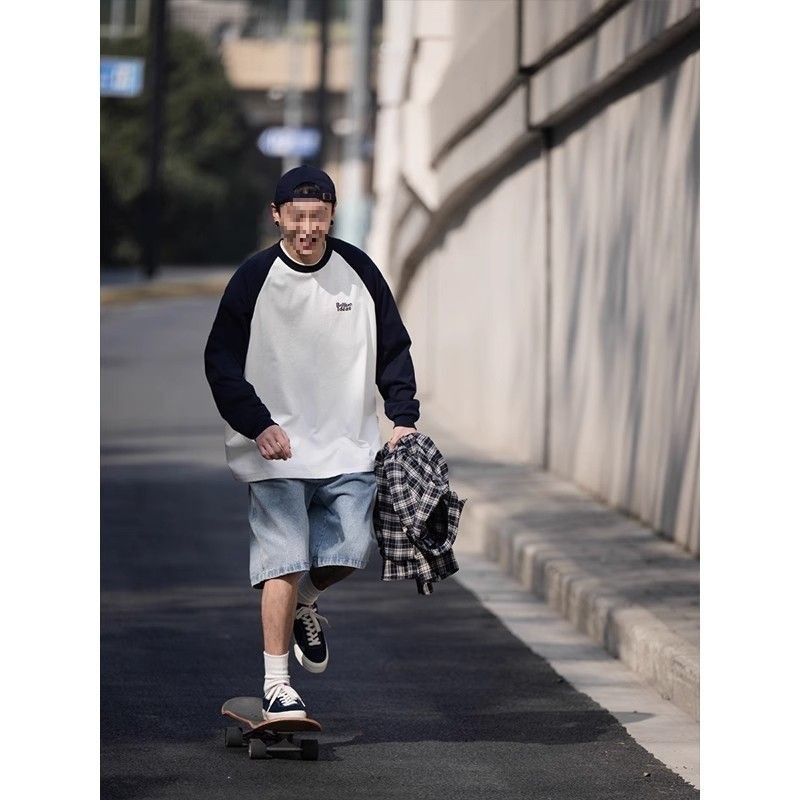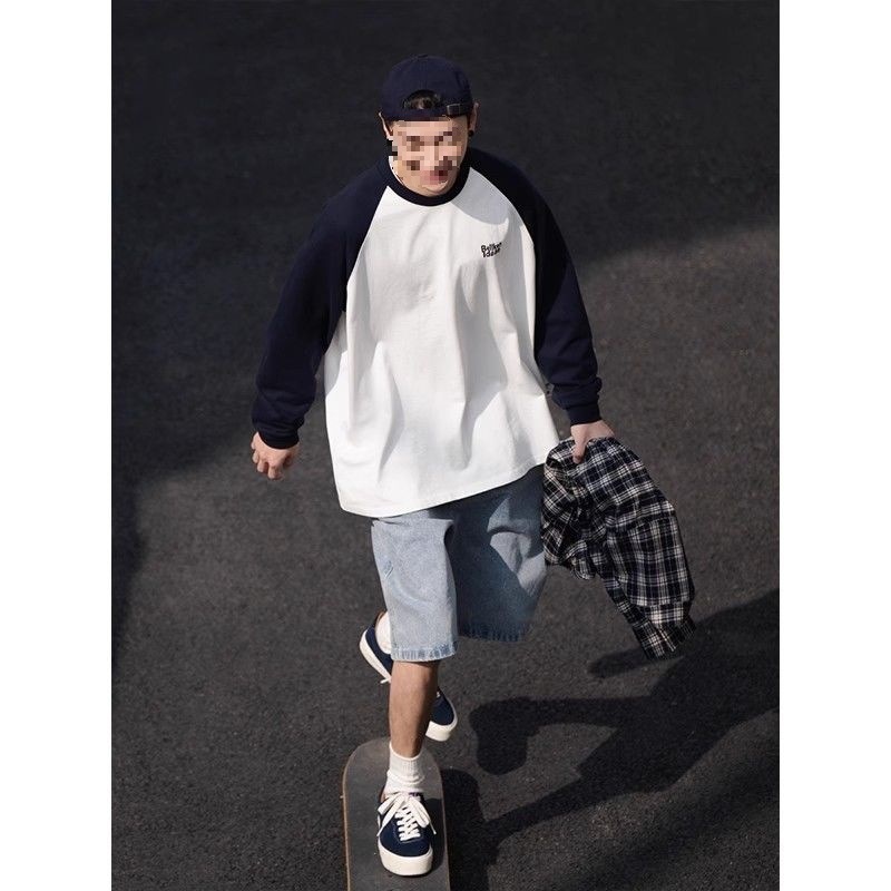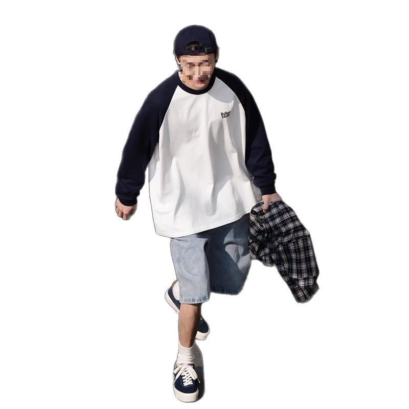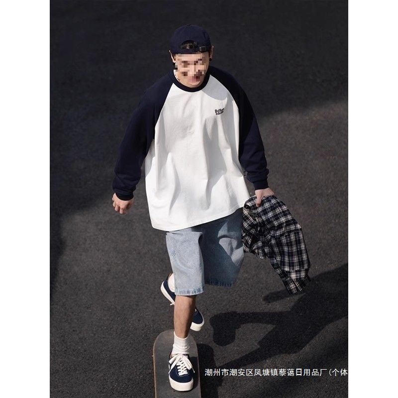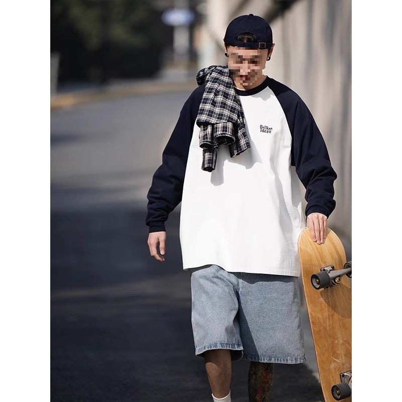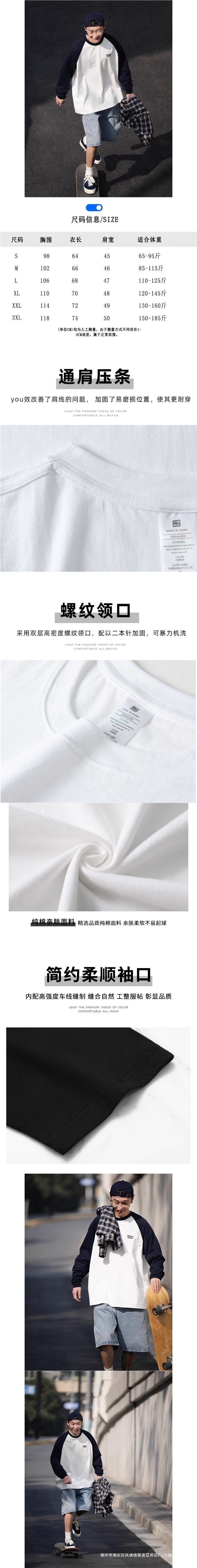 220G 헤비급 아메리칸 긴팔 남아 티셔츠 흑백 스플리싱 루즈한 바닥 캐주얼 트렌디 탑 홍콩 스타일스토어 가기