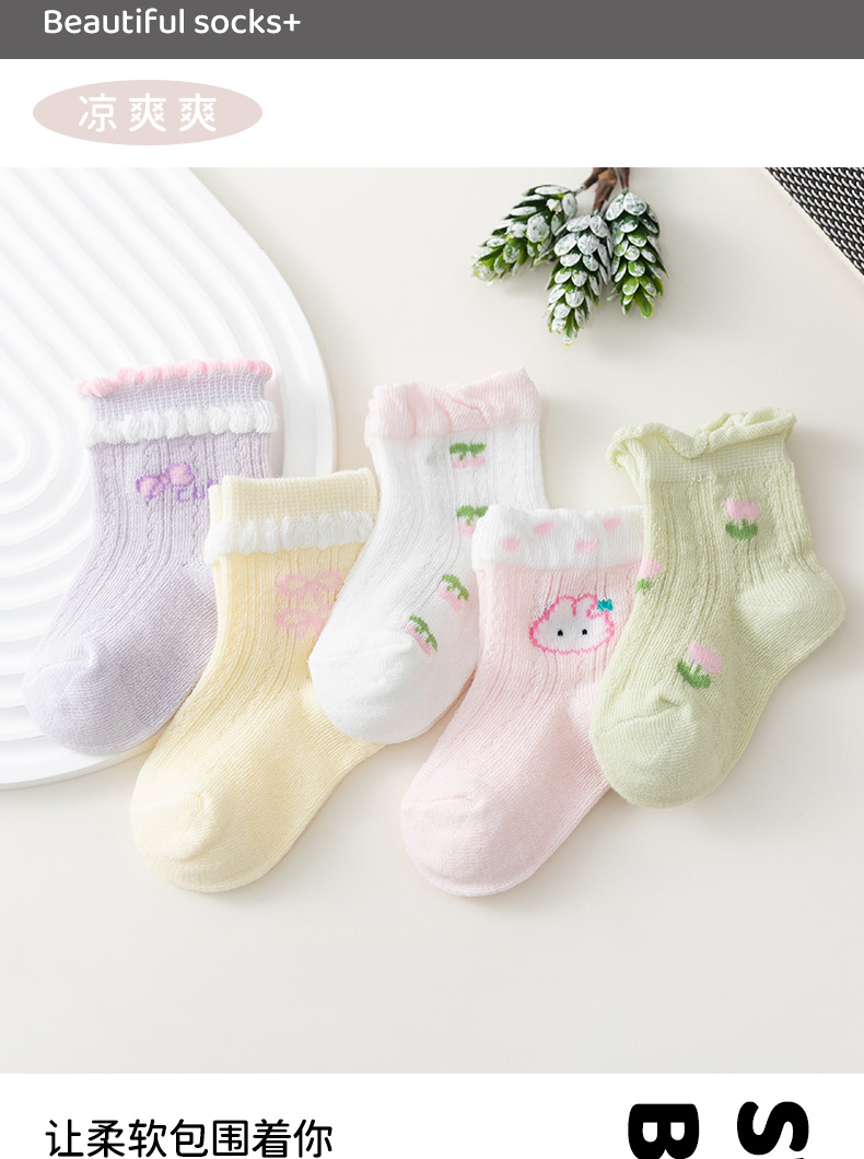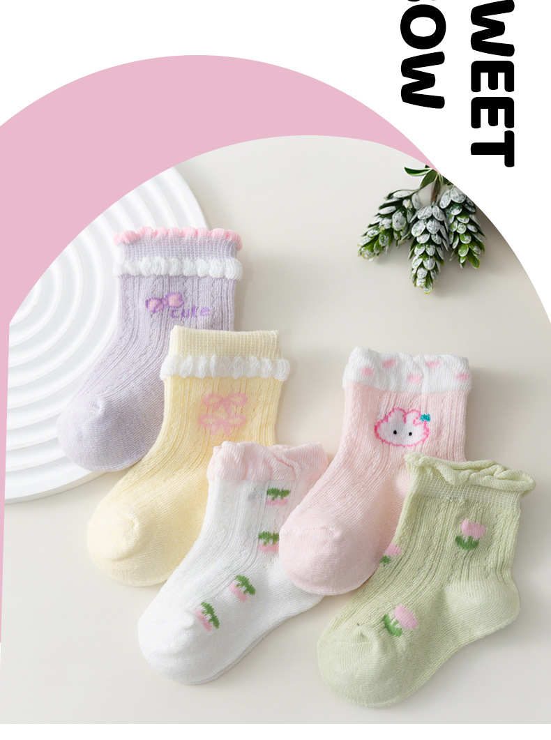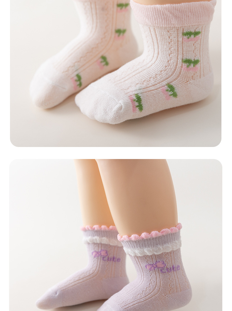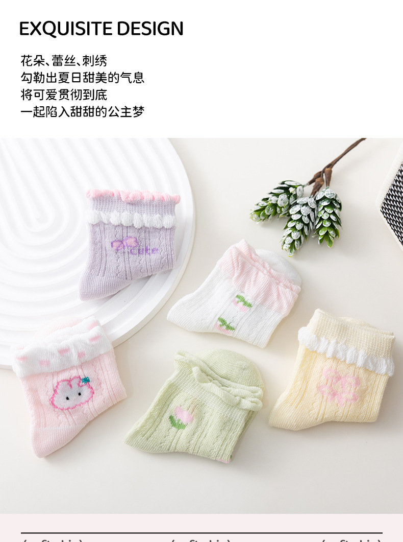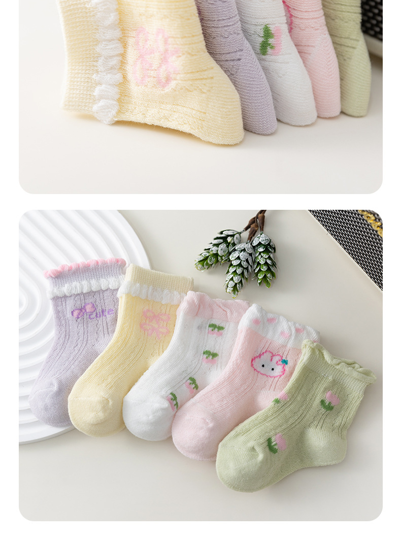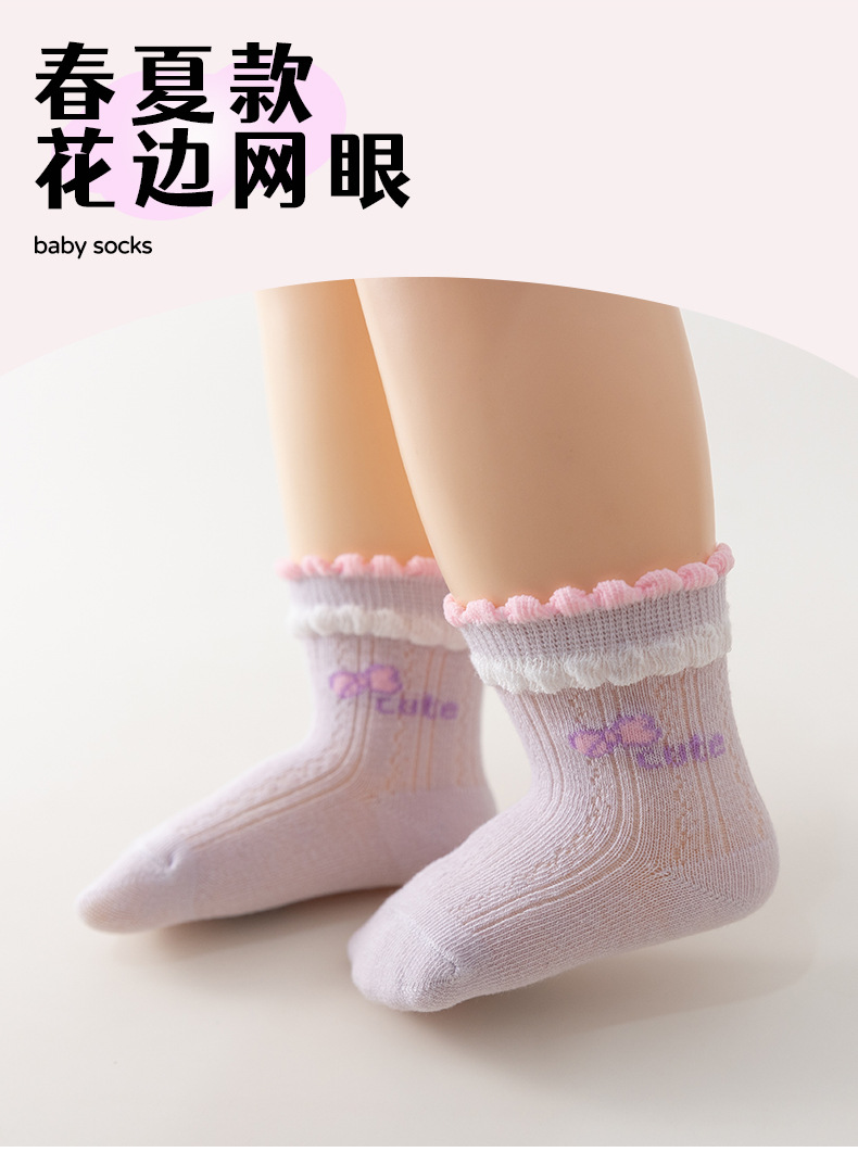 새로운 아기 양말 여름 얇은 메쉬 신생아 양말 빗질 면화 꽃 편안한 소녀와 어린이 양말 공장