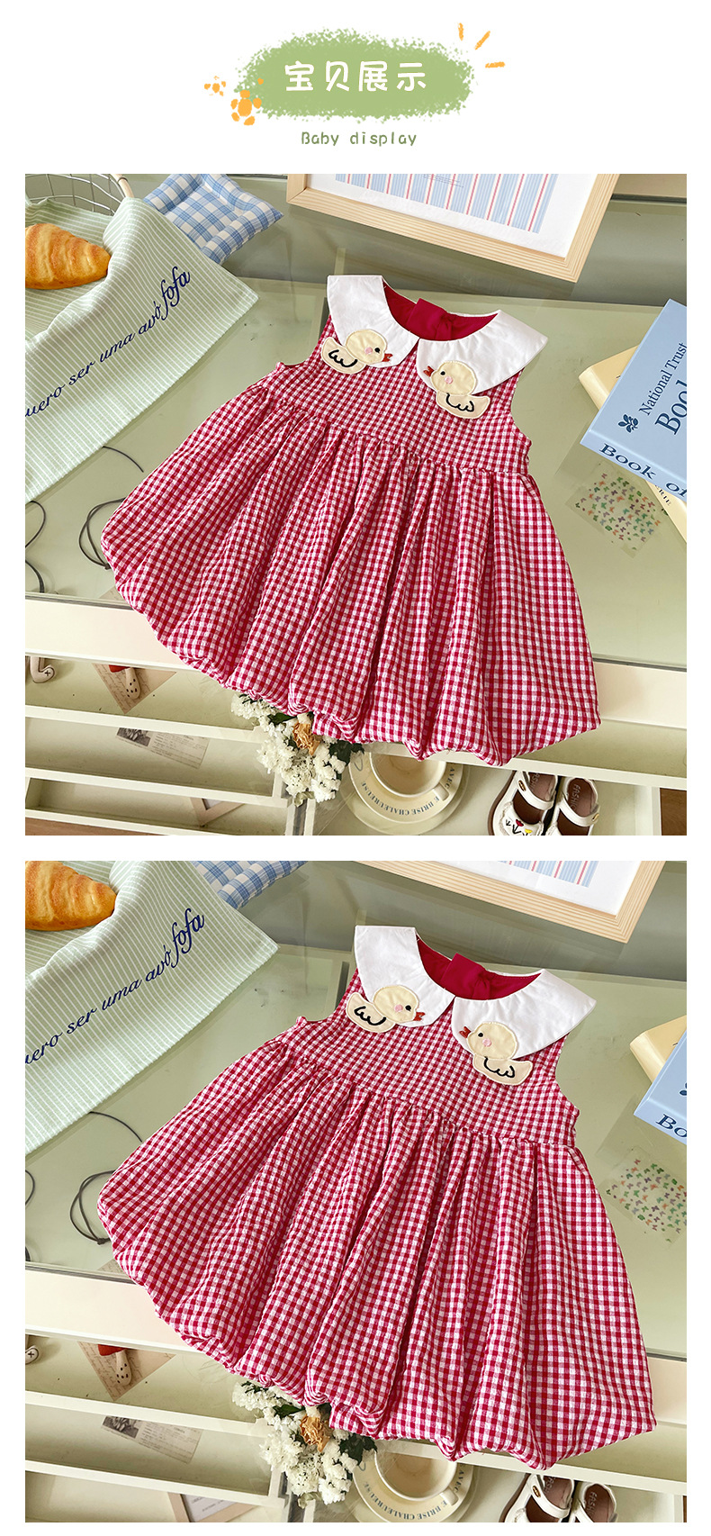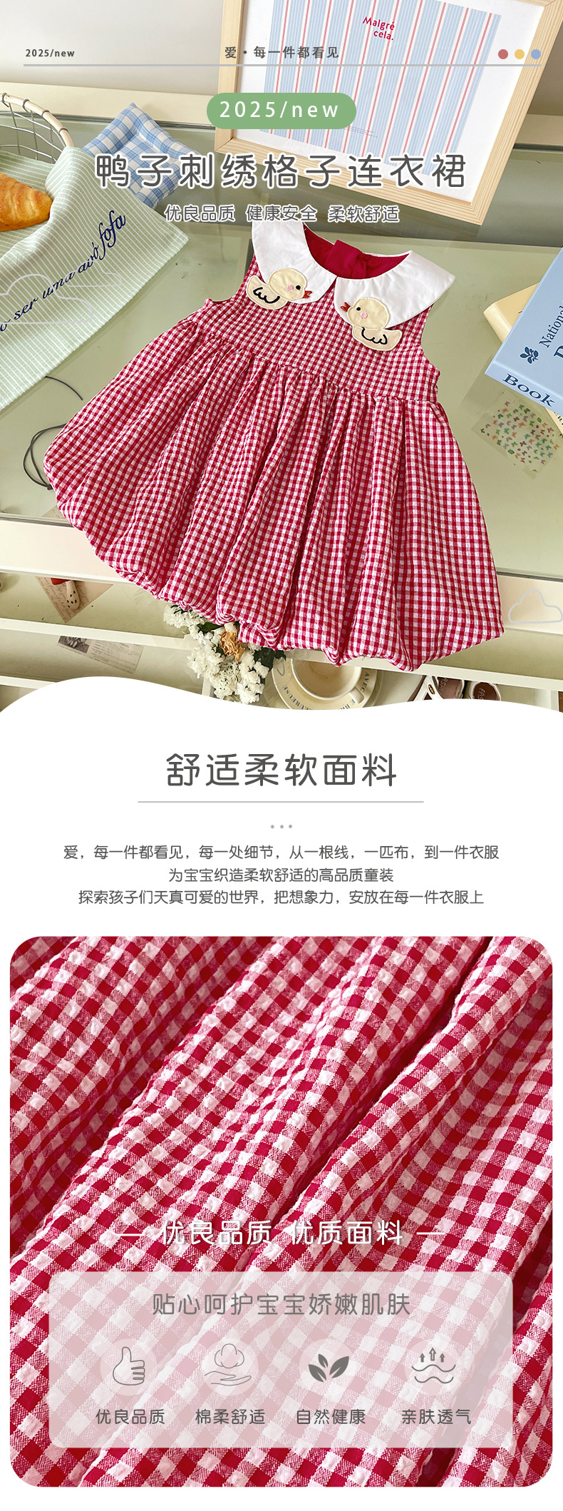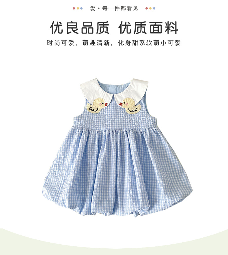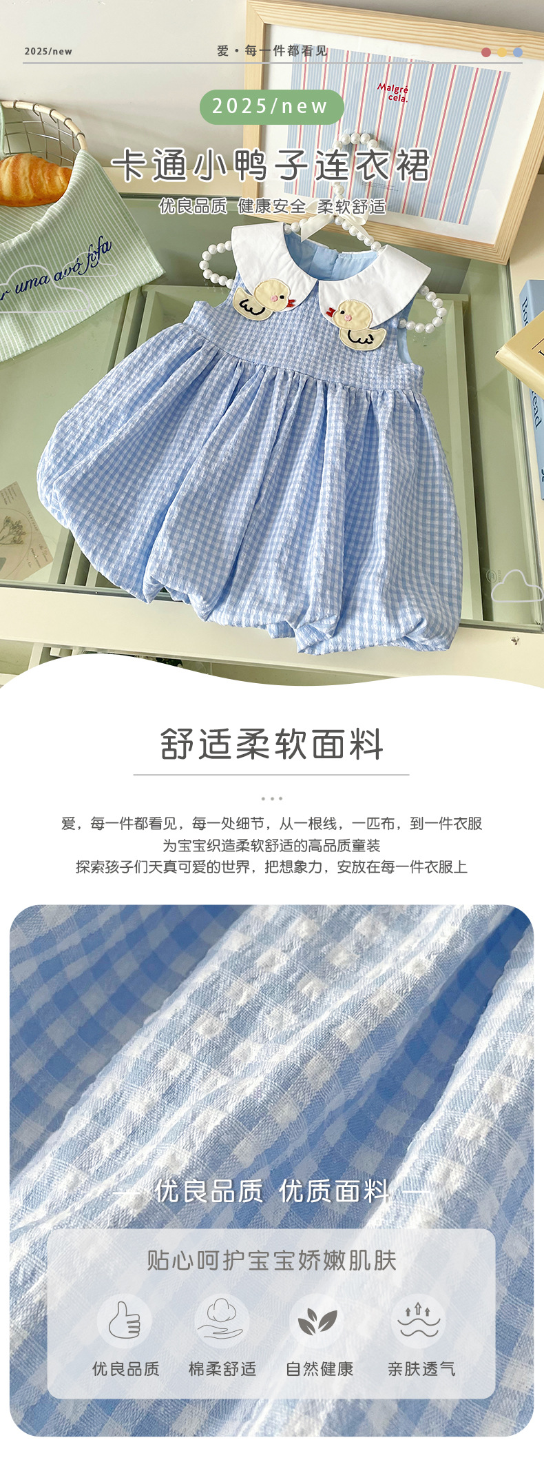 재고 XQ254018 소녀 원피스 2025 여름 새로운 만화 옷깃 무늬 아기 스타일스터 스커트스토어 가기