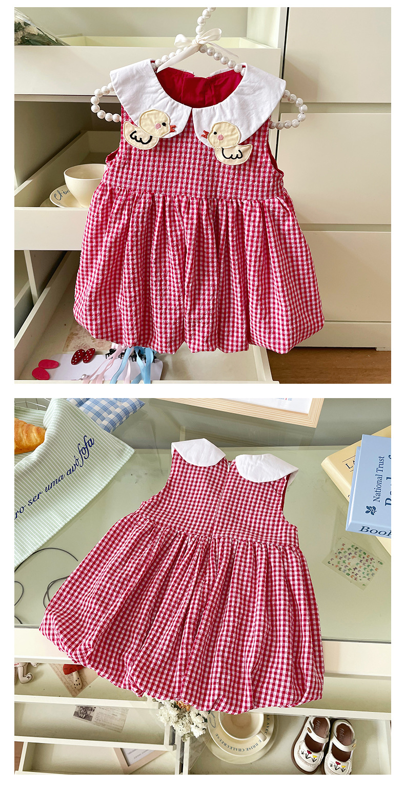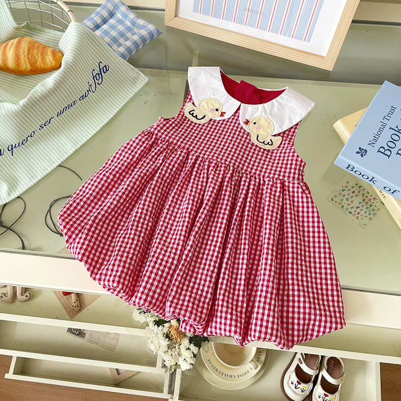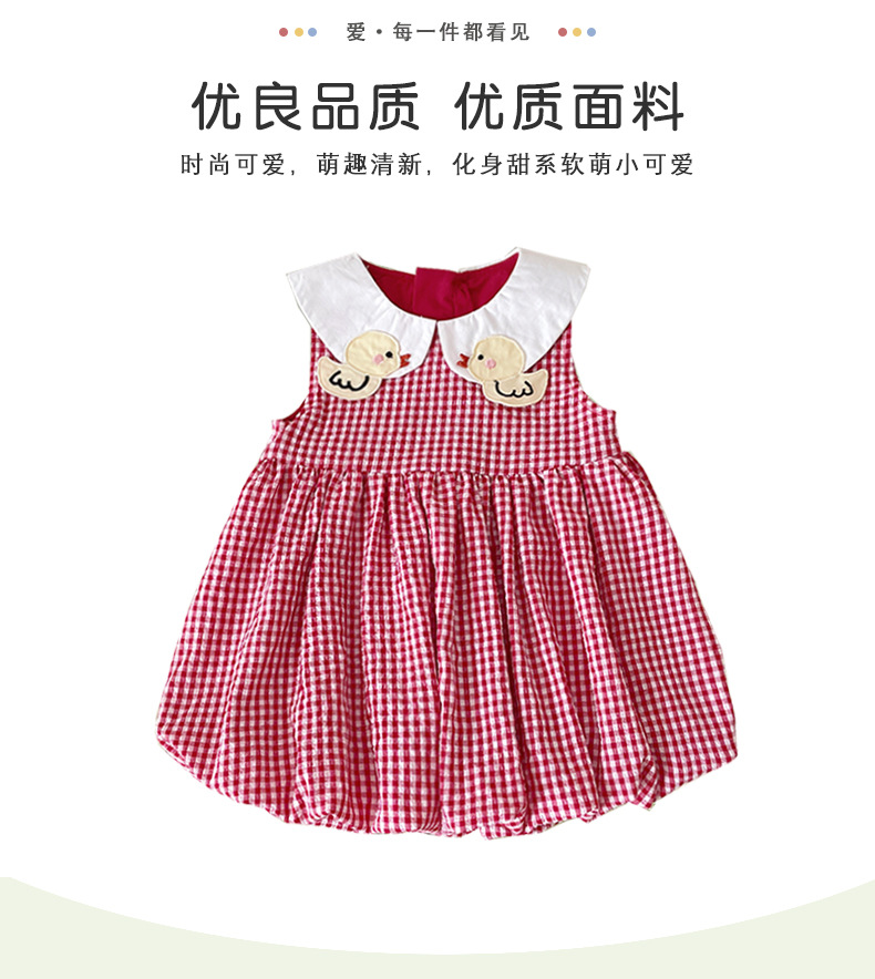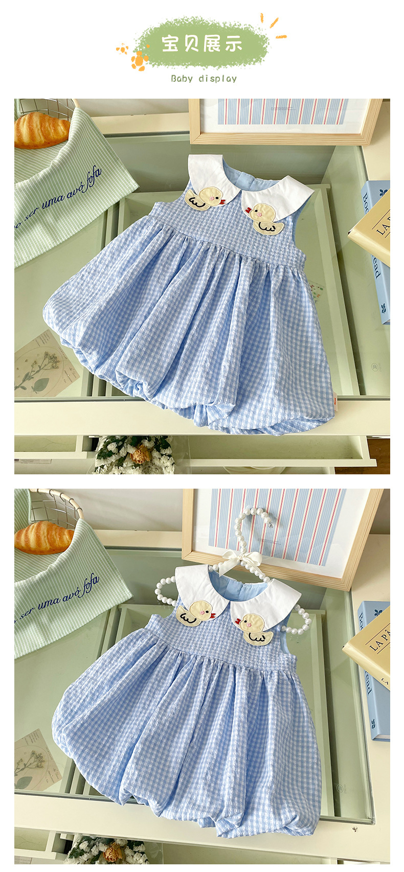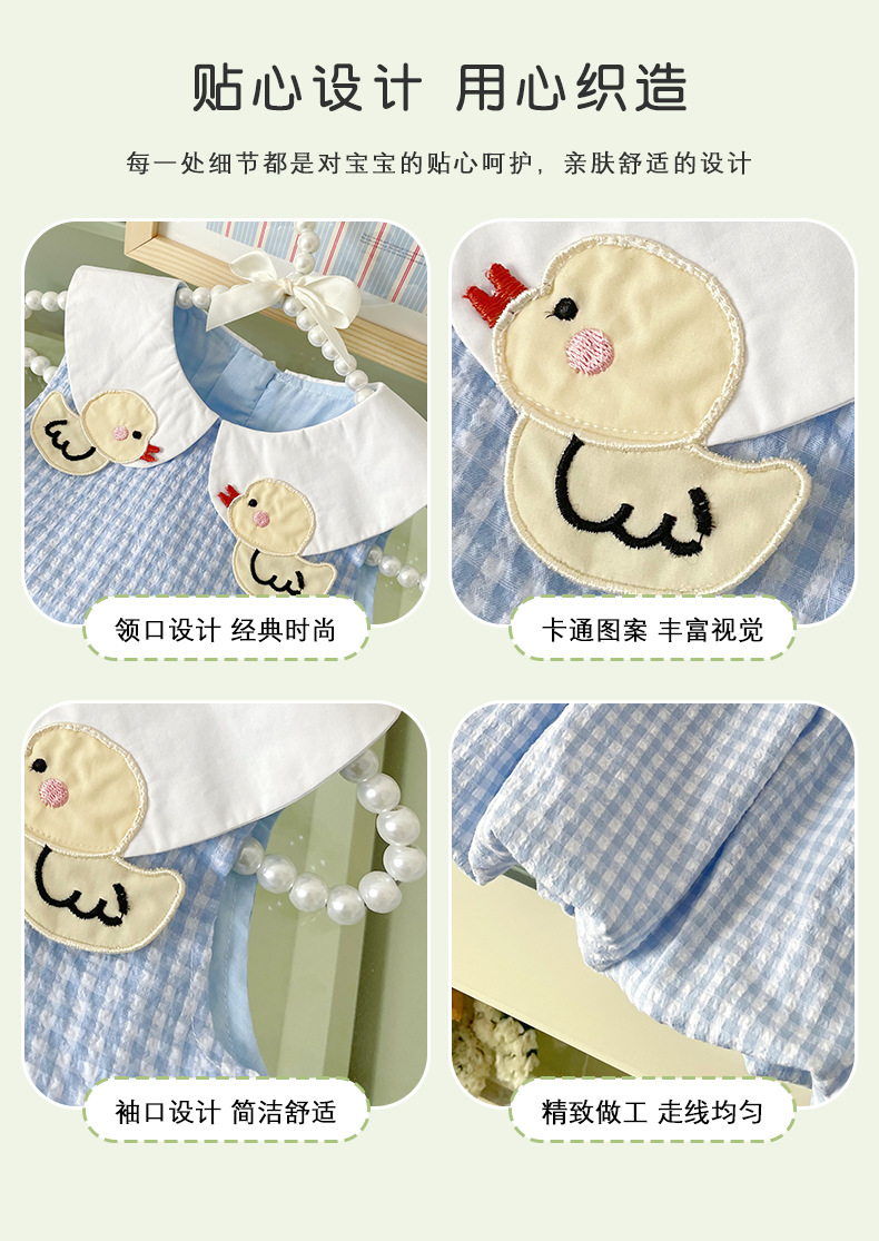 재고 XQ254018 소녀 원피스 2025 여름 새로운 만화 옷깃 무늬 아기 스타일스터 스커트스토어 가기