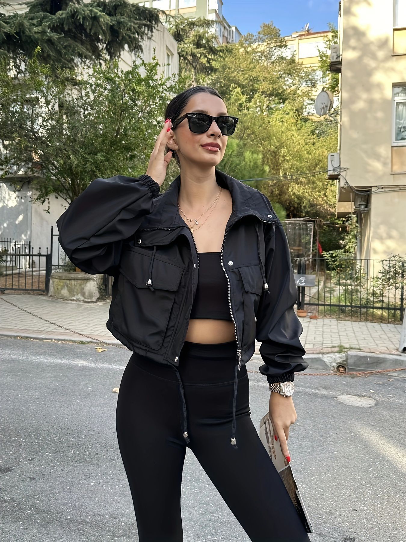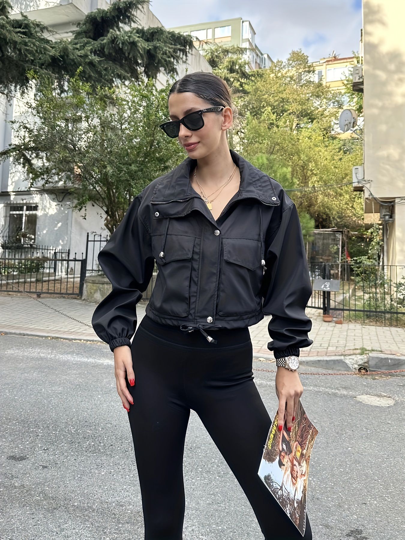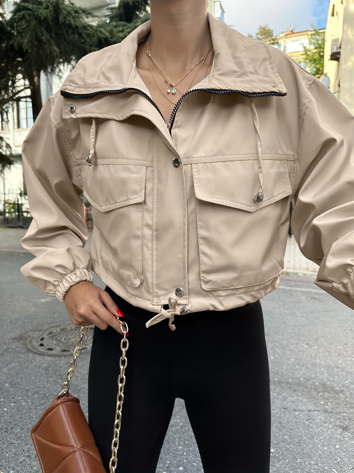 유럽과 미국의 아마존 라펠 짧은 재킷 여성 2025 봄, 가을 새로운 스타일 세련된 미국 작업 재킷 크로스보더스토어 가기