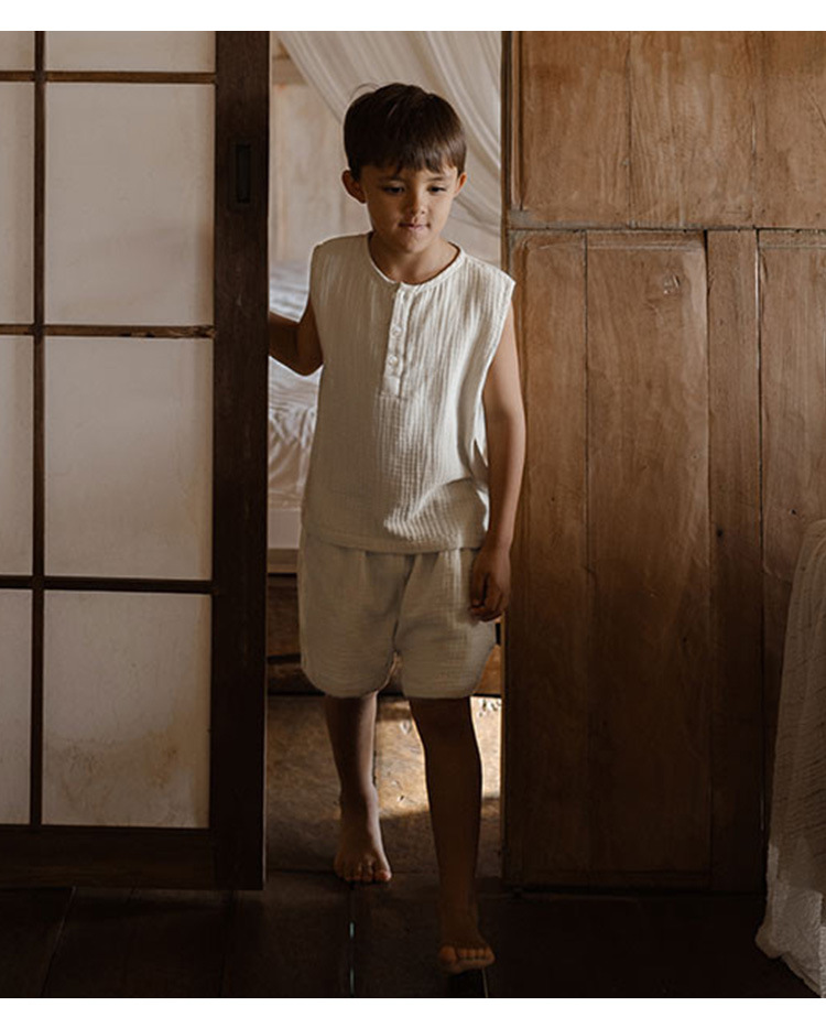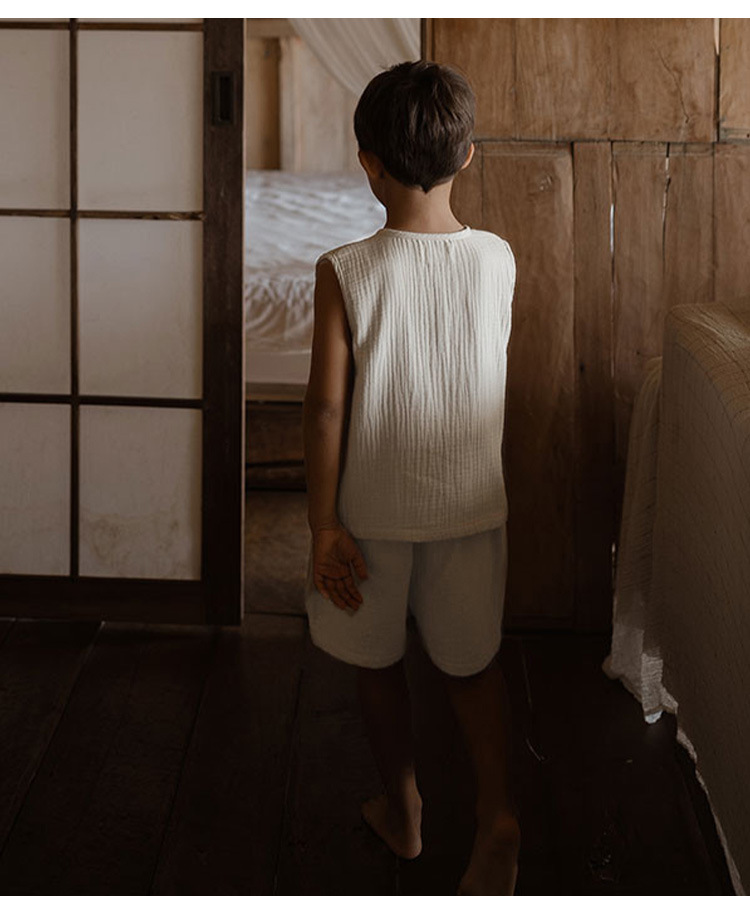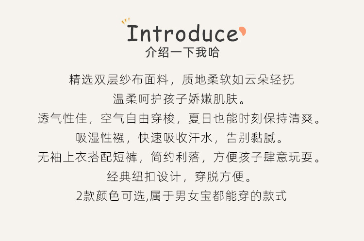 민소매 조끼 통기성 코튼 원사 세트 아기 소년과 소녀를위한 여름 편안한 라운드 넥 탑 느슨한 허리 캐주얼 반바지스토어 가기