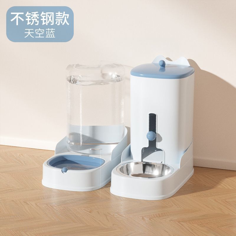 • 먹이와 물을 동시에 먹일 수 있는 업그레이드된 [하늘색] 스테인리스 그릇