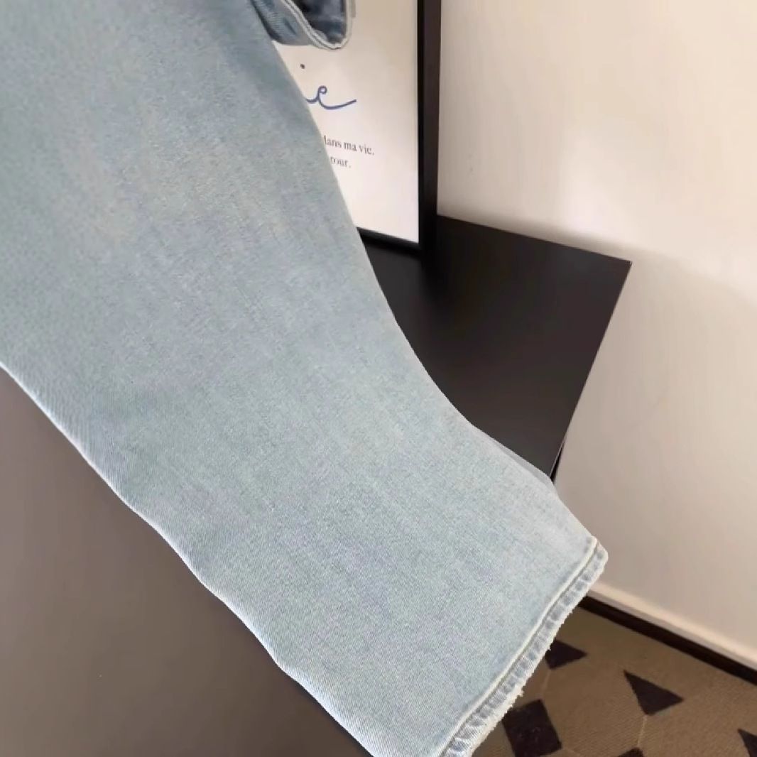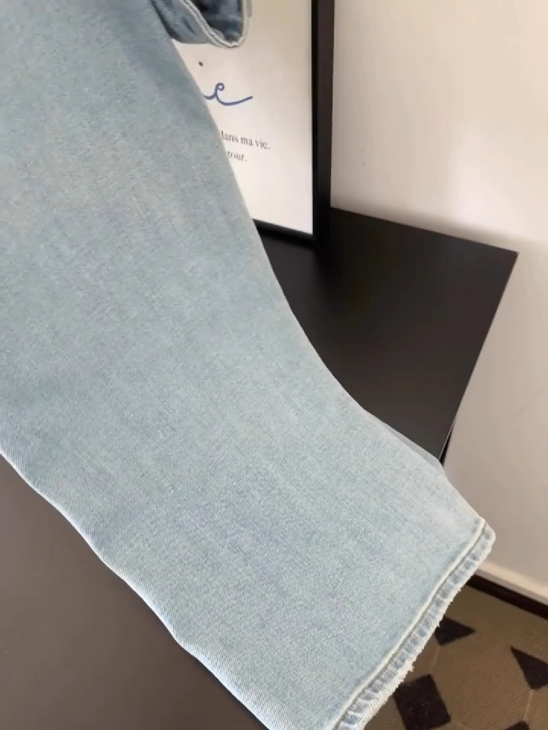 버전이 좋습니다! 레이스 스티칭 포켓 스트레이트 청바지 여성용 봄 높은 허리 슬리밍 캐주얼 올 매치 와이드 레그 팬츠스토어 가기