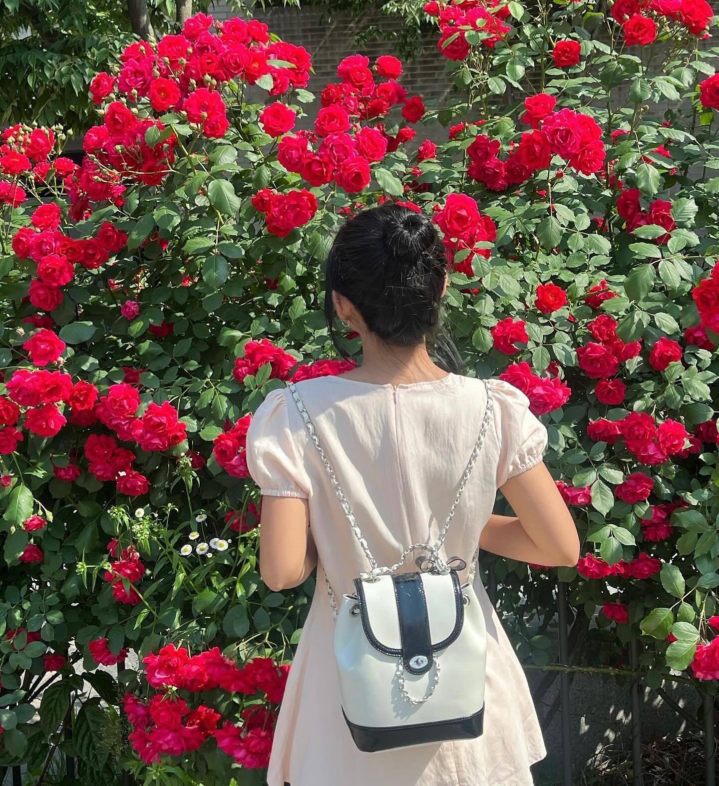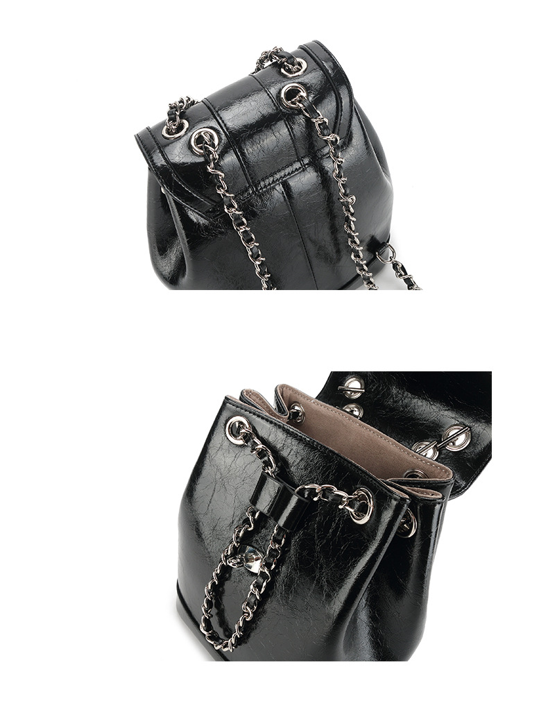 한국 인스 니치 카디널 레드 백 리얼 소가죽 하이엔드 체인 조건 가볍고 작은 향기로운 스타일 백팩