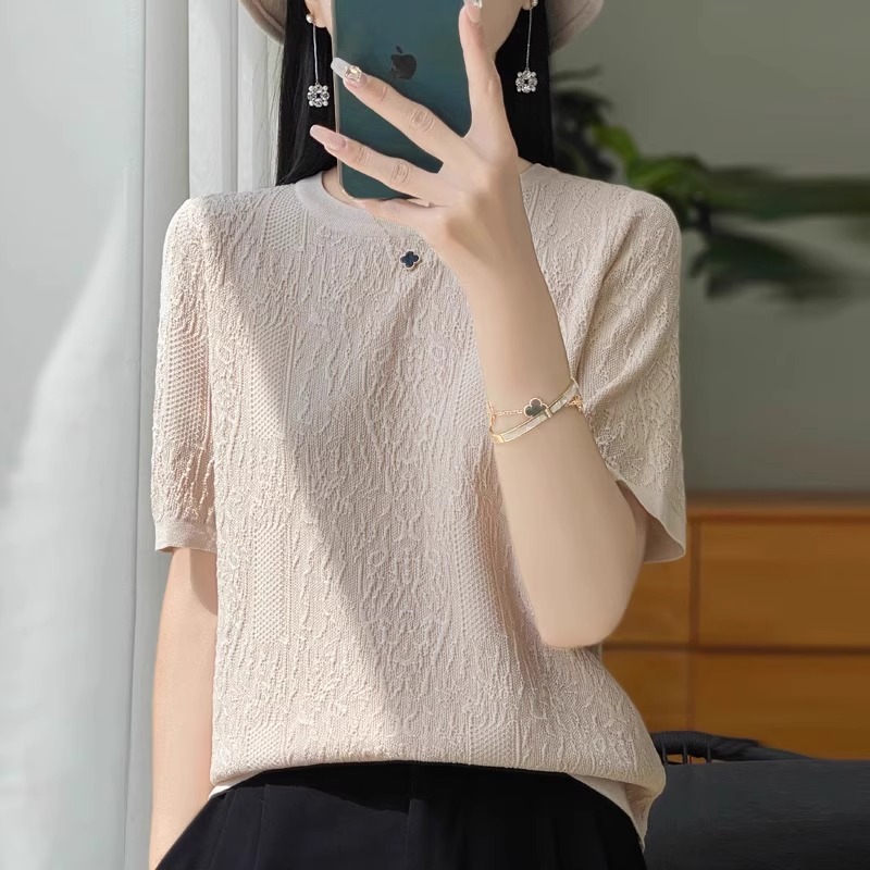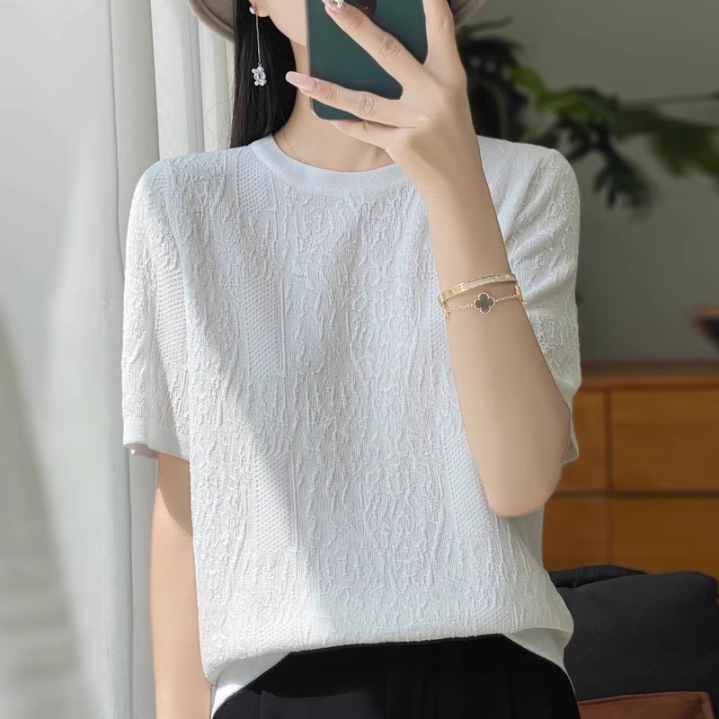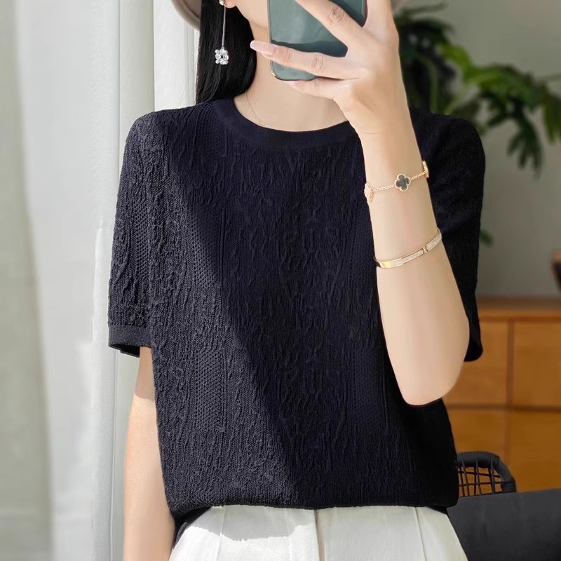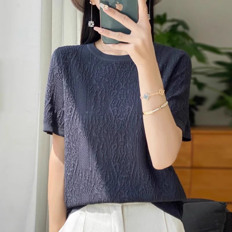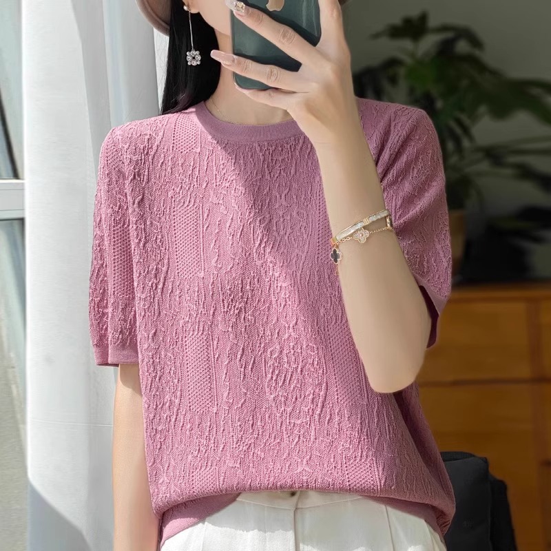 반팔 티셔츠 여성 2025 년 여름 새로운 패션 디자인 감각 느슨한 플러스 사이즈 여성 얇은 스웨터 탑 트렌디스토어 가기