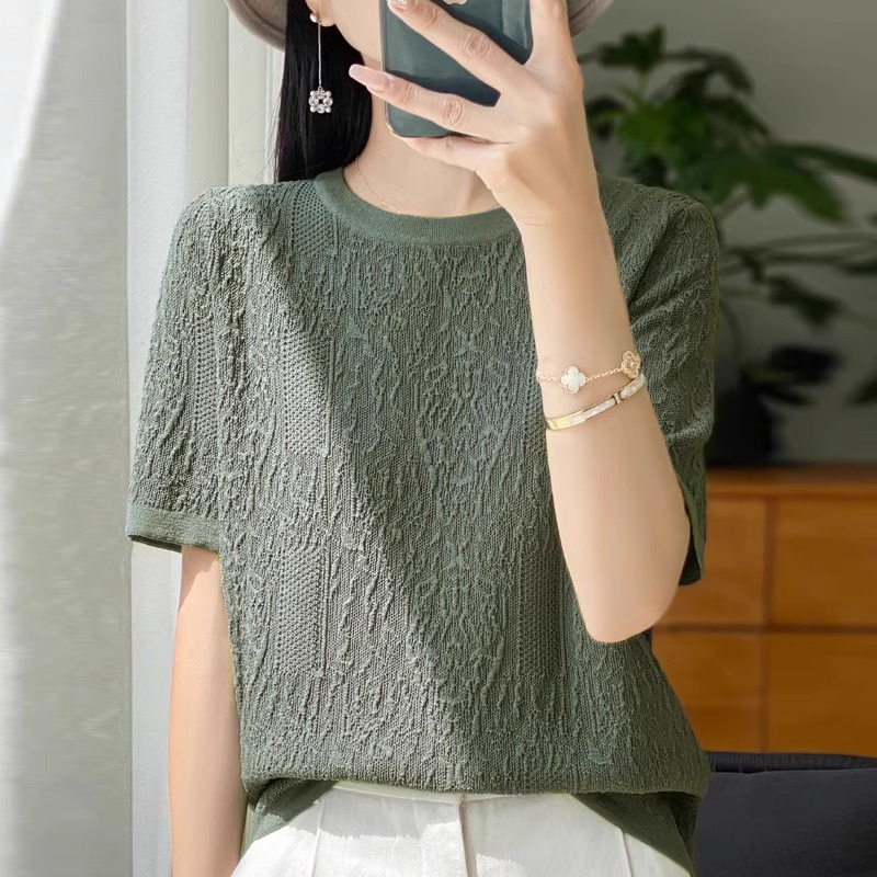 반팔 티셔츠 여성 2025 년 여름 새로운 패션 디자인 감각 느슨한 플러스 사이즈 여성 얇은 스웨터 탑 트렌디