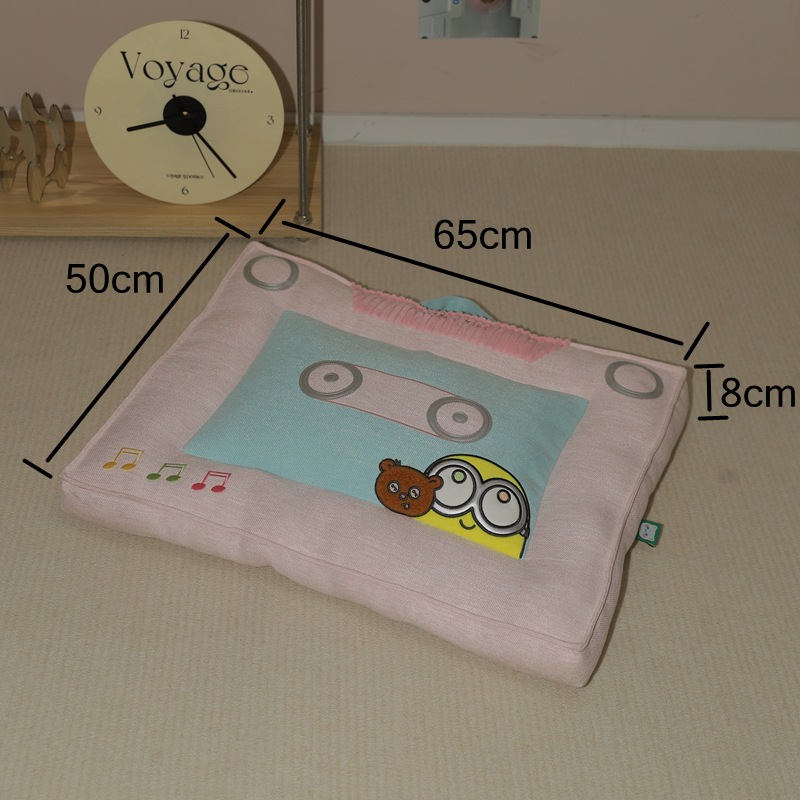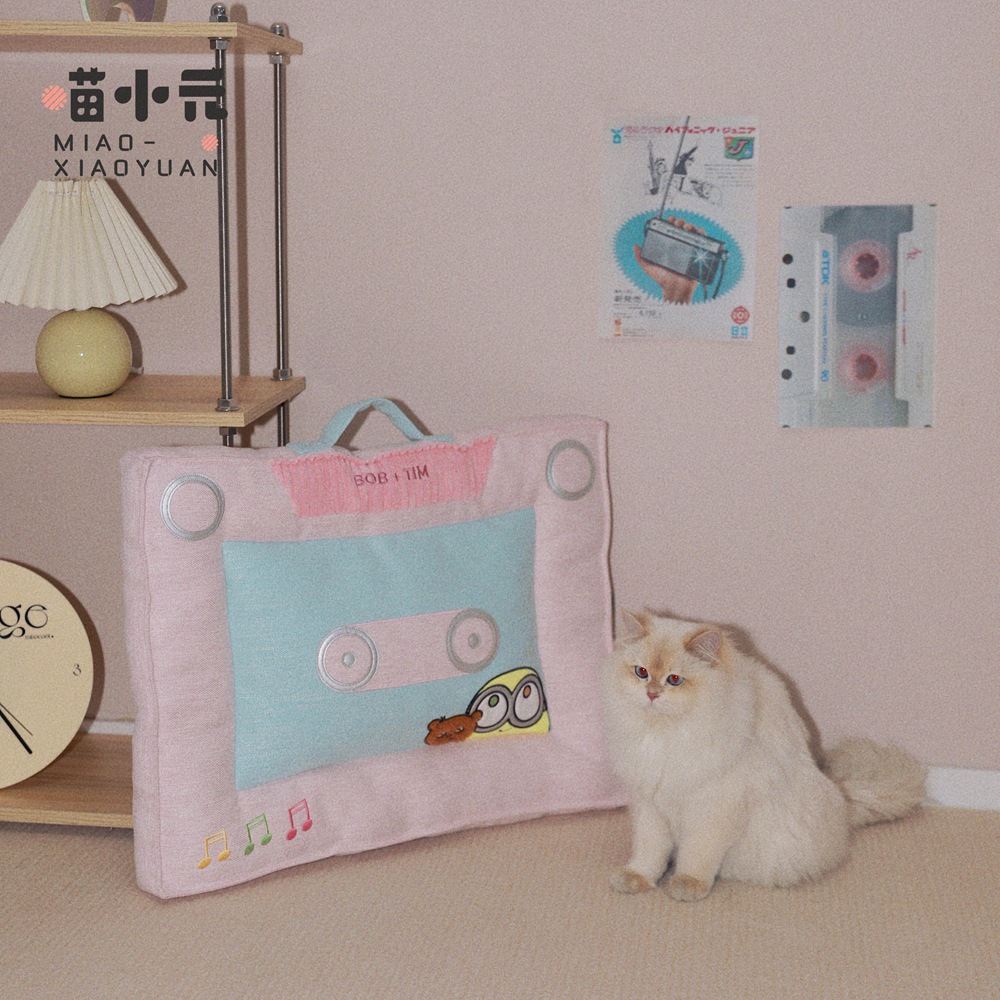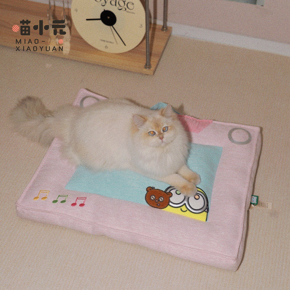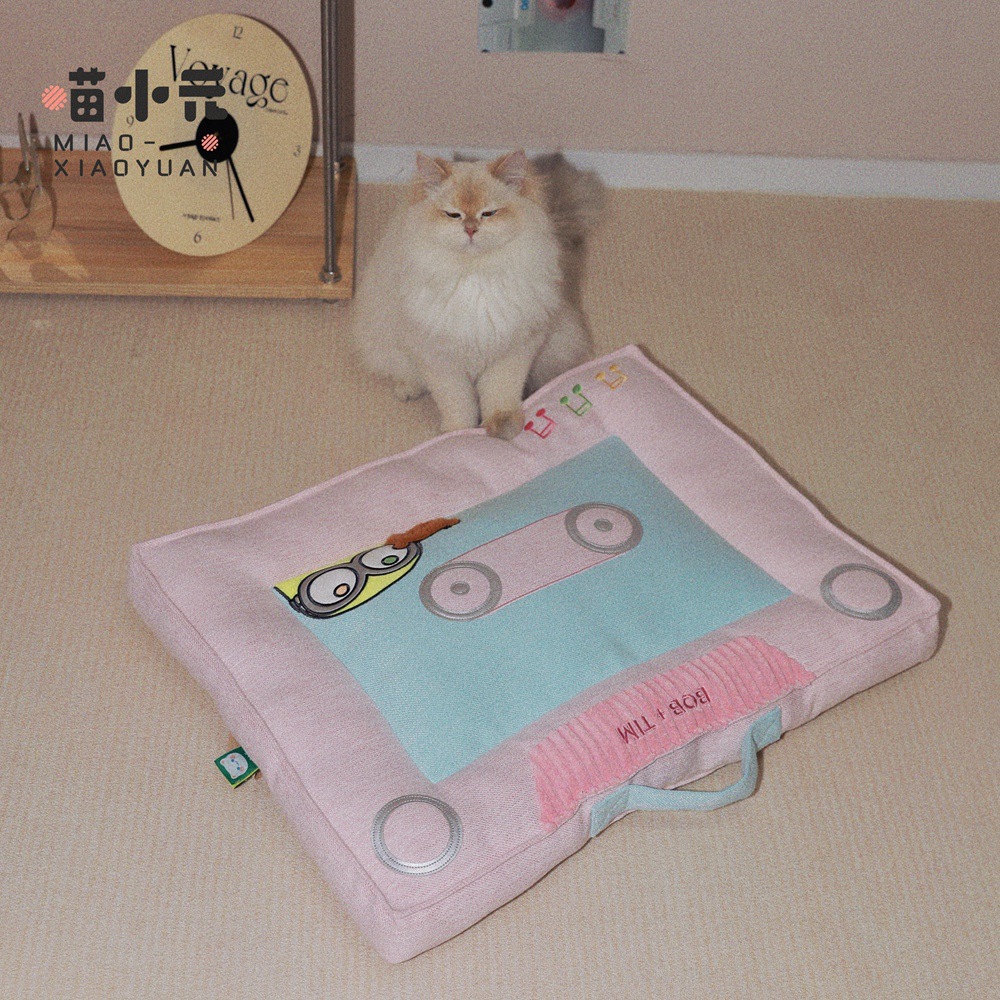 야옹샤오위안 | 미니언즈 공동 브랜드 복고풍 테이프 쿠션 고양이 둥지 사계절 수면 고양이 매트 작은 개