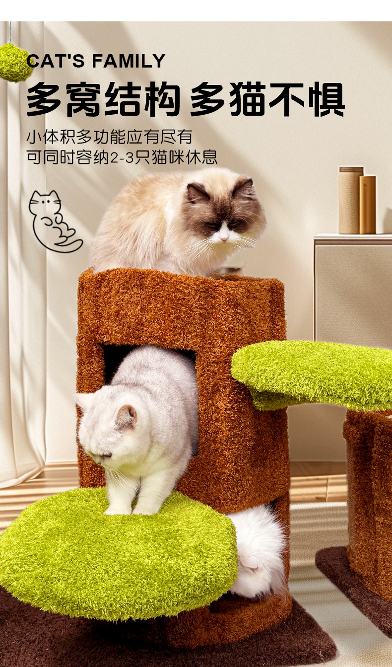 • 단층 나무 위의 집 고양이 등반 프레임