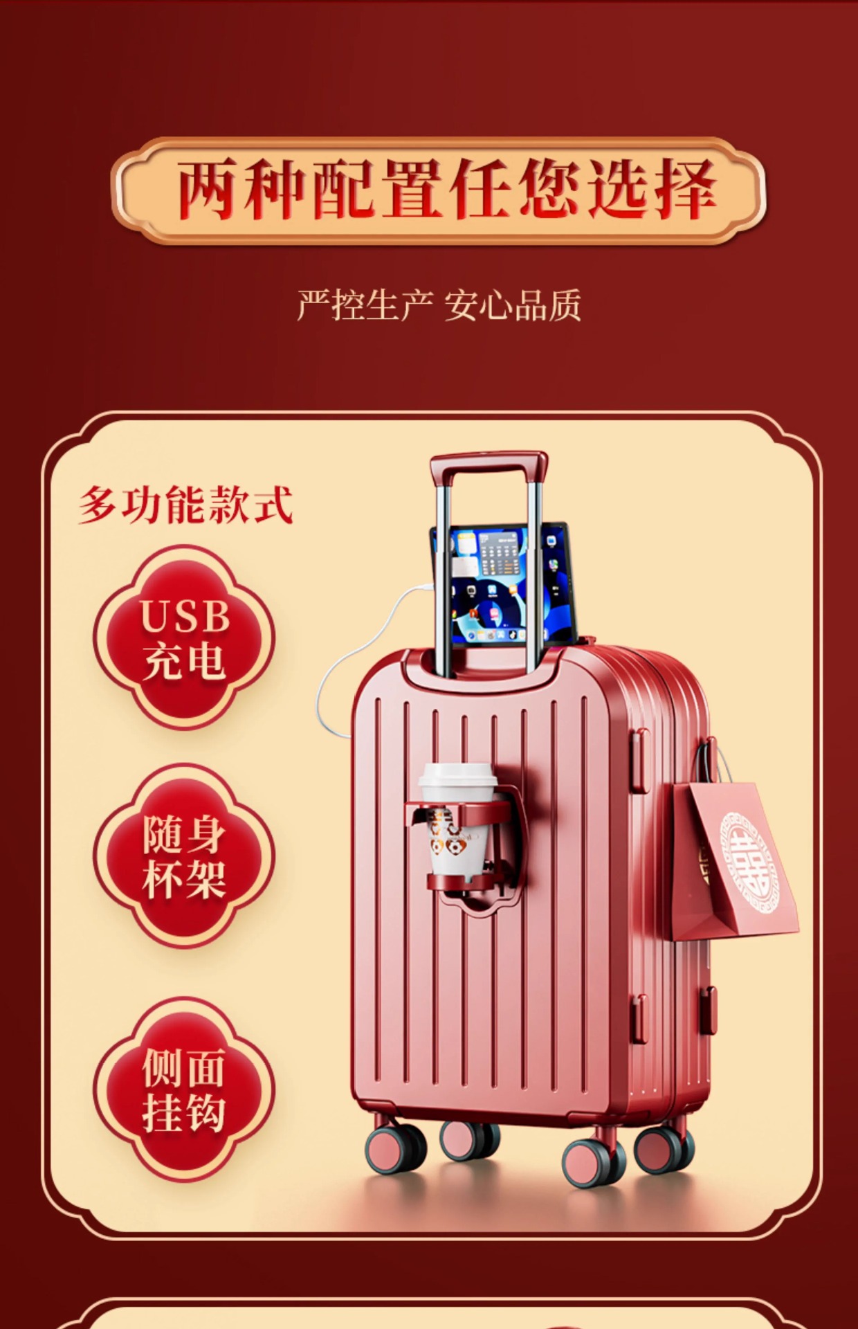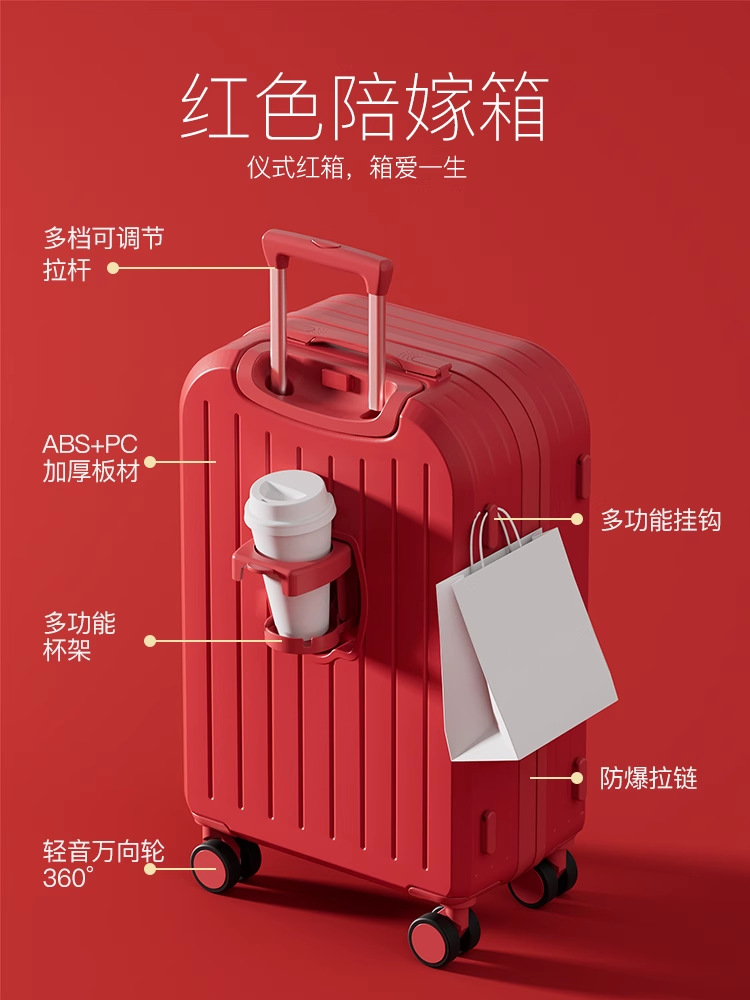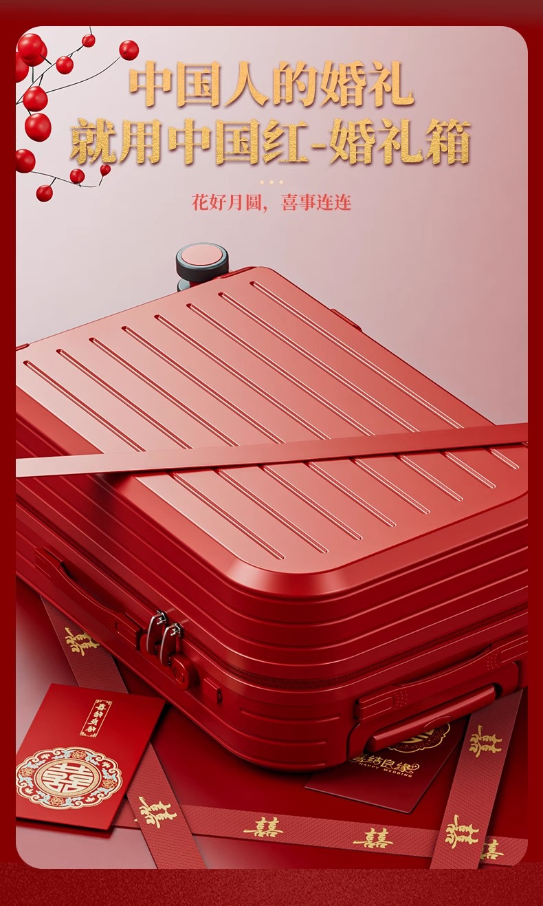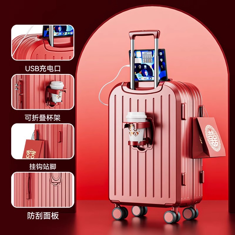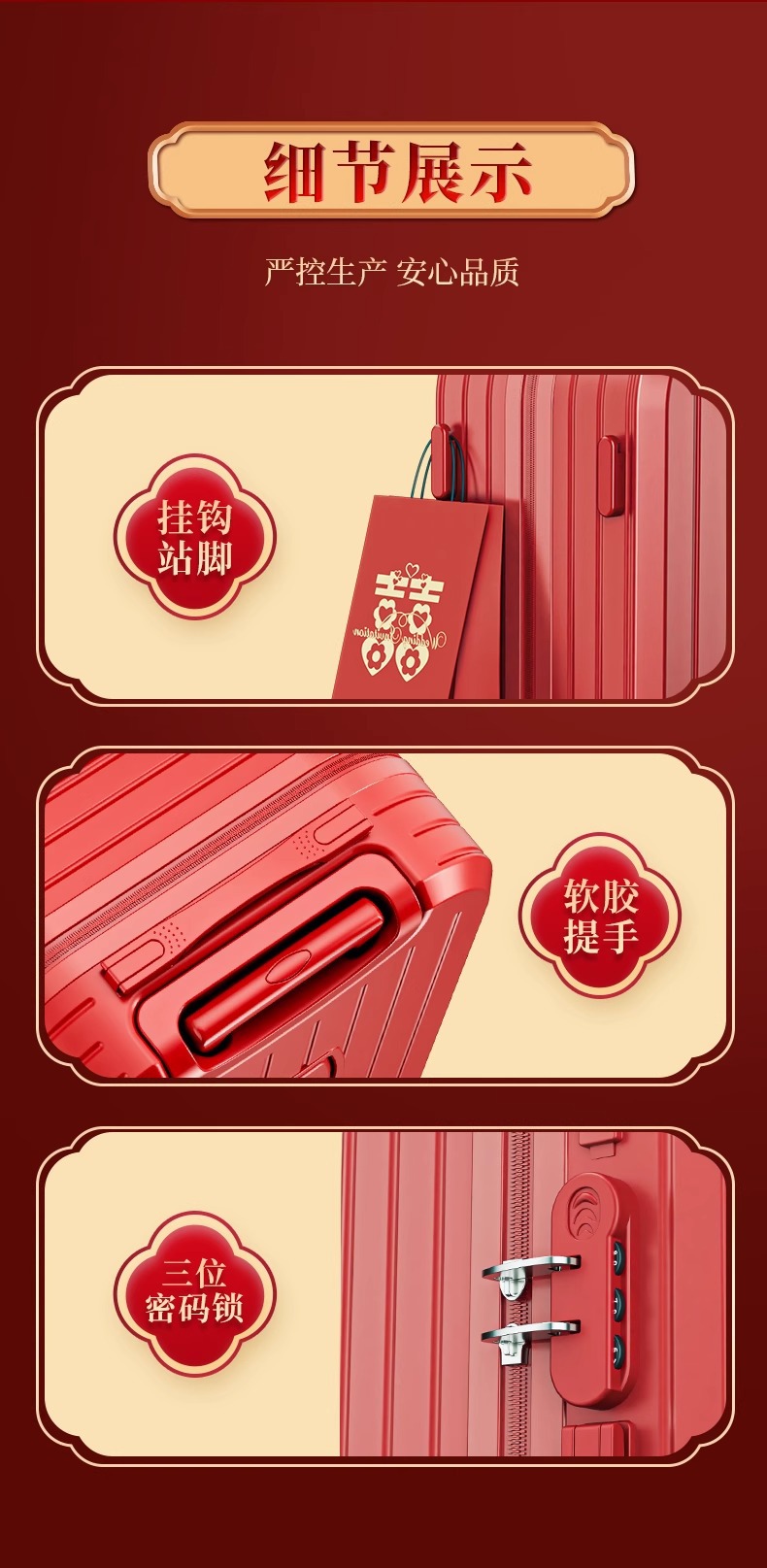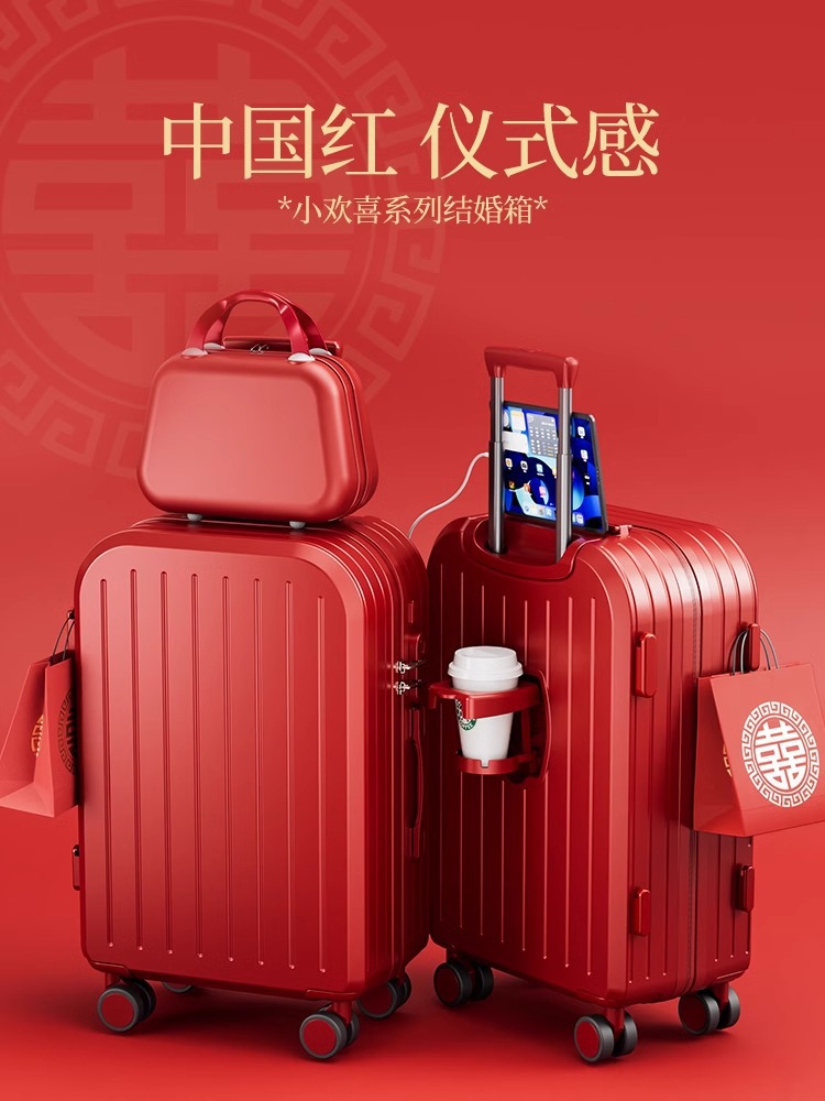 레드 가죽 케이스 신부 트롤리 케이스 여성의 웨딩 비밀번호 상자 대용량스토어 가기