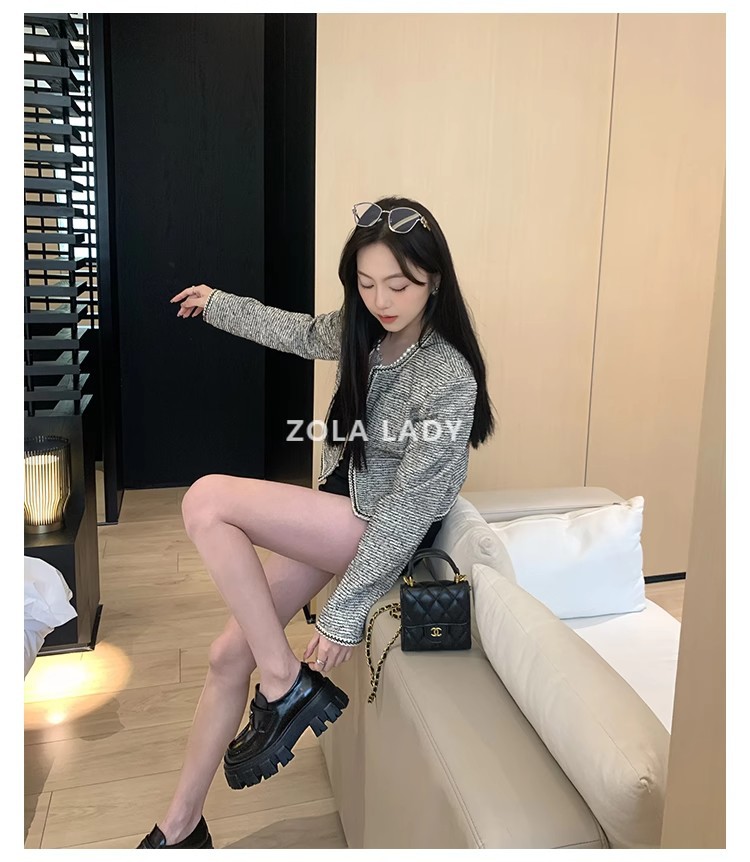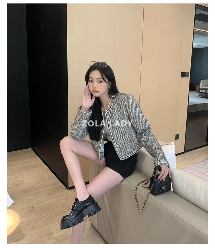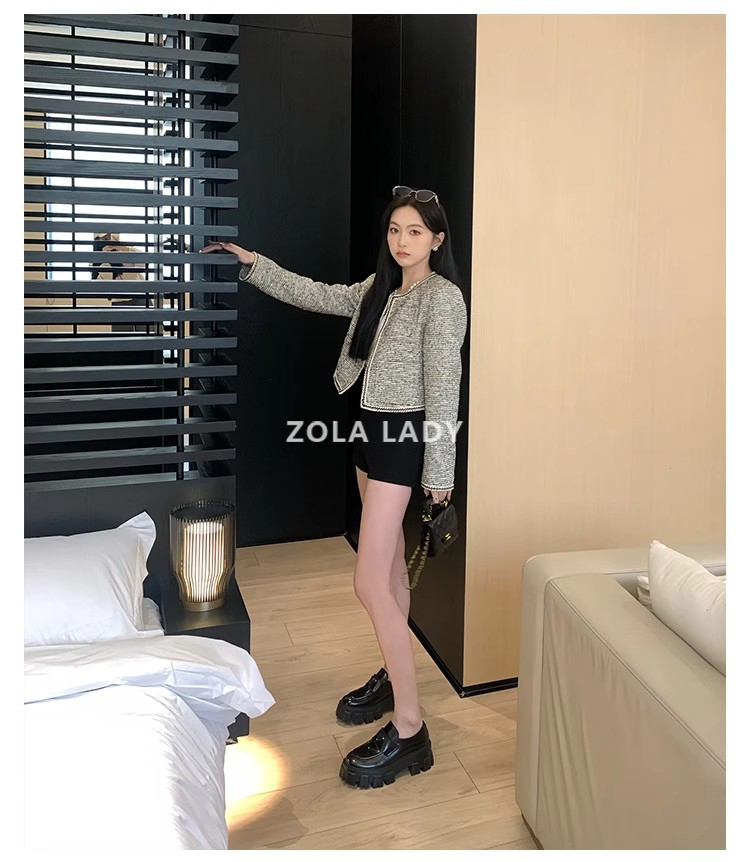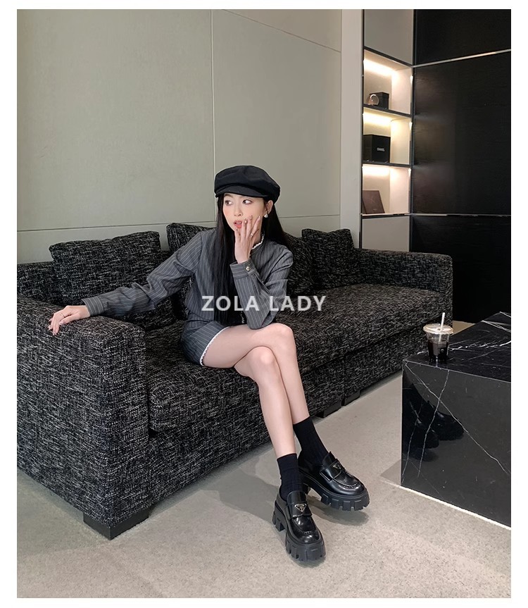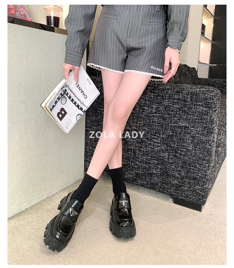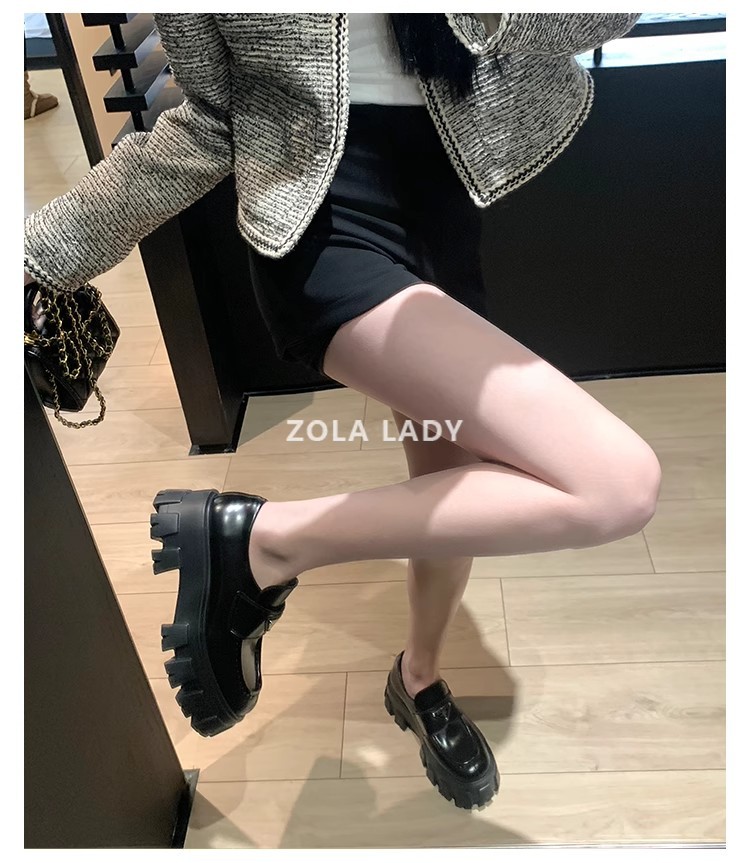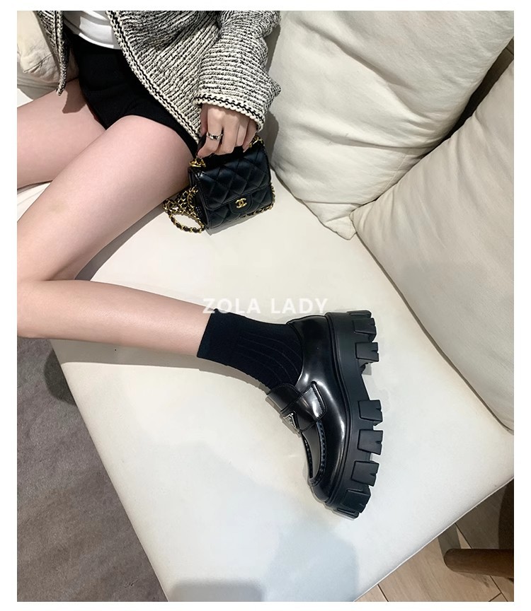 [업그레이드 버전] P 패밀리 트라이앵글 표준 Cowhide 라운드 헤드 두꺼운 힐 두꺼운 바닥 로퍼 여성 블랙 작은 가죽 신발 싱글 신발스토어 가기