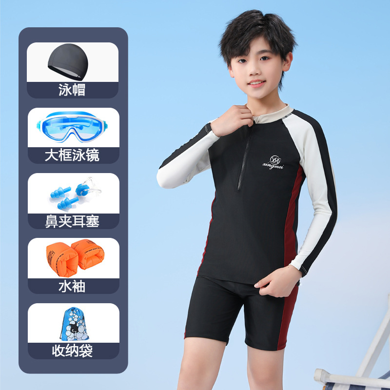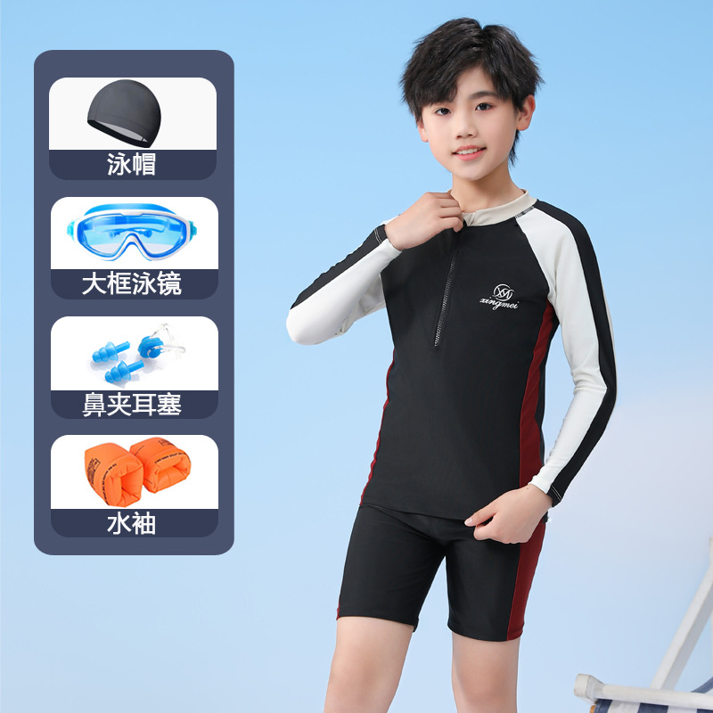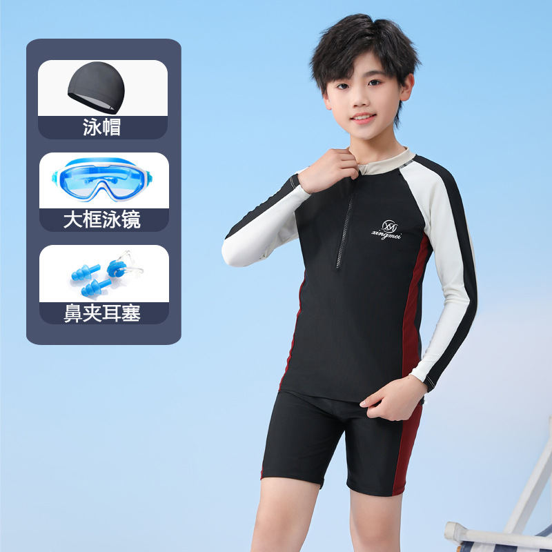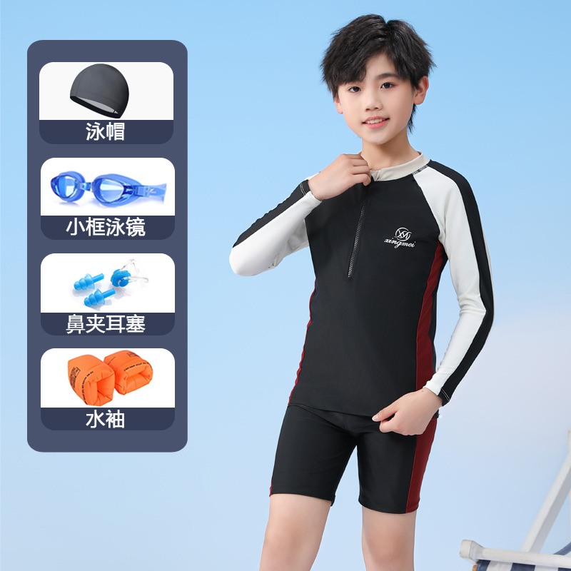 남아용 긴팔 수영복, 아동용 남아용 중대형 아동용 2024 수영 트렁크, 속건성 새로운 특수 수영복 세트스토어 가기