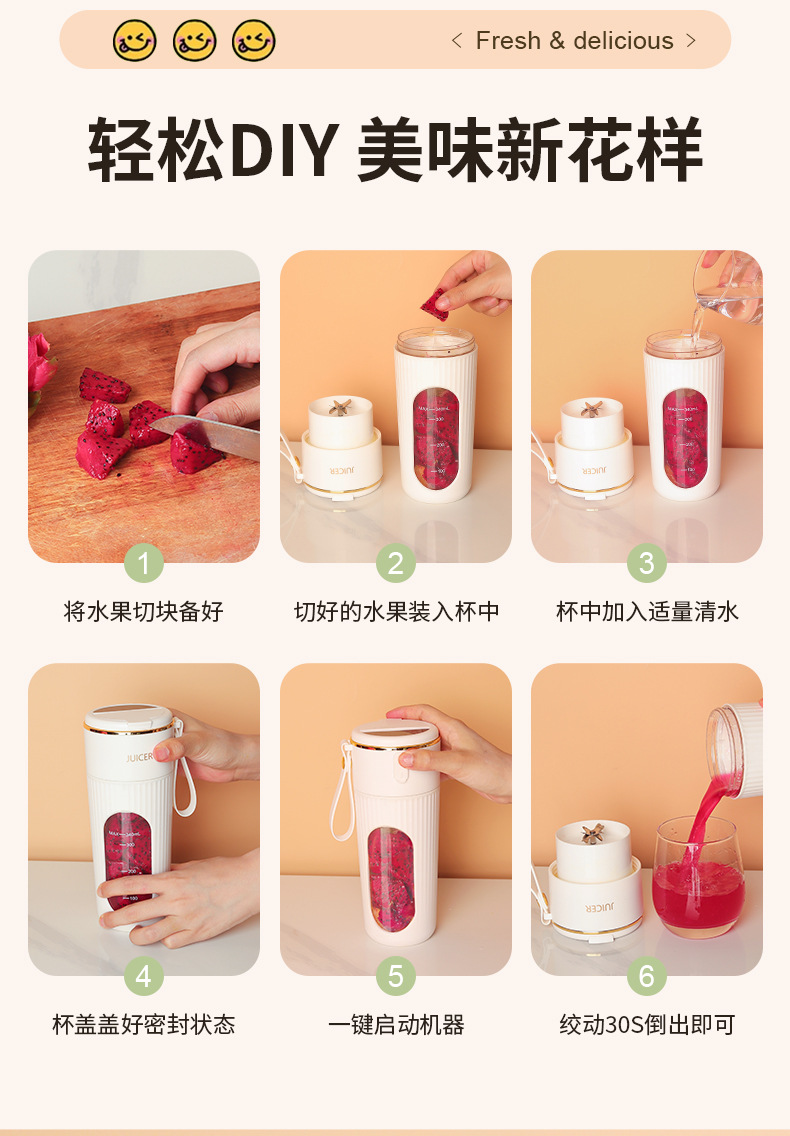 국경 간 과즙 짜는기구 오리지널 과즙 짜는기구 가정용 충전식 다기능 전기 미니 휴대용 과일 압착기 혼합 주스 컵스토어 가기