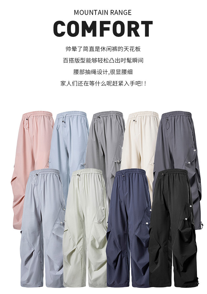 여름철 여성을 위한 아웃도어 캐주얼 낙하산 바지, 가볍고 루즈한 아메리칸 오버올, 남성용 발수 및 주름 방지 캐주얼 바지