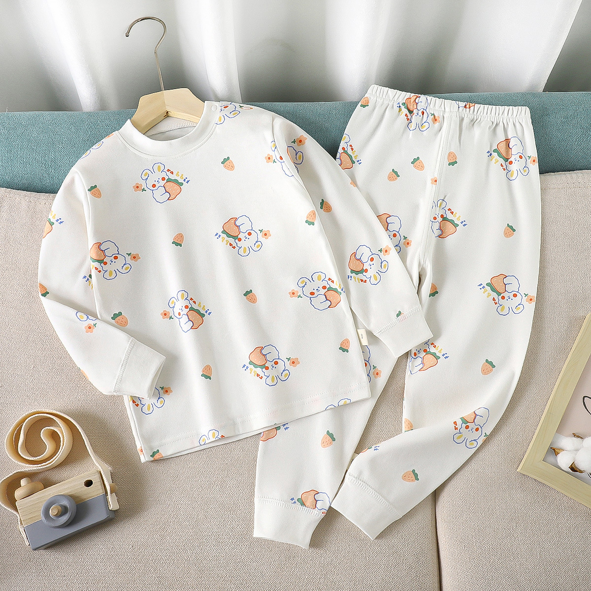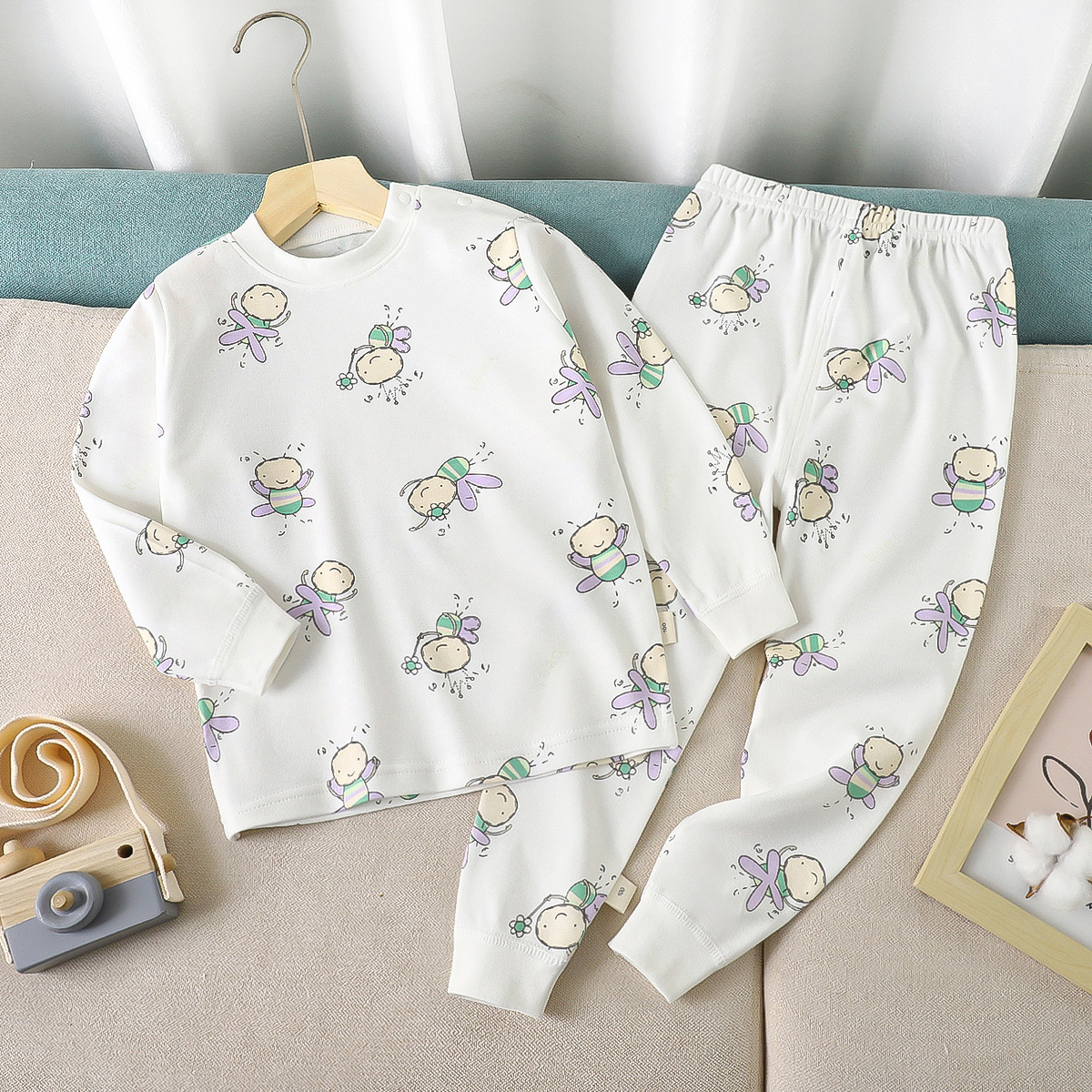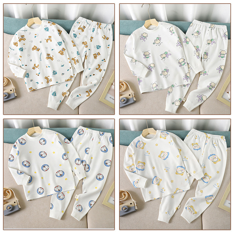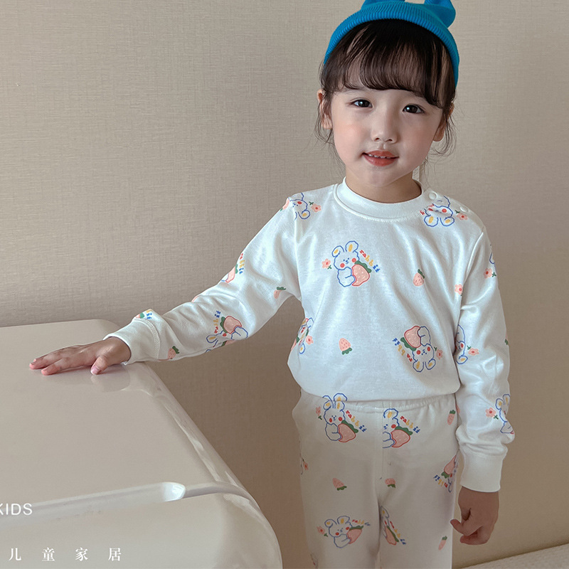 남아용 가을옷과 긴바지 세트, 순면 아동 속옷, 봄, 가을 여아용 하의 가정복, 따뜻하게 유지하는 면 잠옷