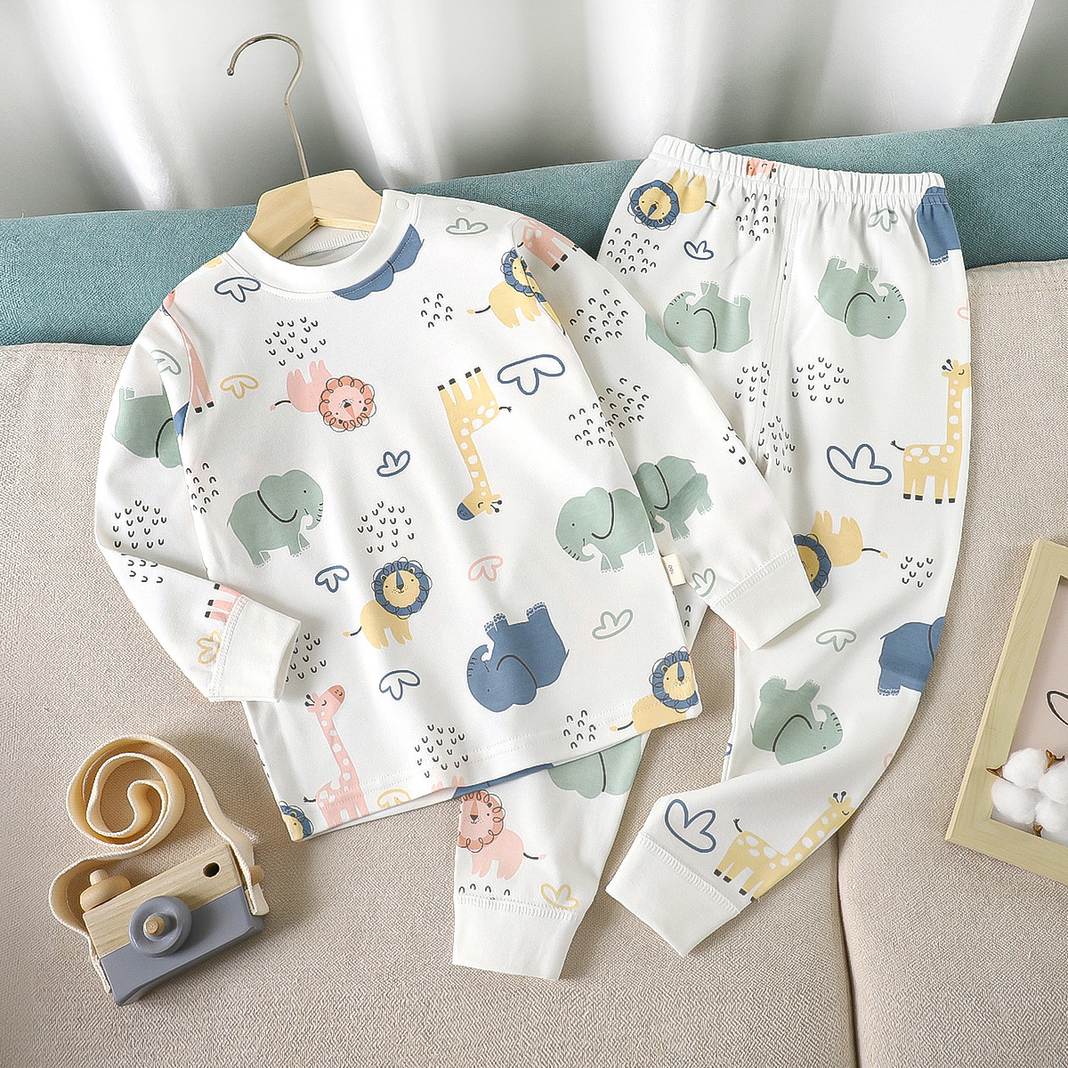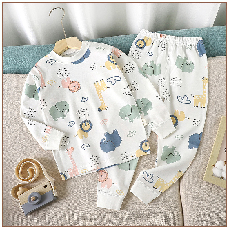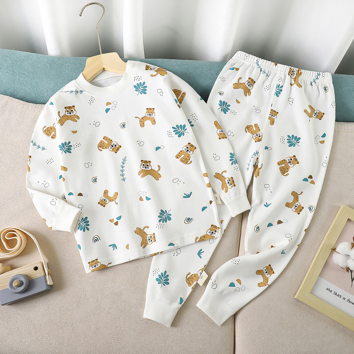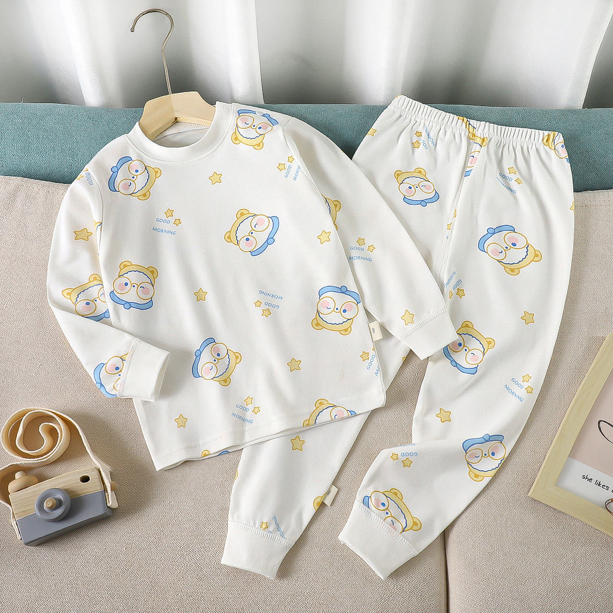 남아용 가을옷과 긴바지 세트, 순면 아동 속옷, 봄, 가을 여아용 하의 가정복, 따뜻하게 유지하는 면 잠옷