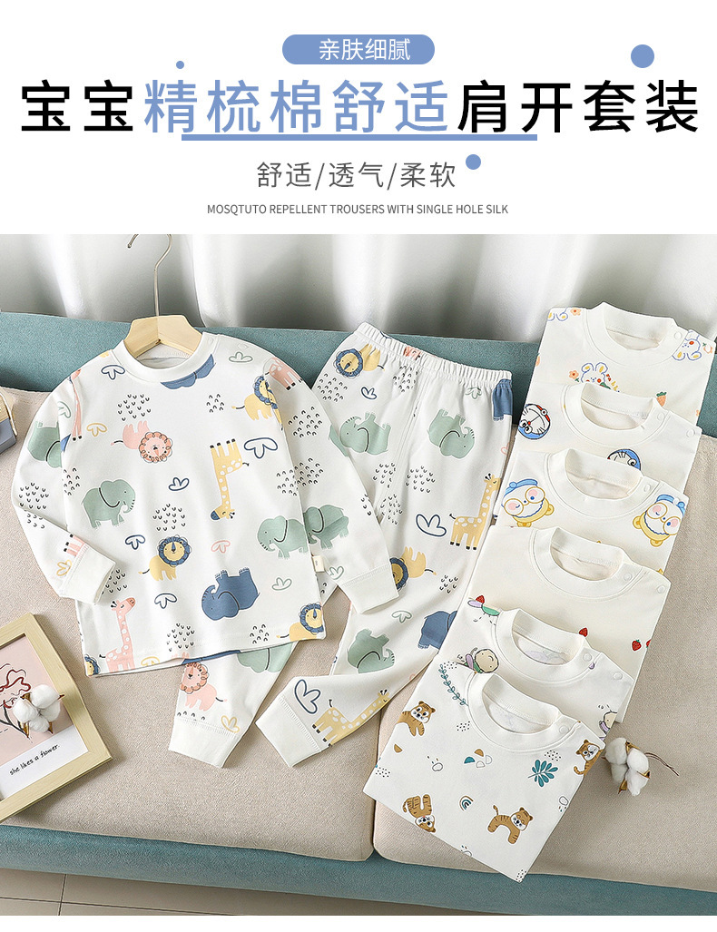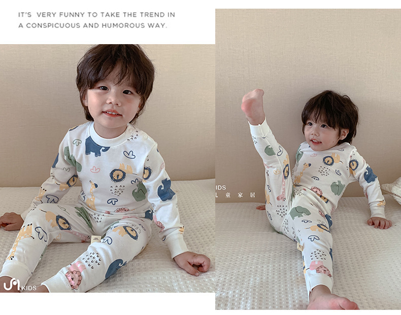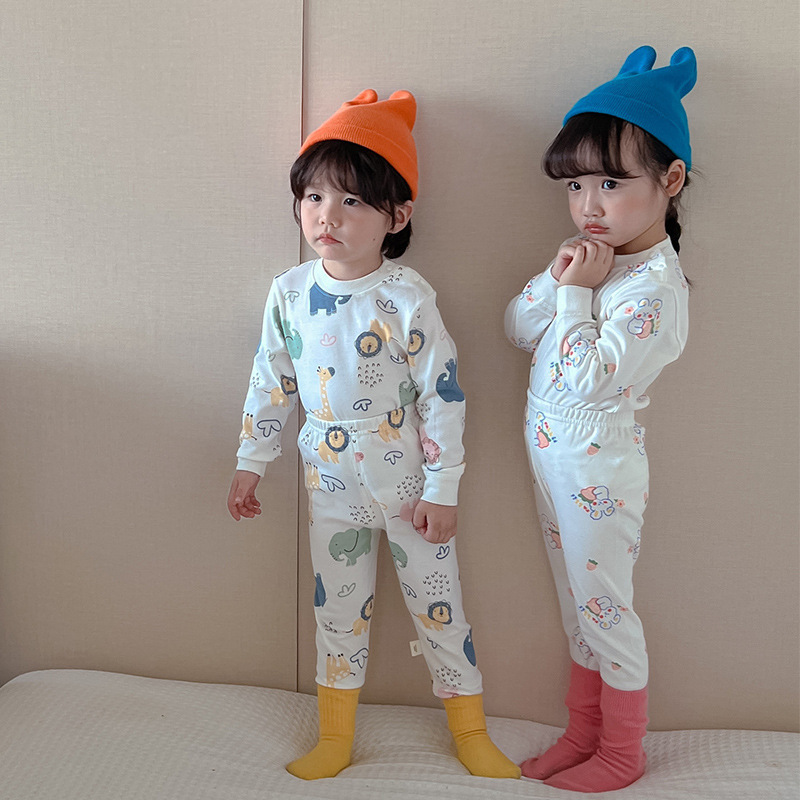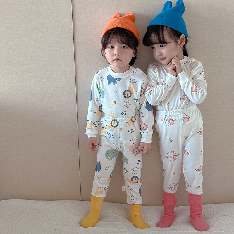 남아용 가을옷과 긴바지 세트, 순면 아동 속옷, 봄, 가을 여아용 하의 가정복, 따뜻하게 유지하는 면 잠옷스토어 가기