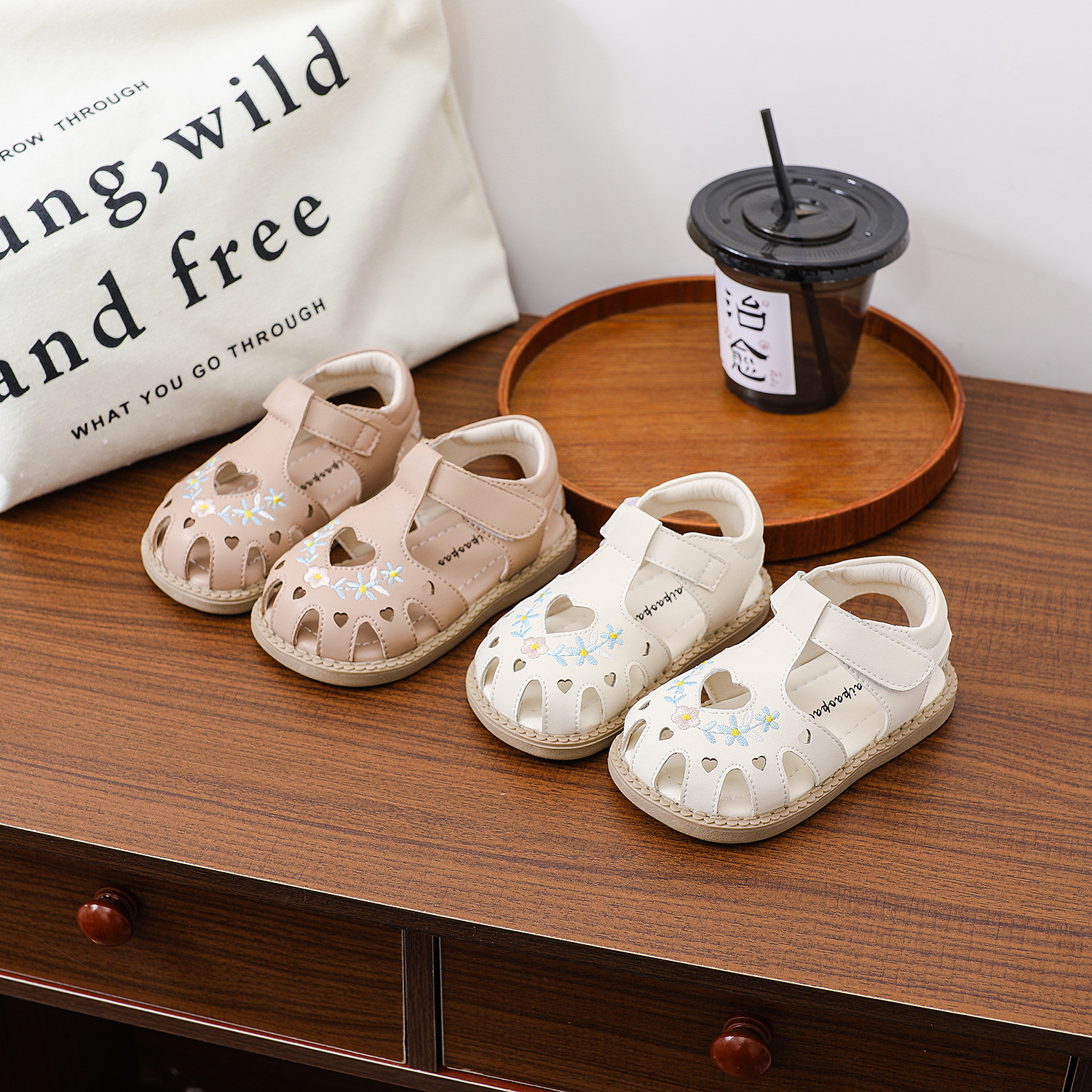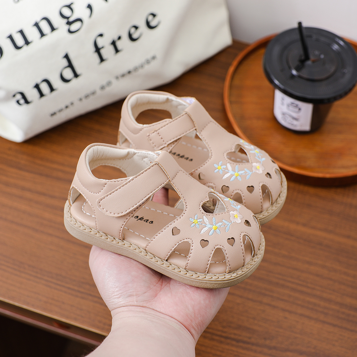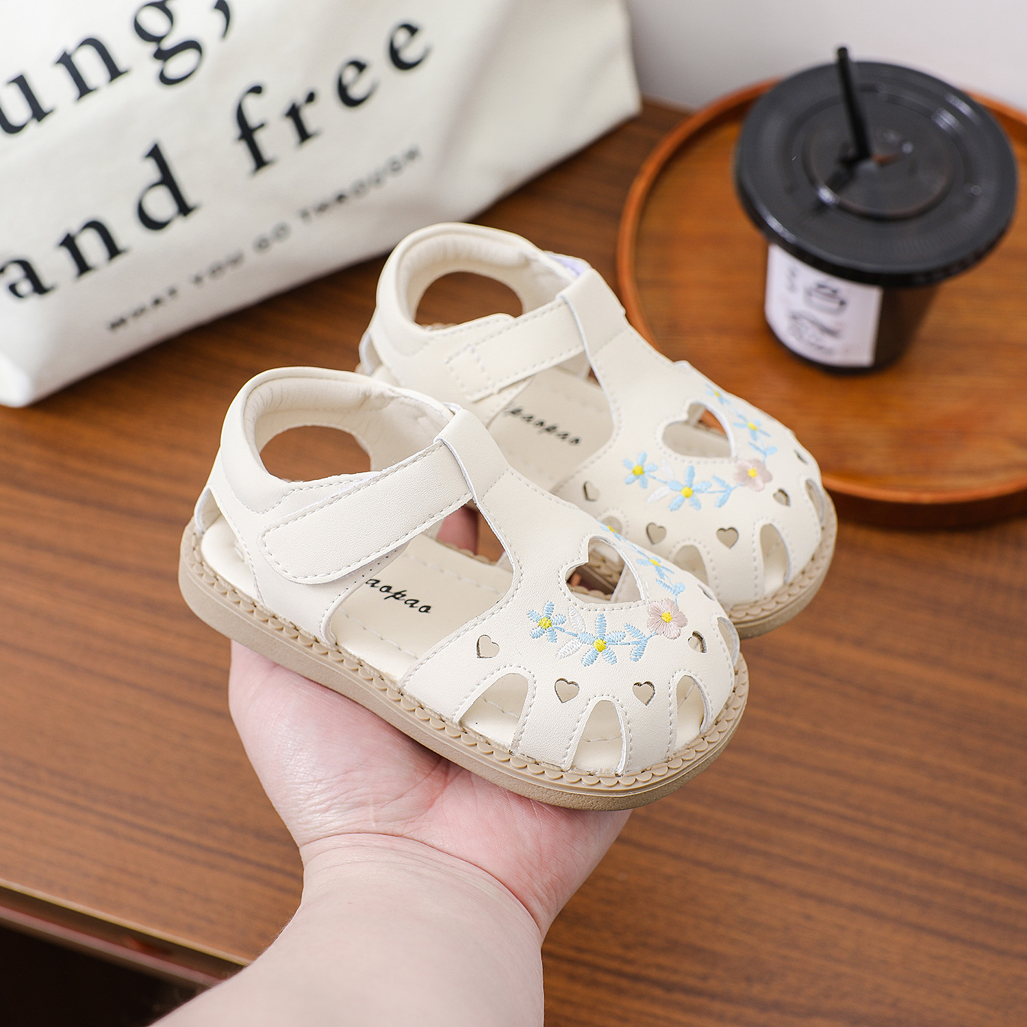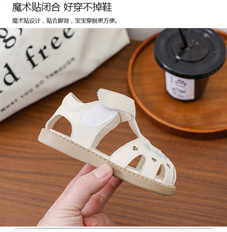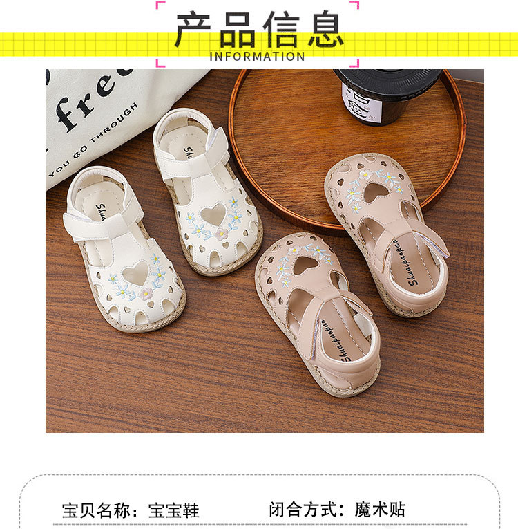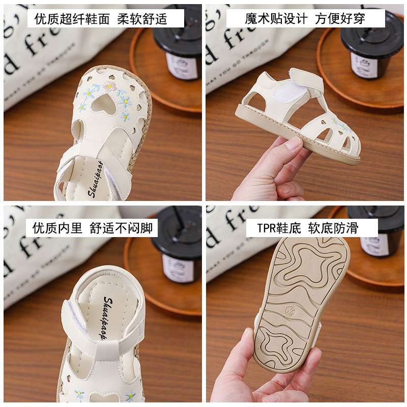 여름 아기 유아 신발 미끄럼 방지 부드러운 바닥 자수 샌들 소녀의 벨크로 할로우 사랑 편안한 로마 신발스토어 가기