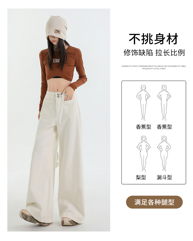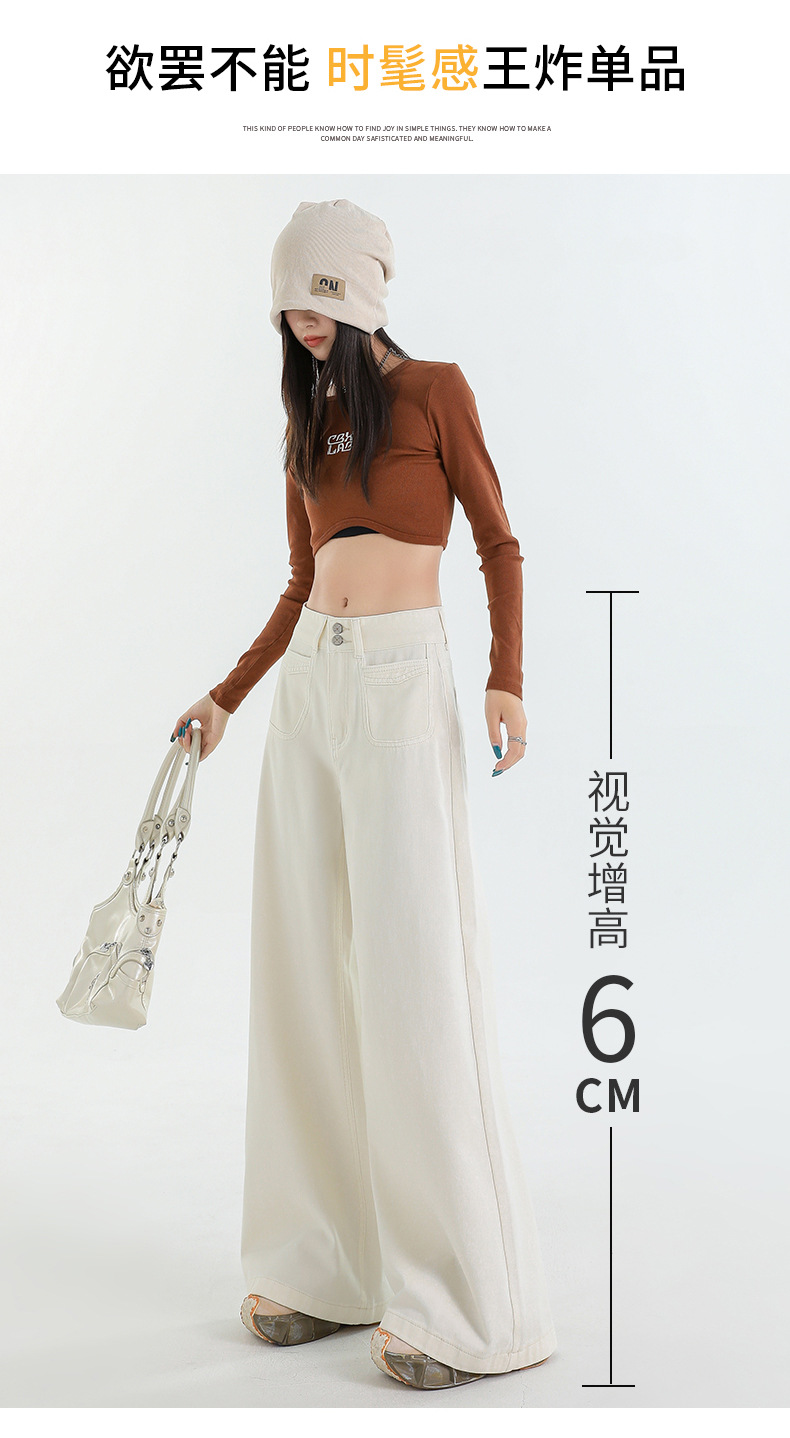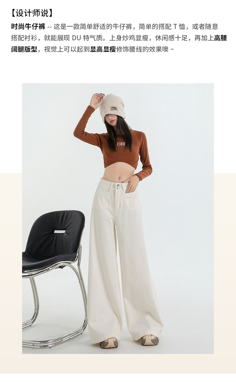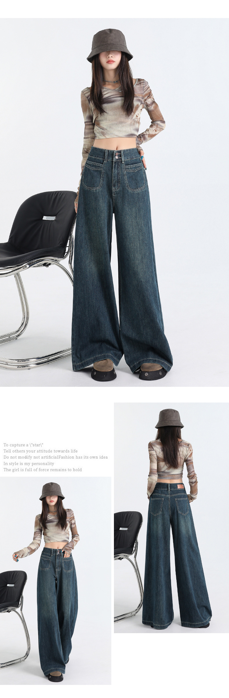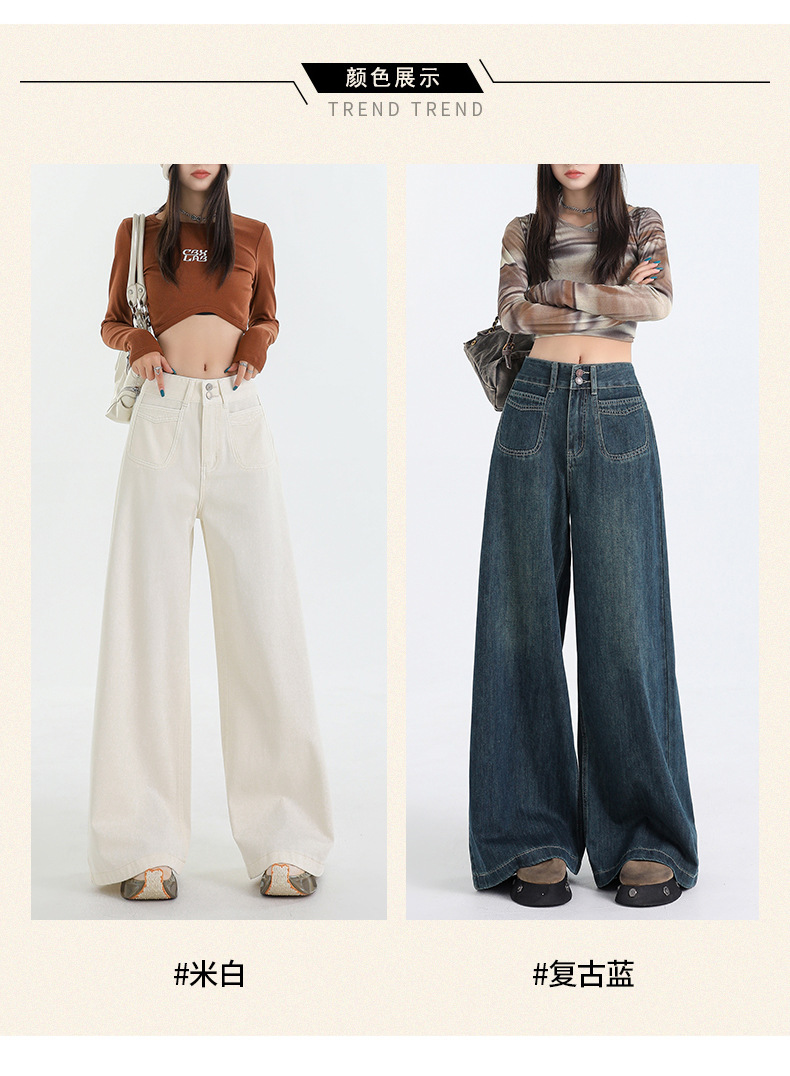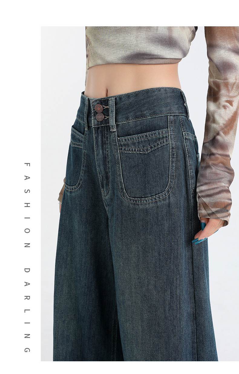 4443 빈티지 높은 허리 넓은 다리 청바지 여성용 캐주얼 느슨한 슬리밍 스트레이트 점퍼 바지