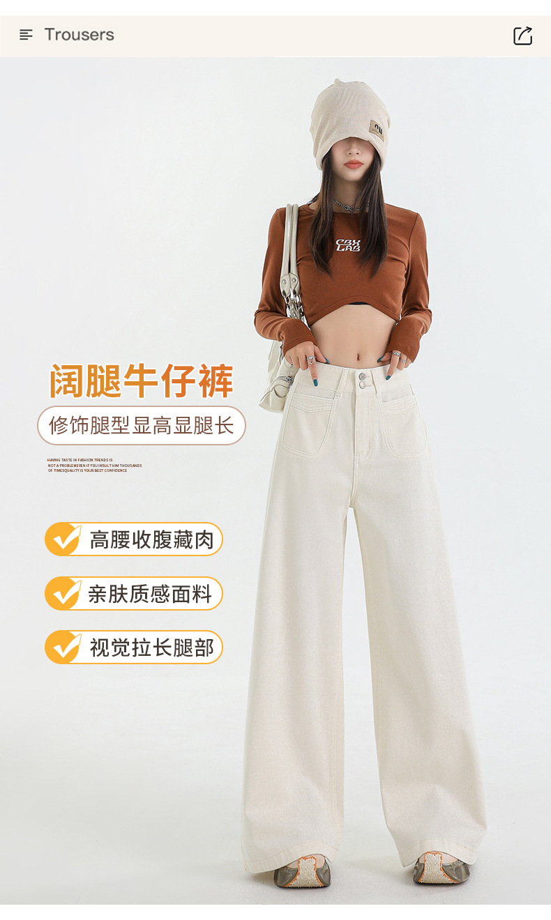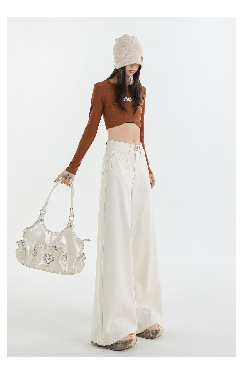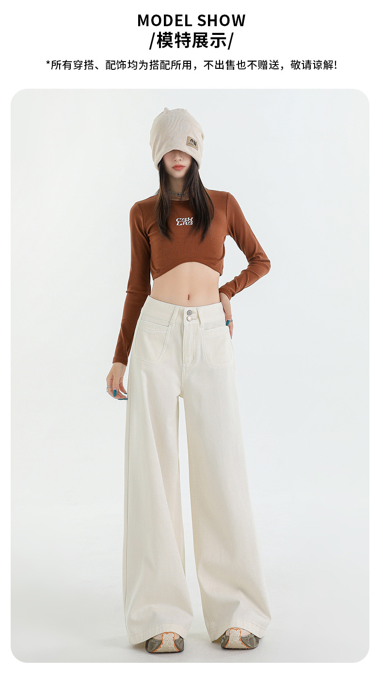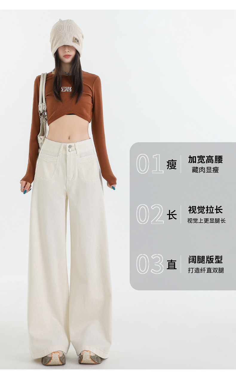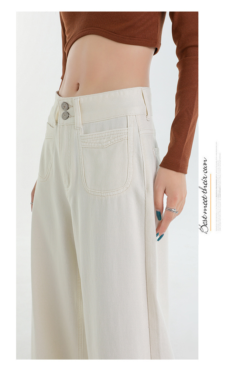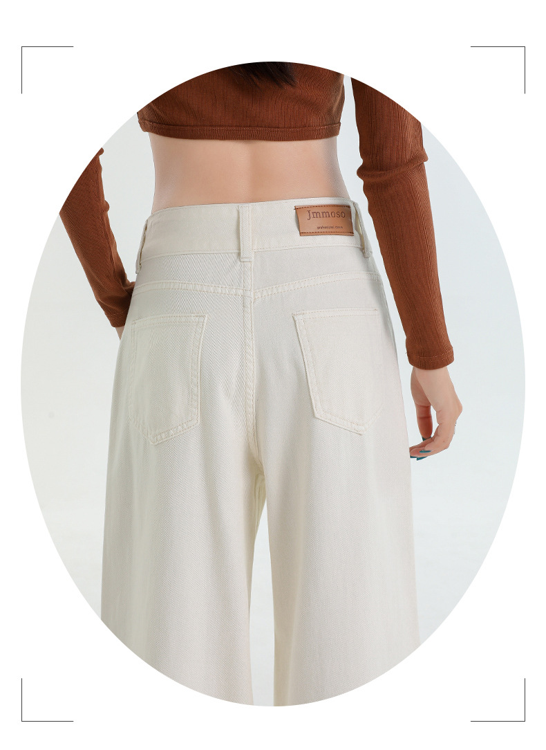 4443 빈티지 높은 허리 넓은 다리 청바지 여성용 캐주얼 느슨한 슬리밍 스트레이트 점퍼 바지